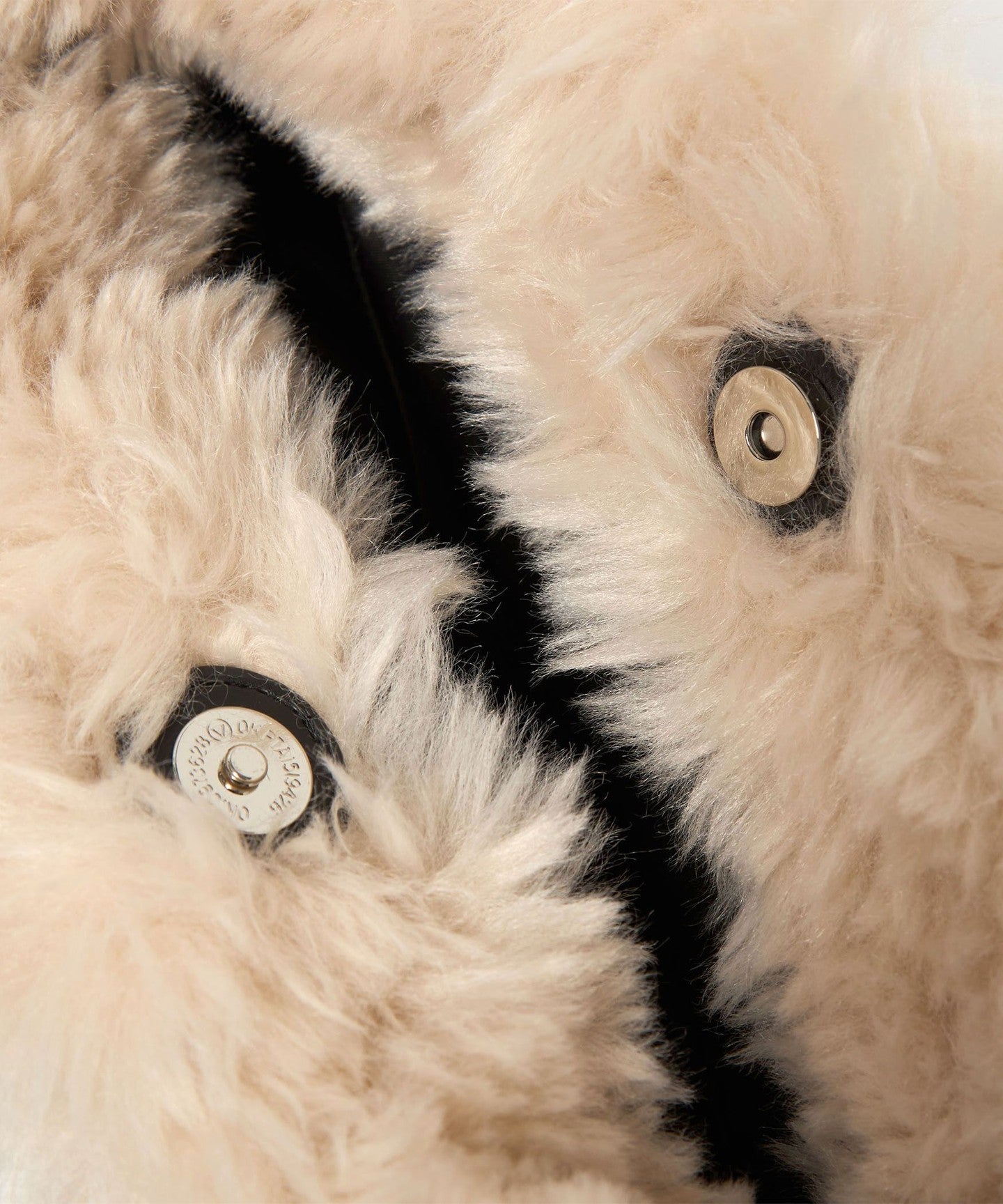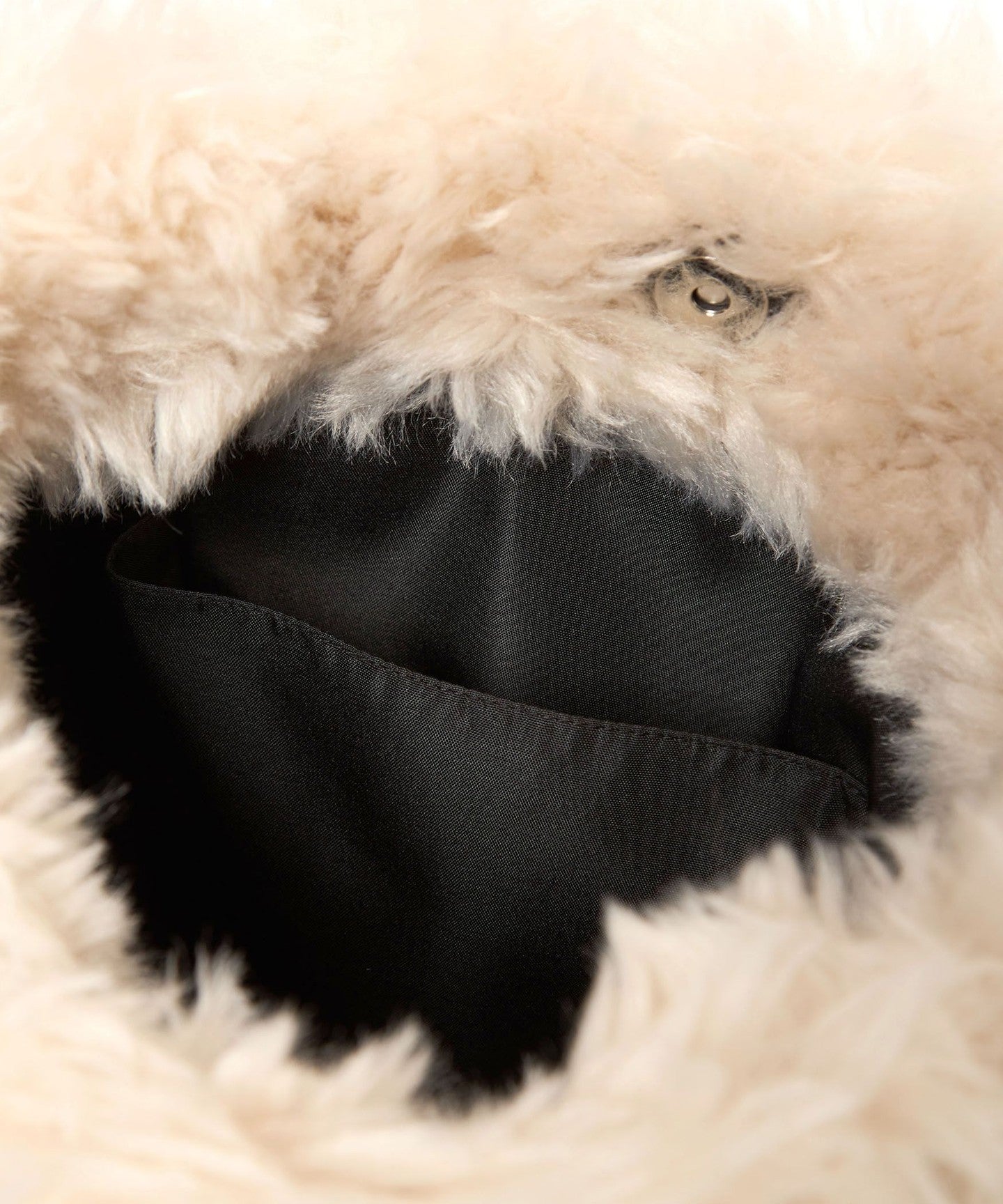 ランダムな毛足とふっくらとしたボリュームが目を惹く、フェイクボア素材のワンハンドルバッグ