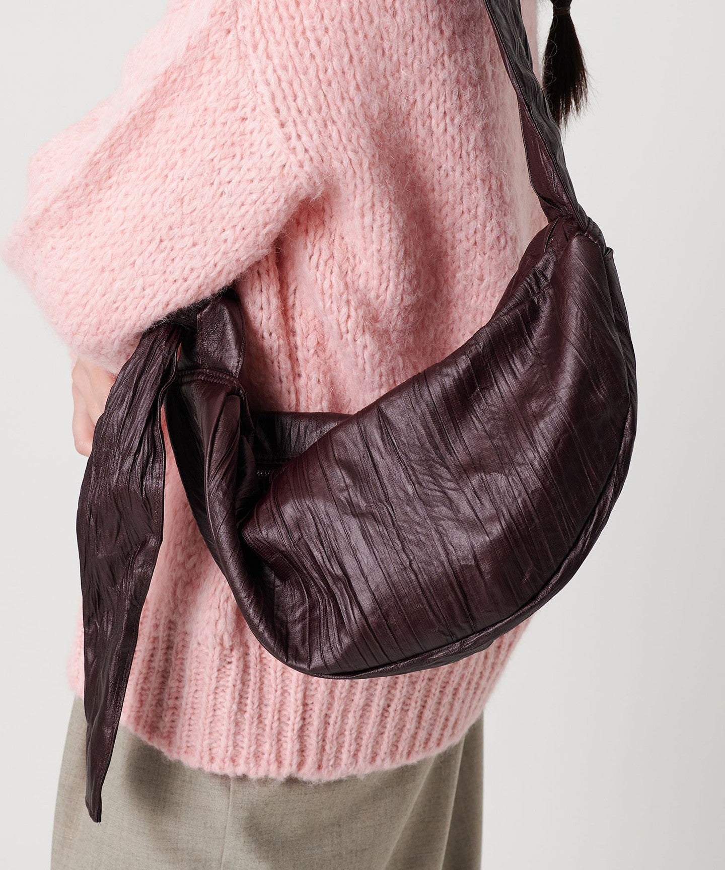 This shoulder bag features an eye-catching half-moon shape that conforms to the body.