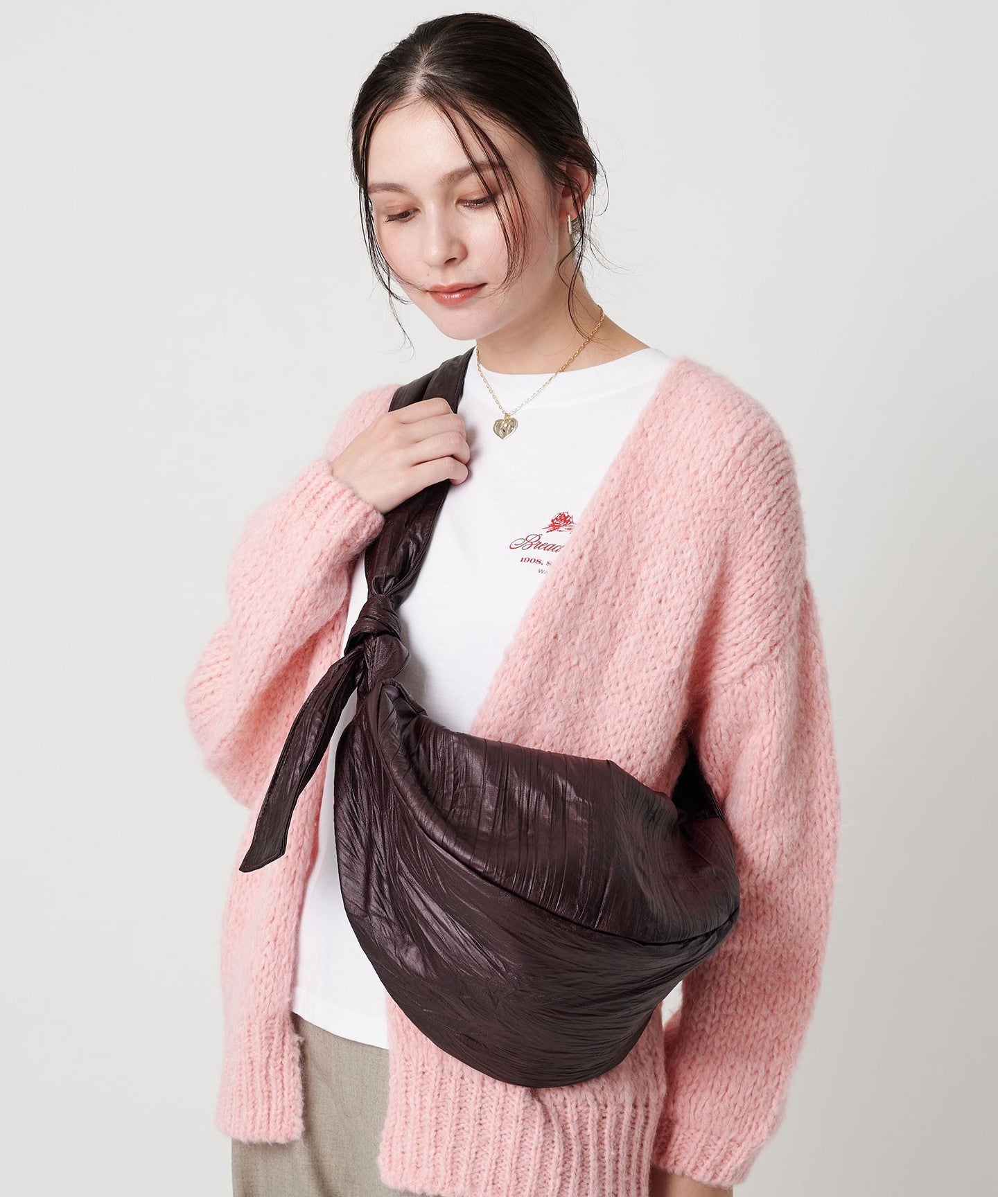 The length of the shoulder strap can be adjusted by changing the position of the tie, allowing you to wear it diagonally or over the shoulder.