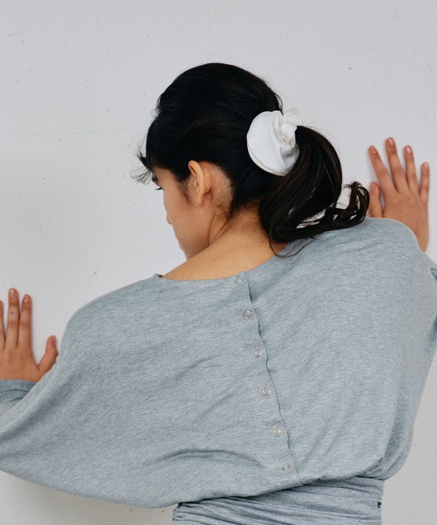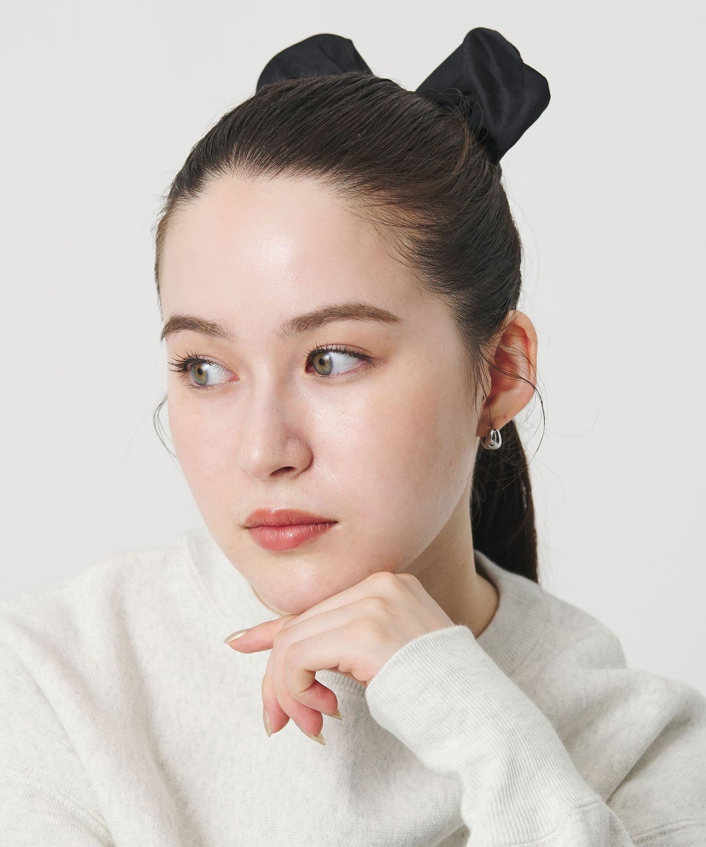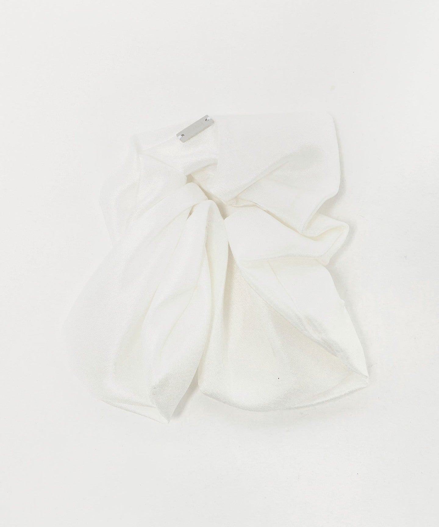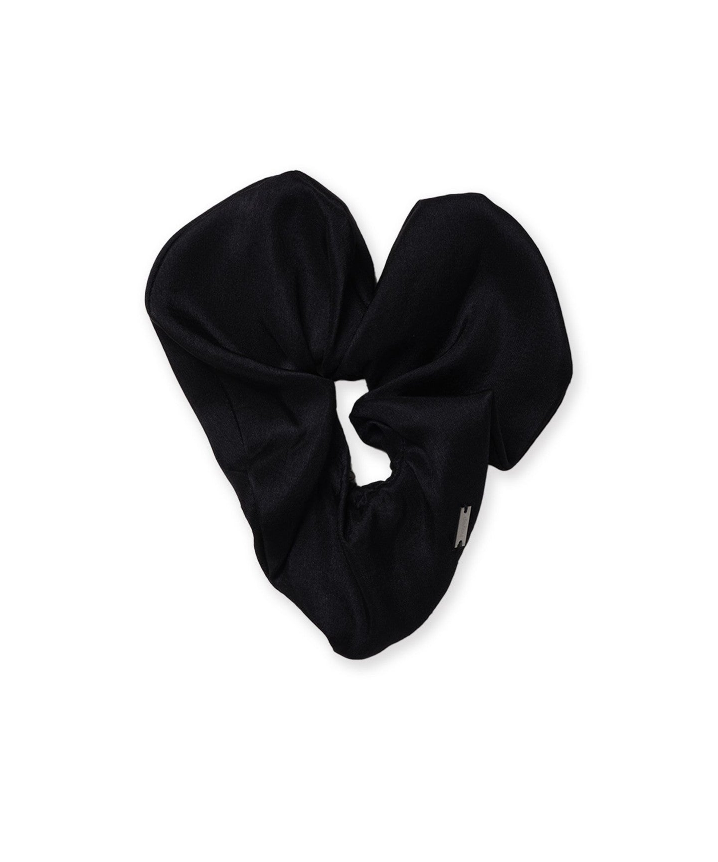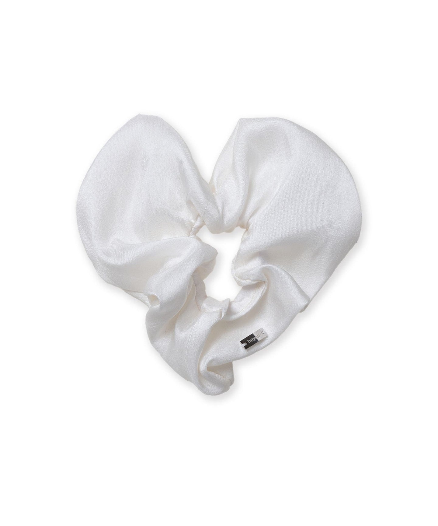 The adorable <heyep> Silk Scrunchie features a subtle heart-shaped silhouette.