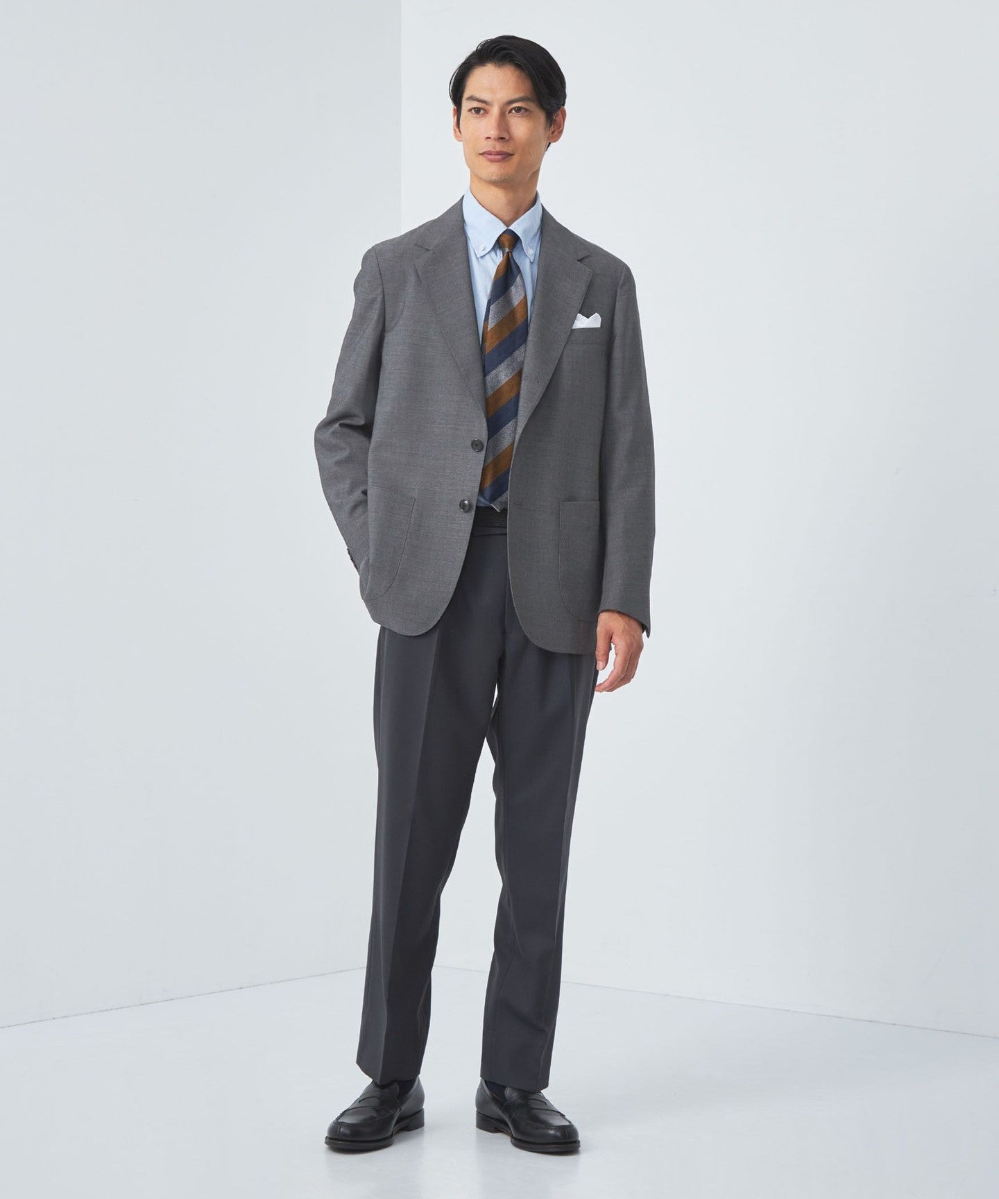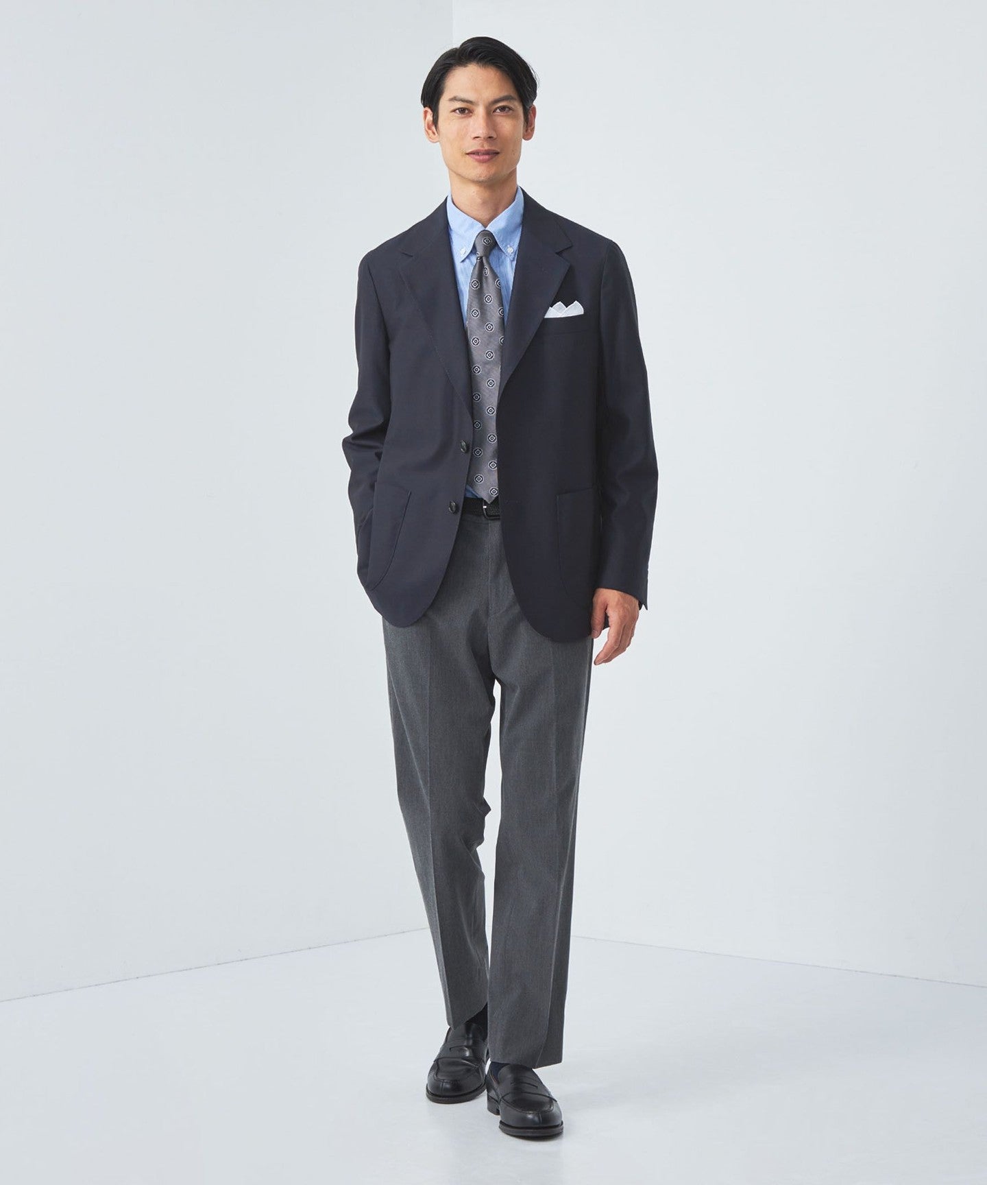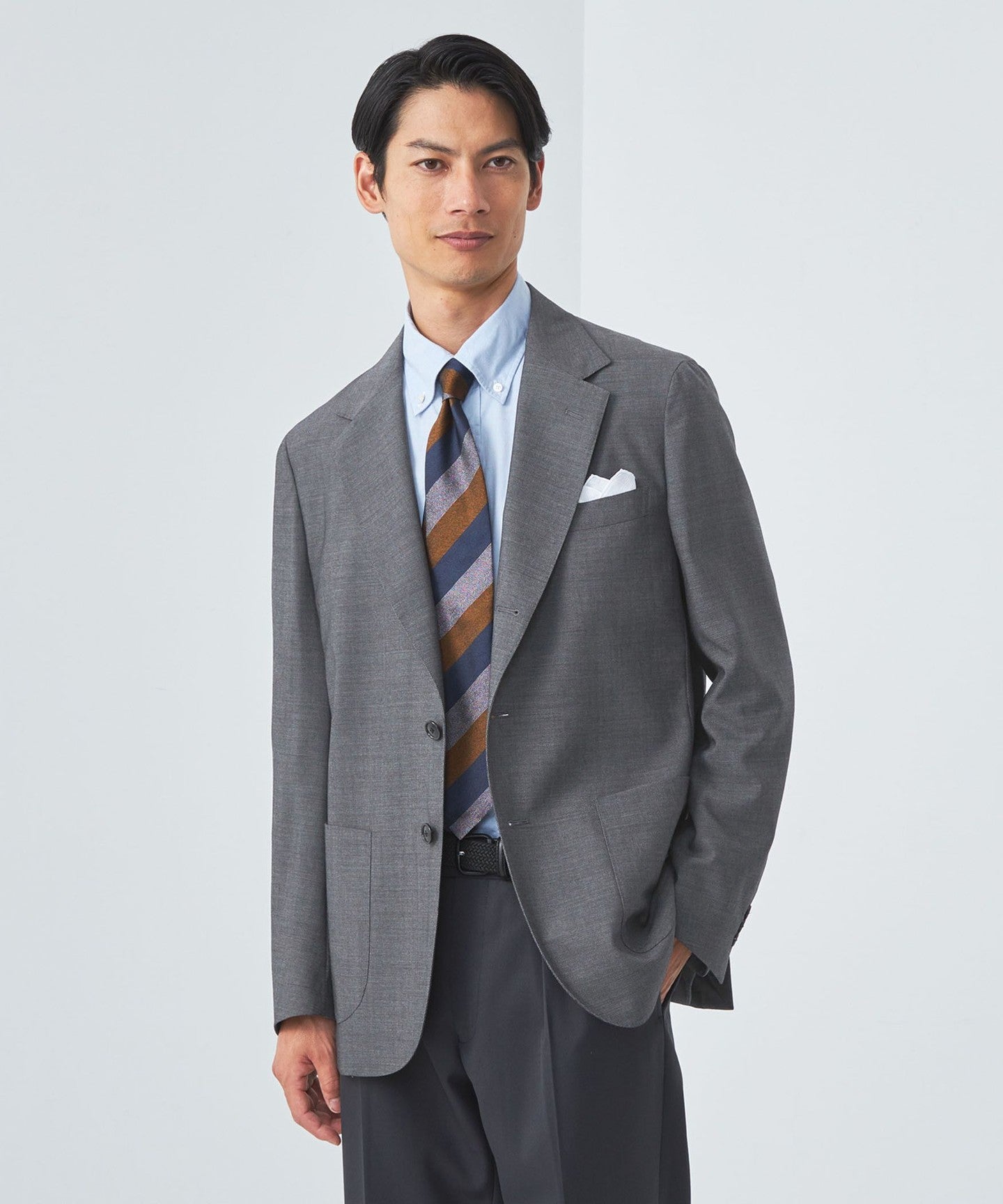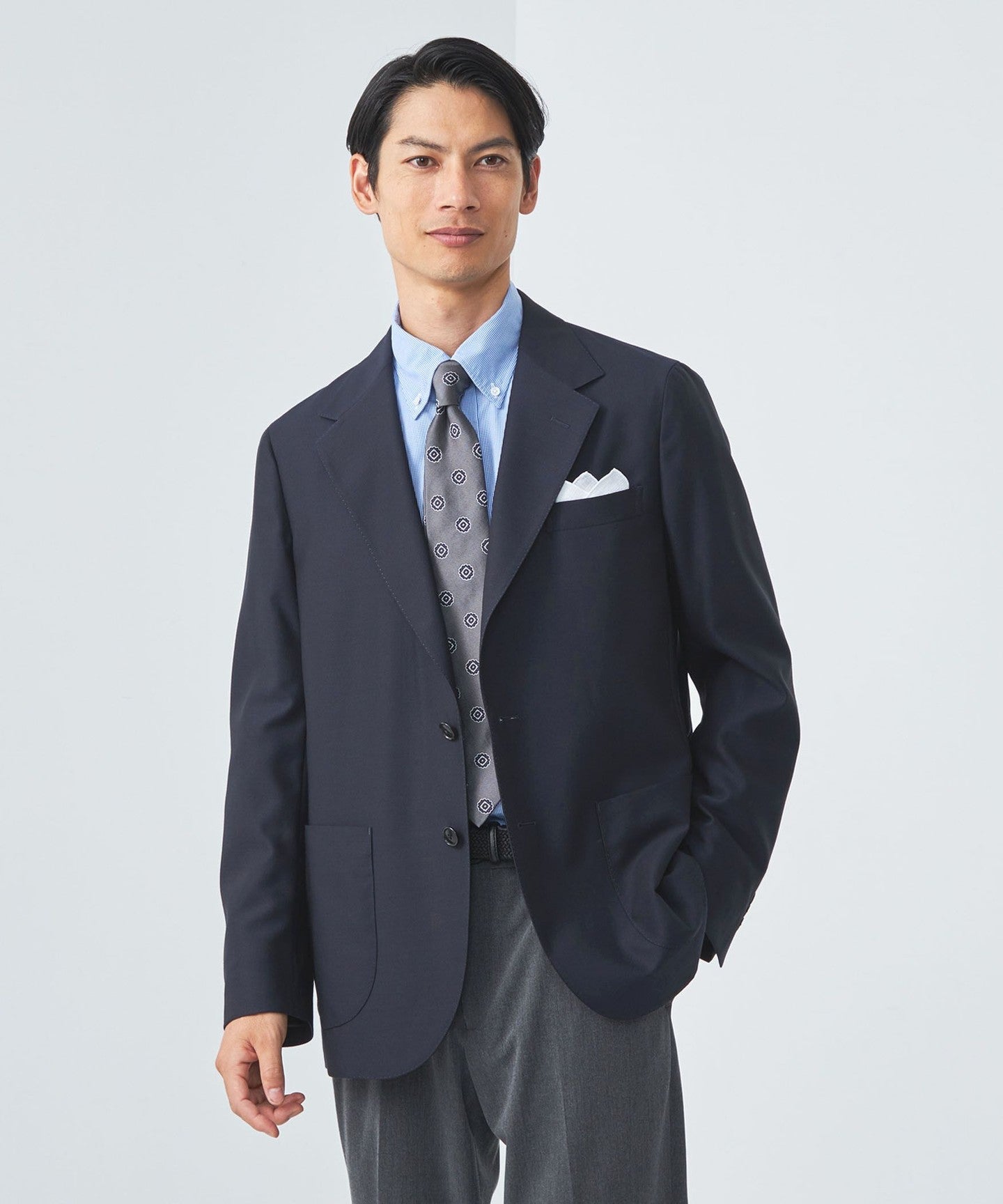 In business settings, you can enjoy styling it in a variety of ways, such as with a tie or no tie.