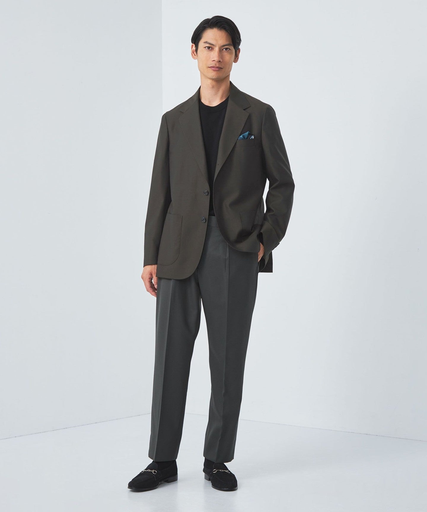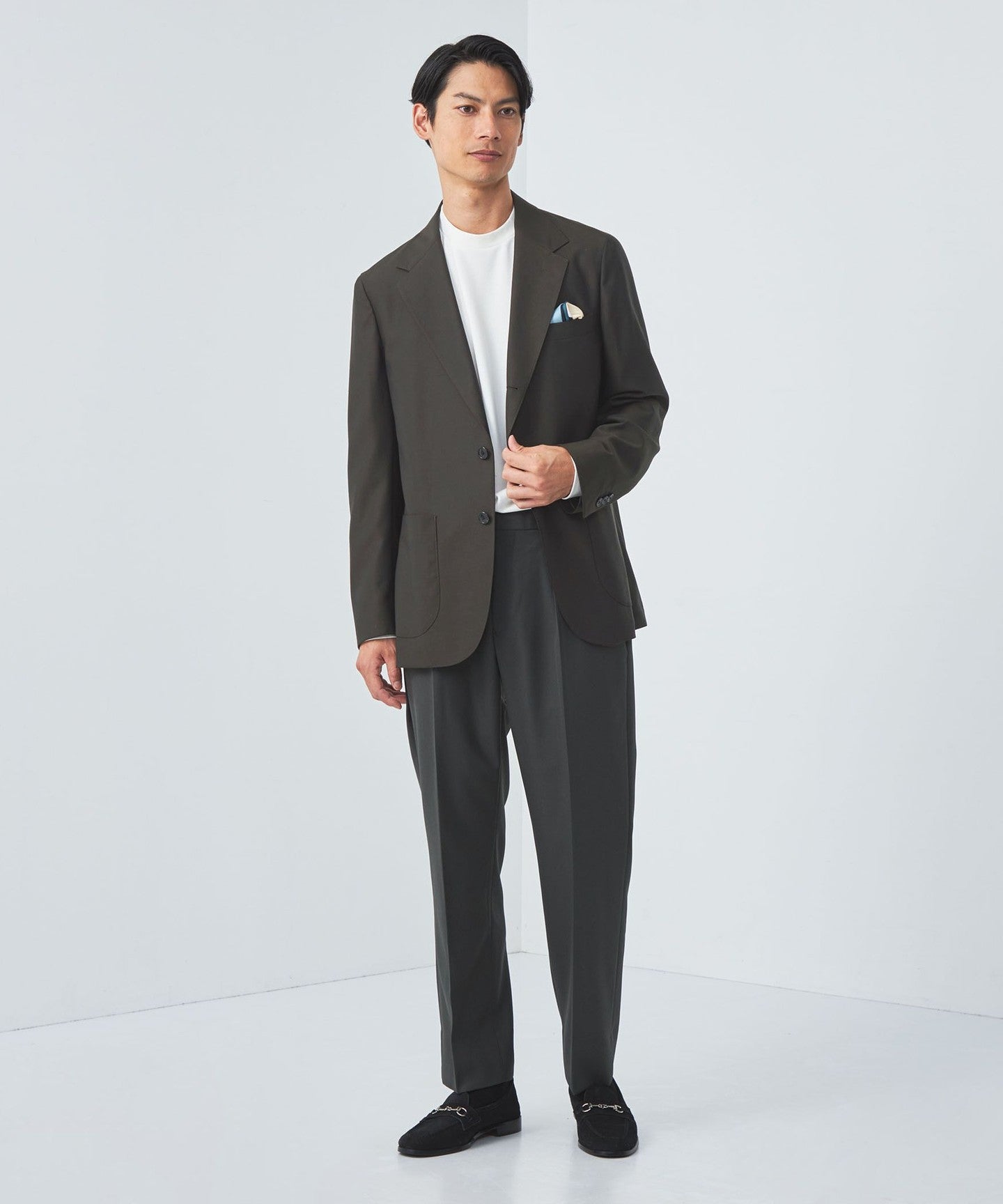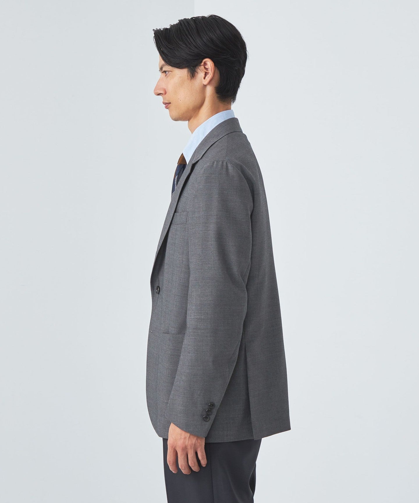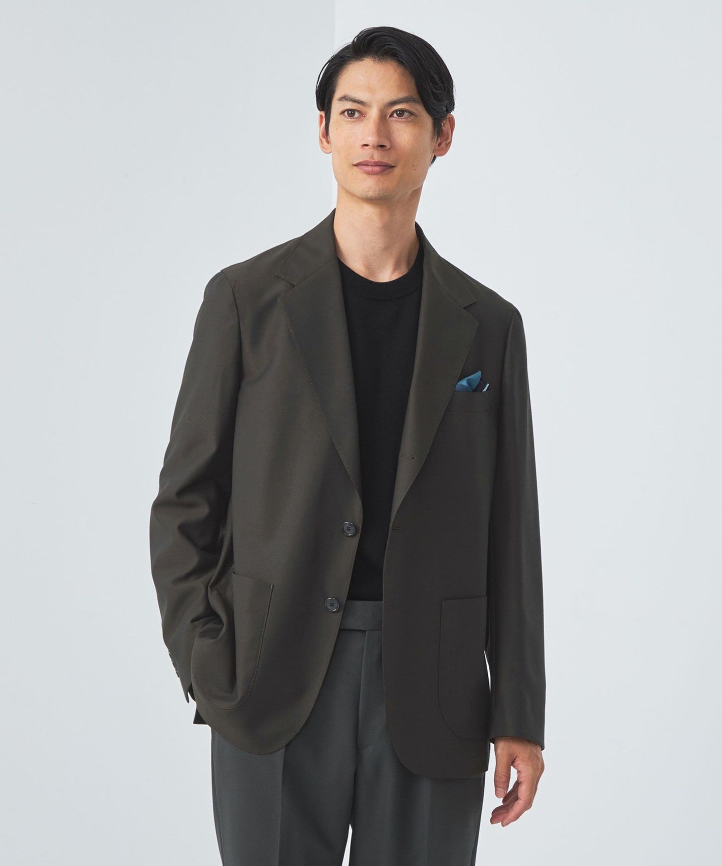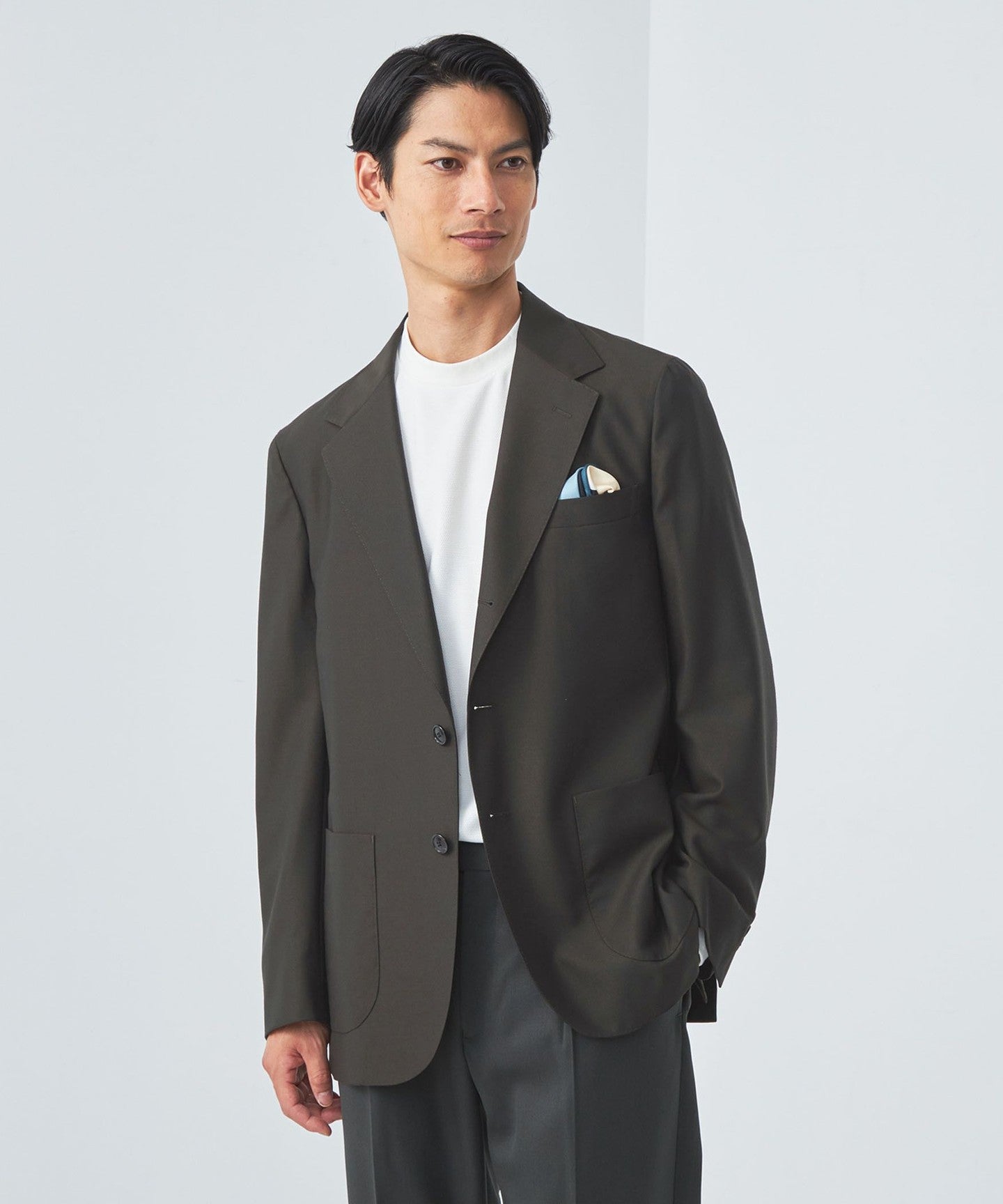 A three-button jacket made with Italian REDA fabric.