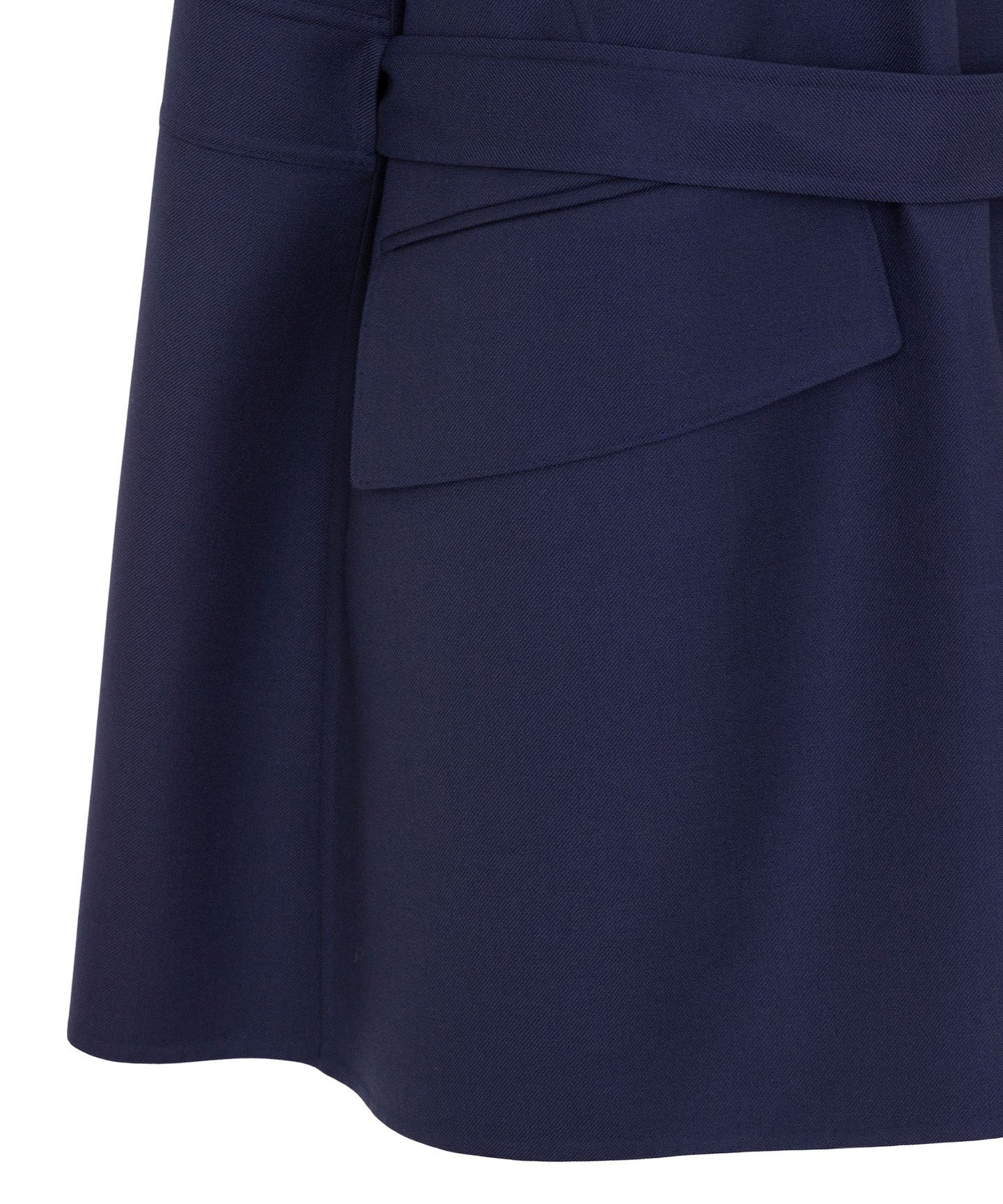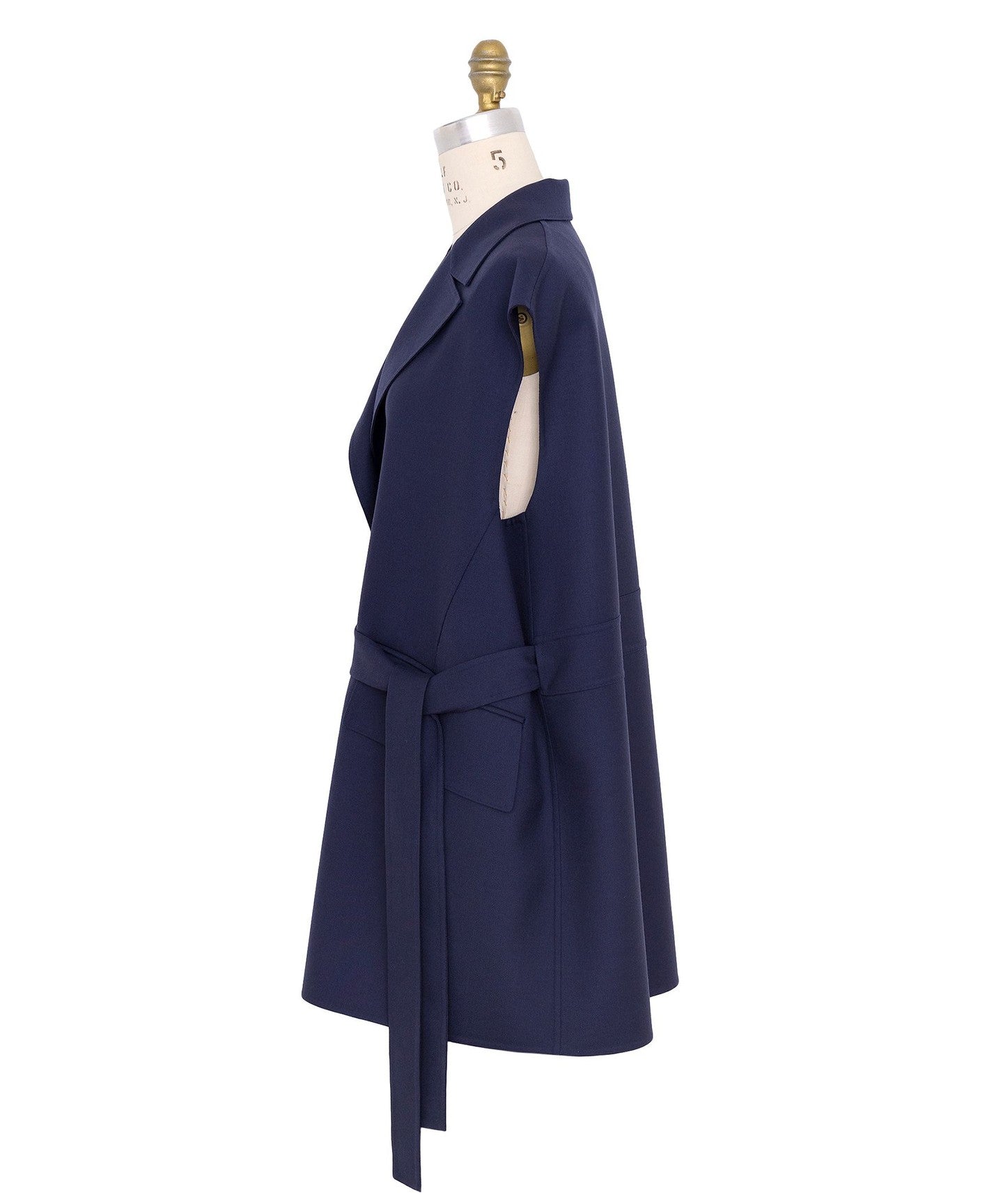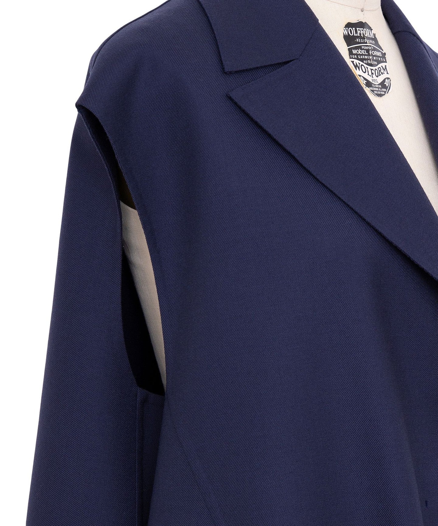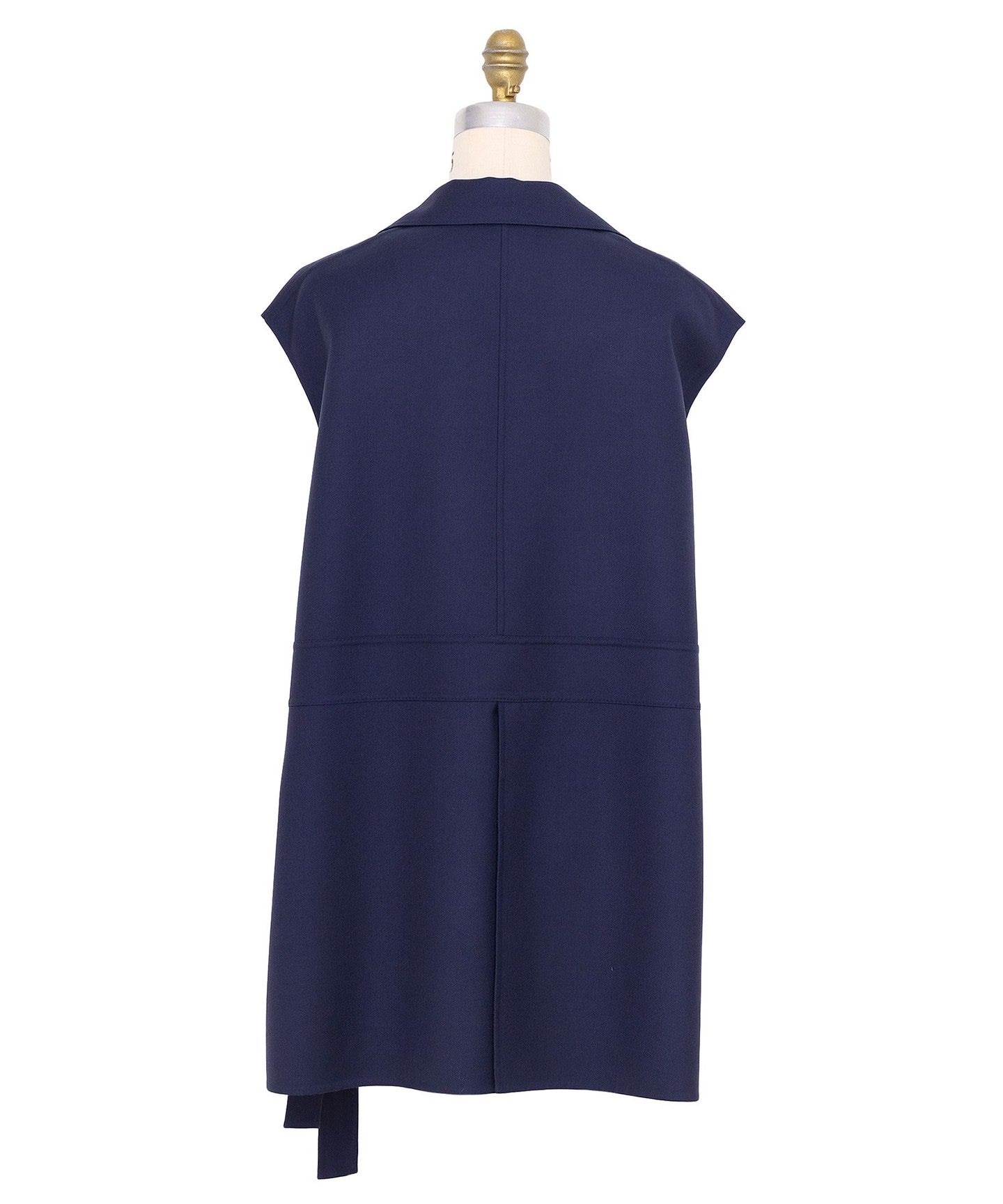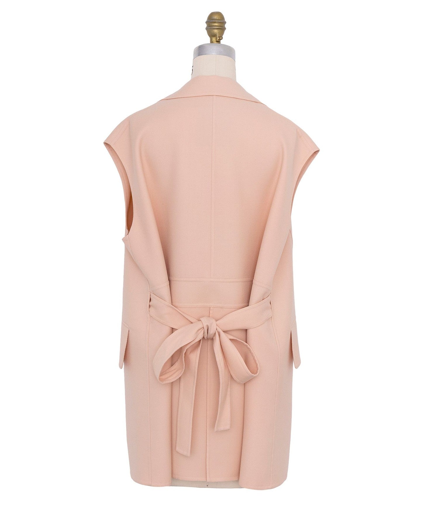 This gilet jacket features a large flap and semi-peaked lapels that add a gentle touch.