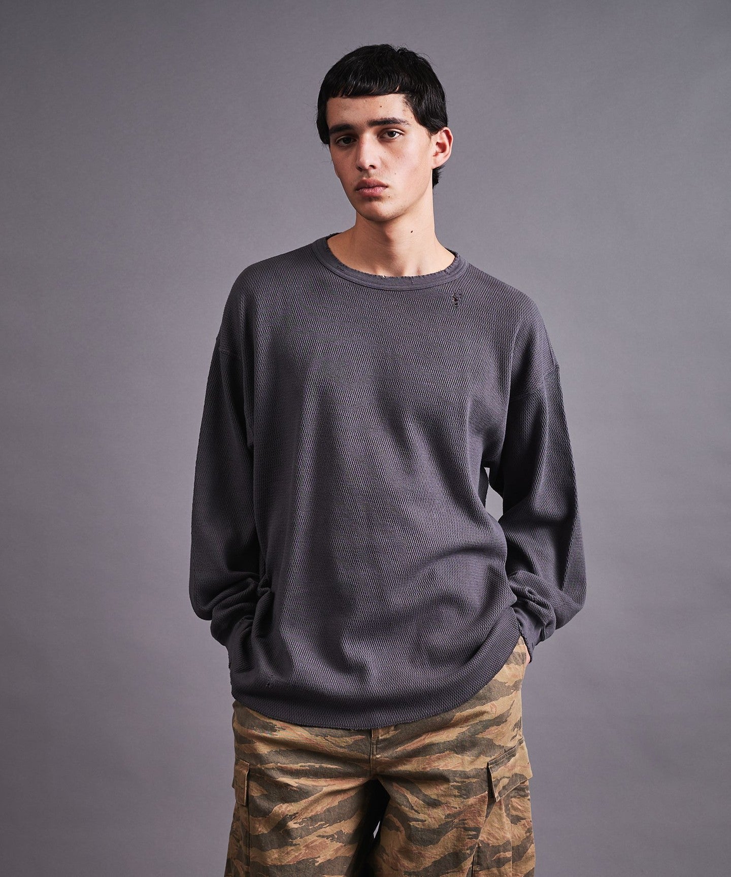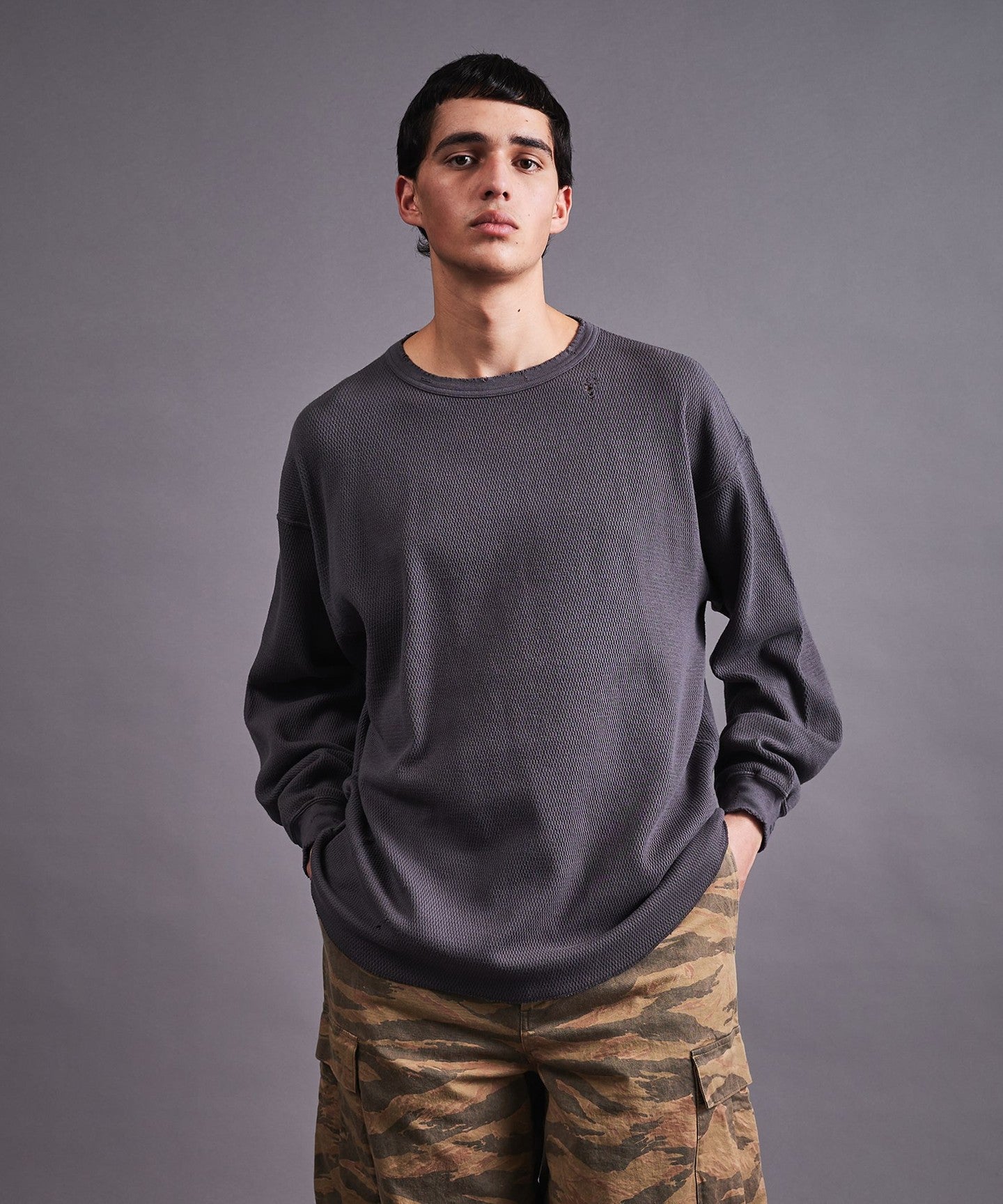 Thermal Distressed Crew Neck