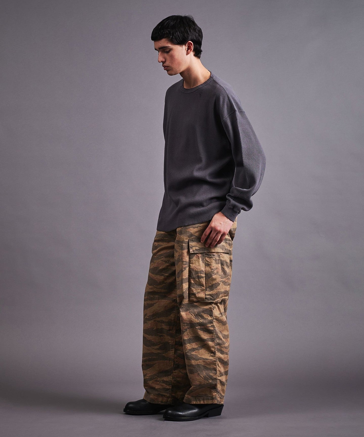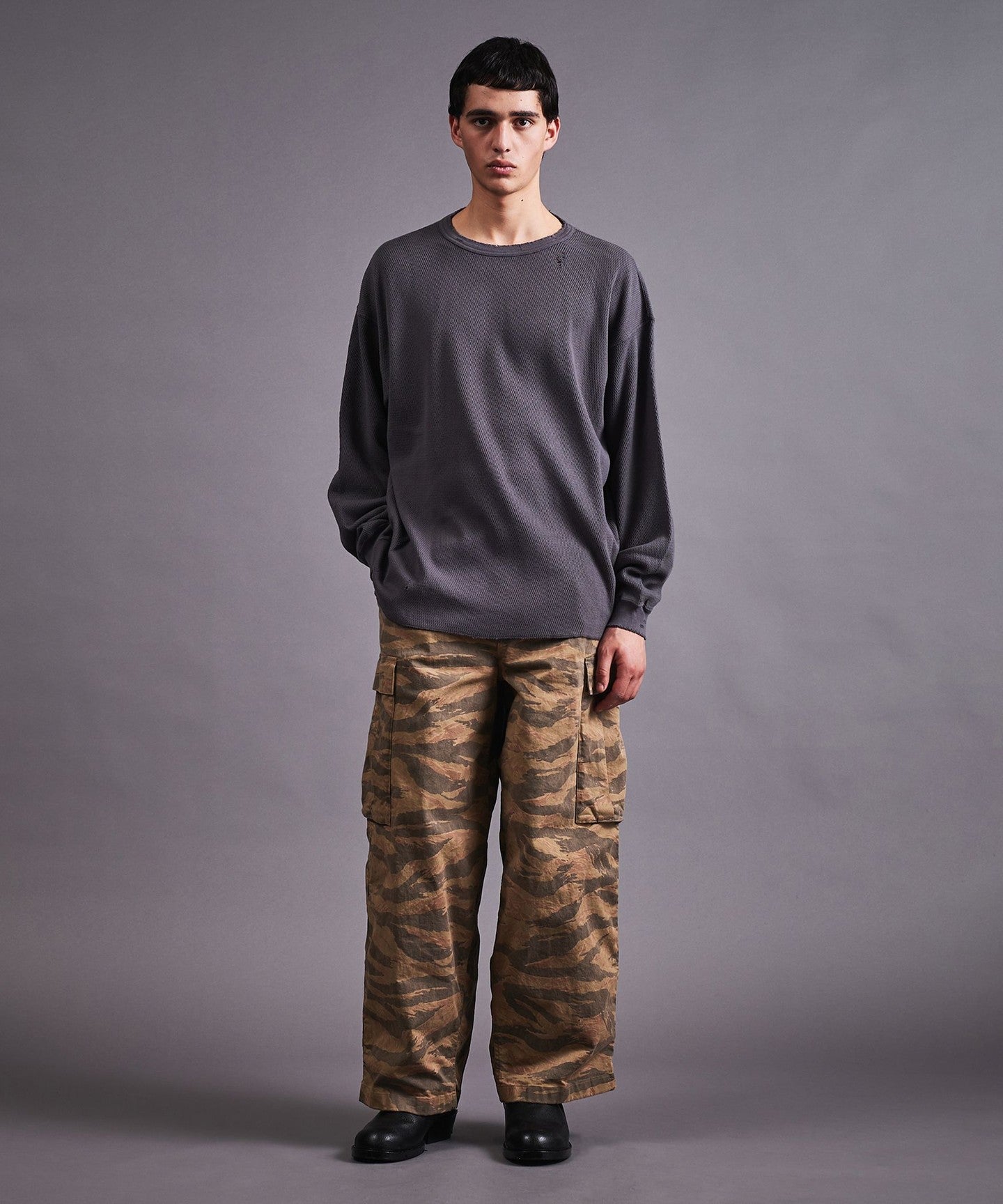 Relaxed silhouette with roomy width.