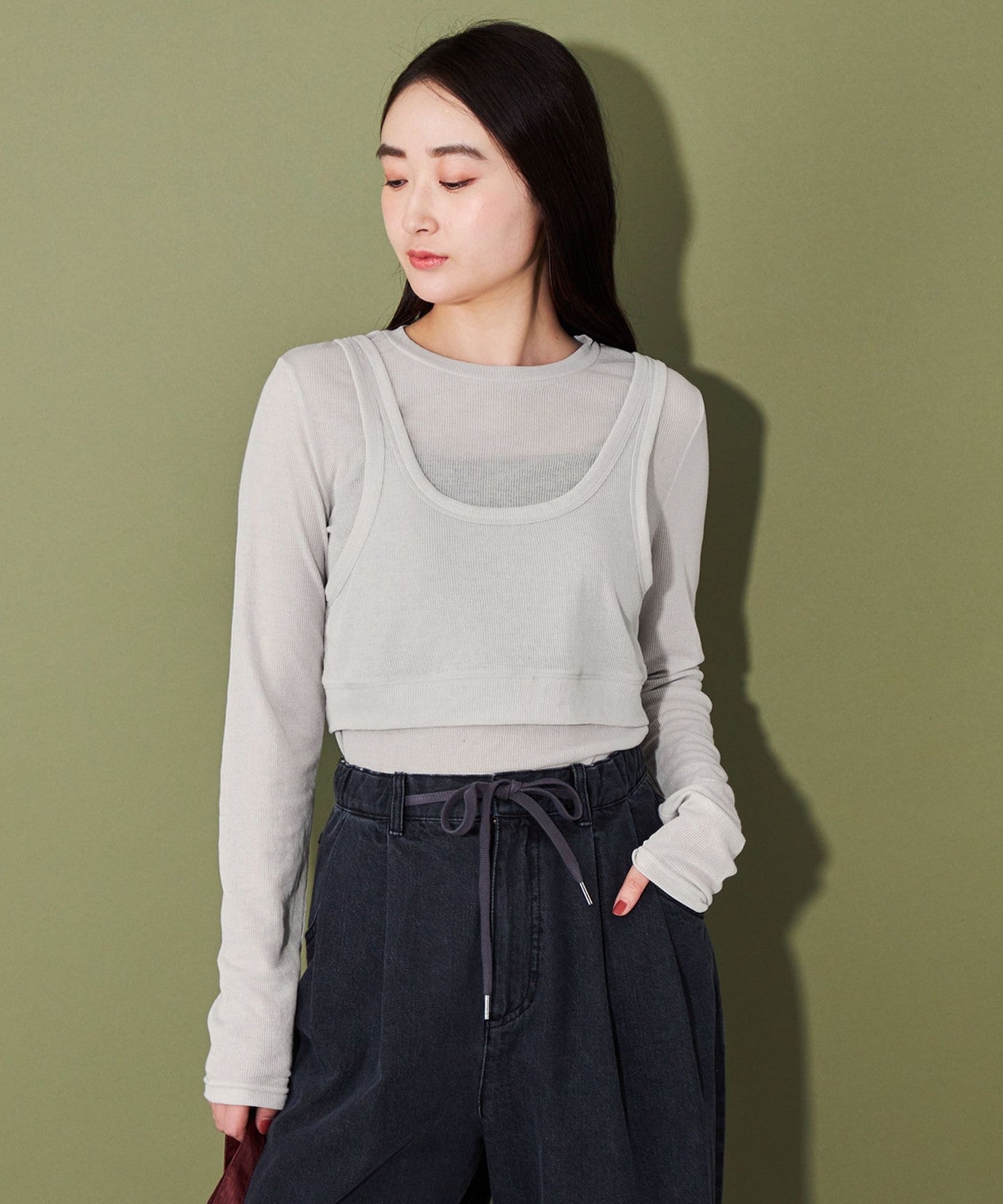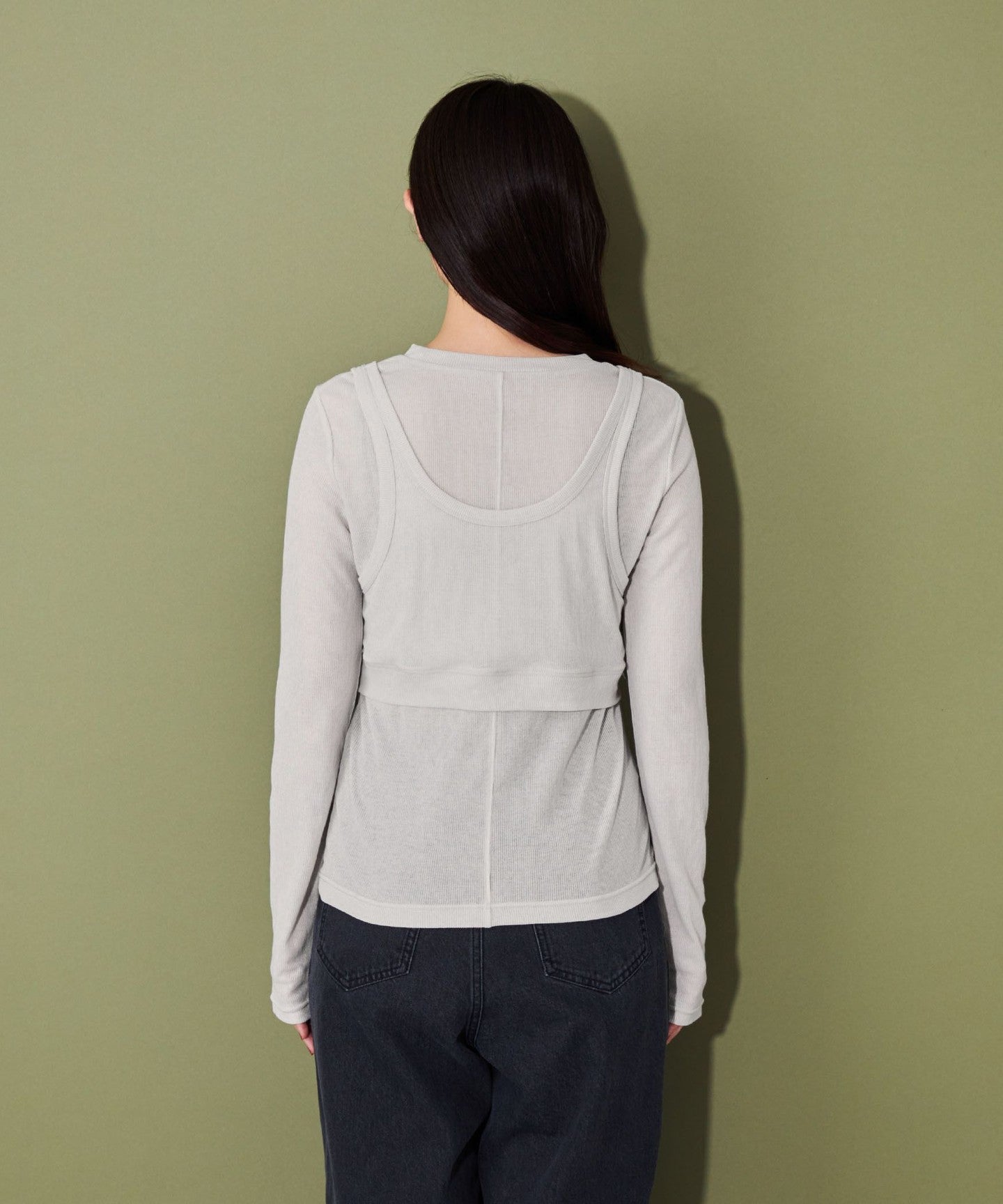 A sheer long sleeve T-shirt and tank top set completes the layered look