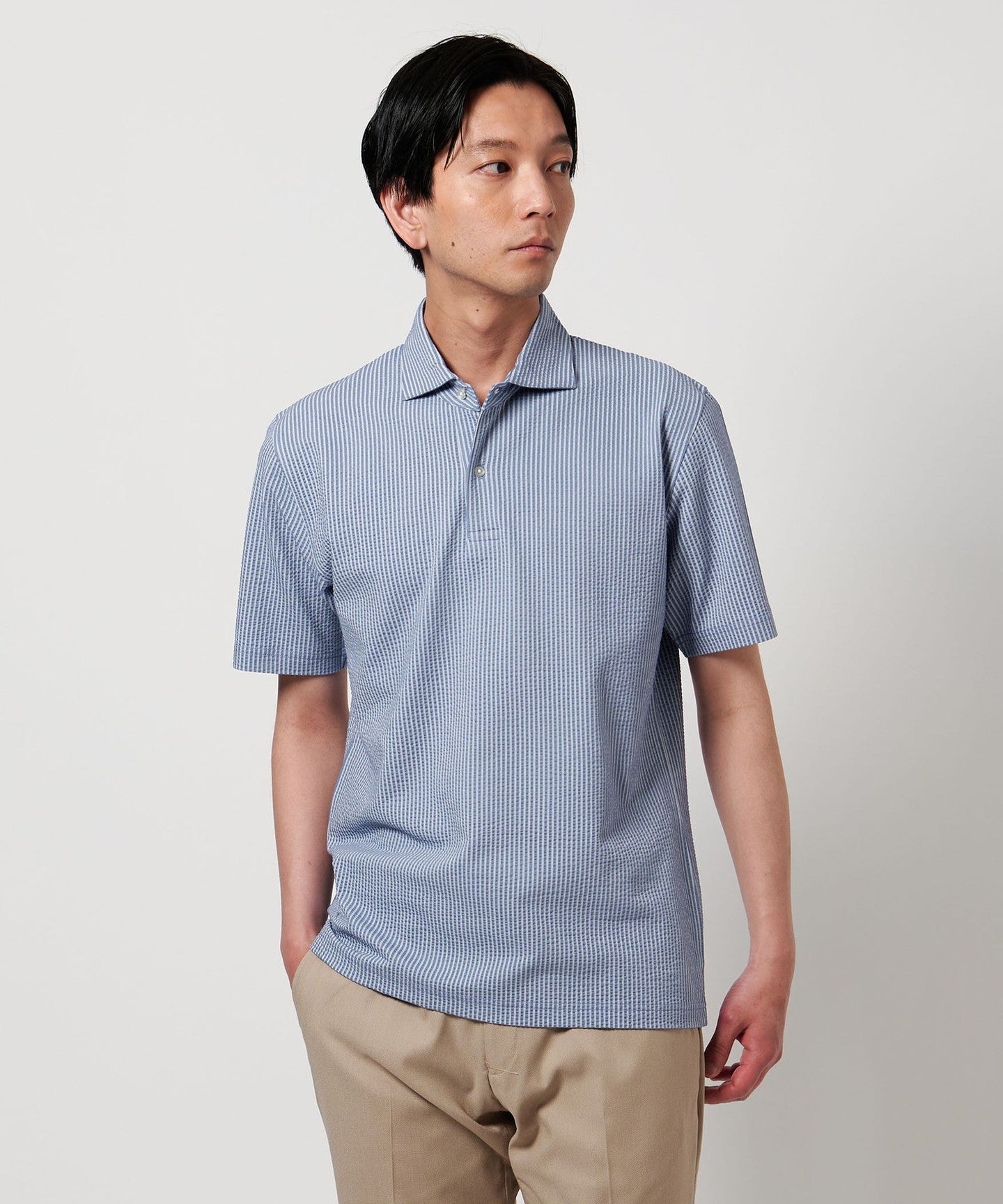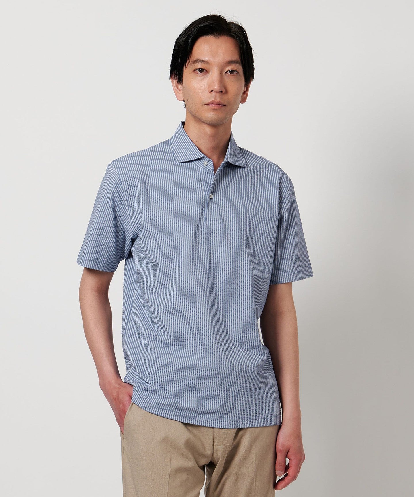 A polo shirt made from a textured soccer fabric that feels comfortable against the skin.