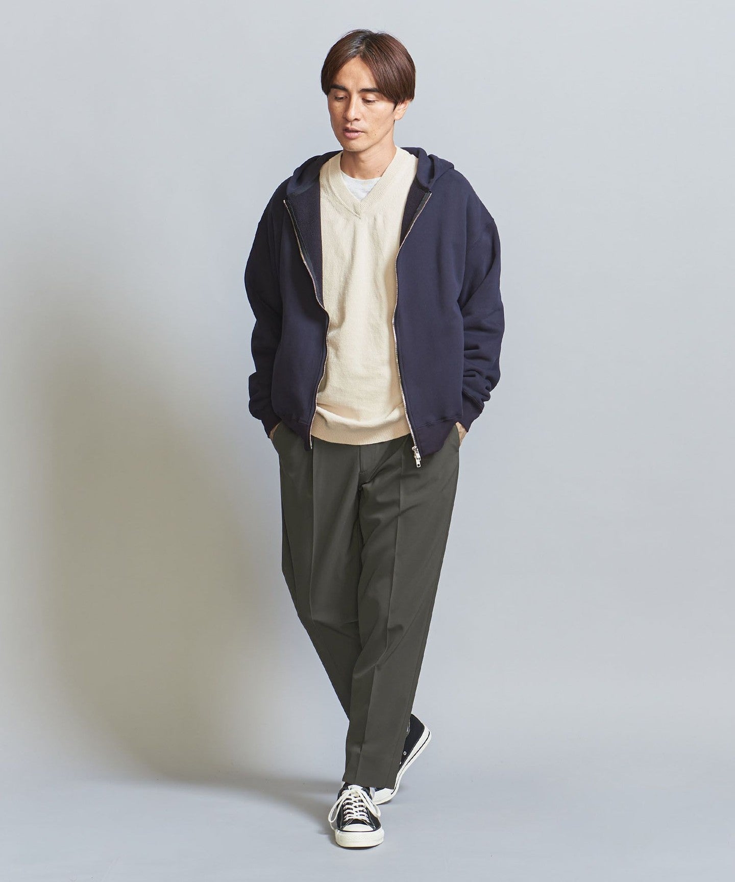 Tucks are added around the waist to give room from the hips to the thighs, HEM It has a tapered silhouette that gradually narrows towards the waist.