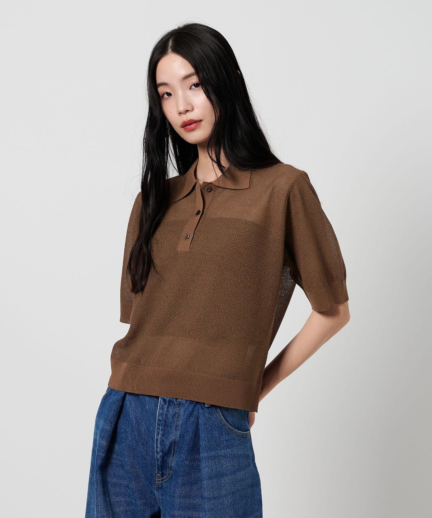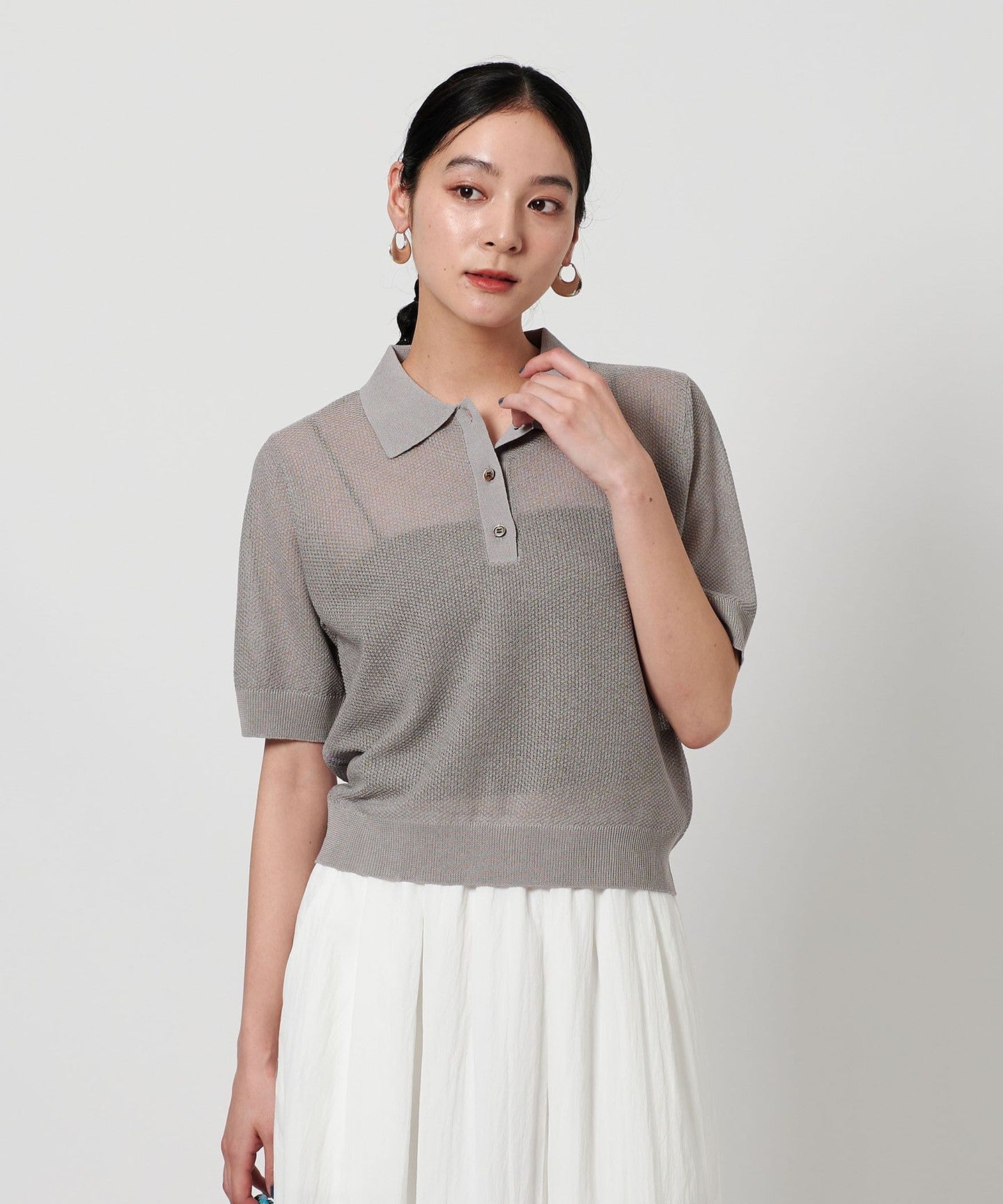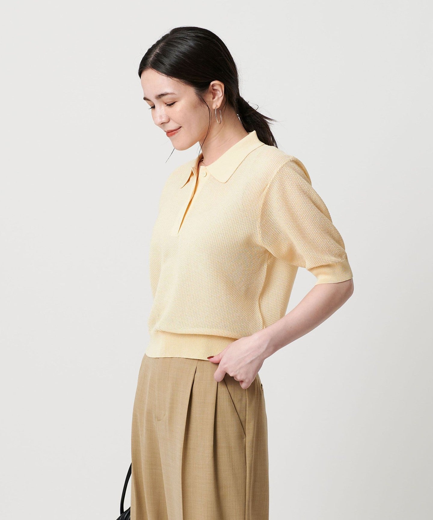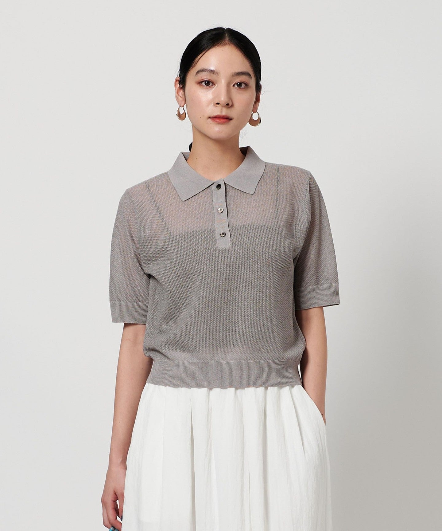 We used a slightly stiff polyester rayon yarn to create a mesh knit that is cool and does not loosen easily.