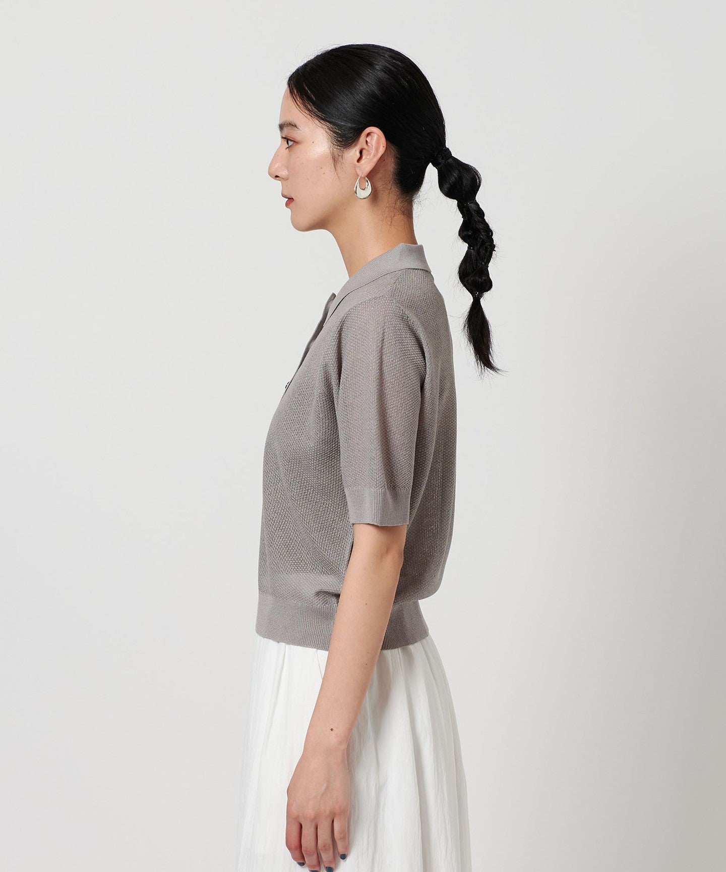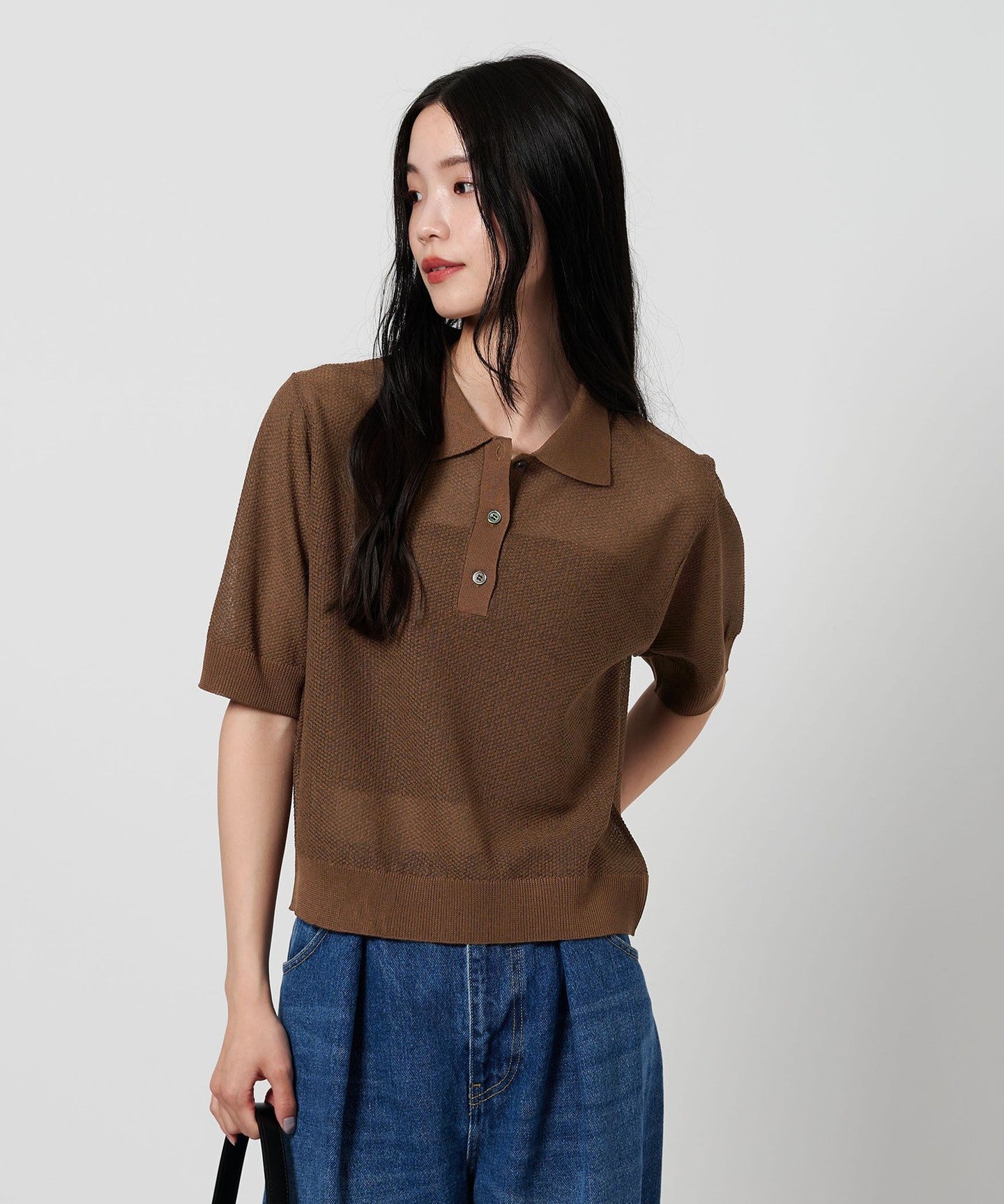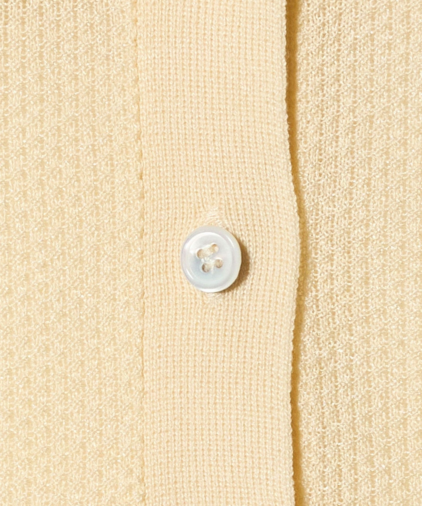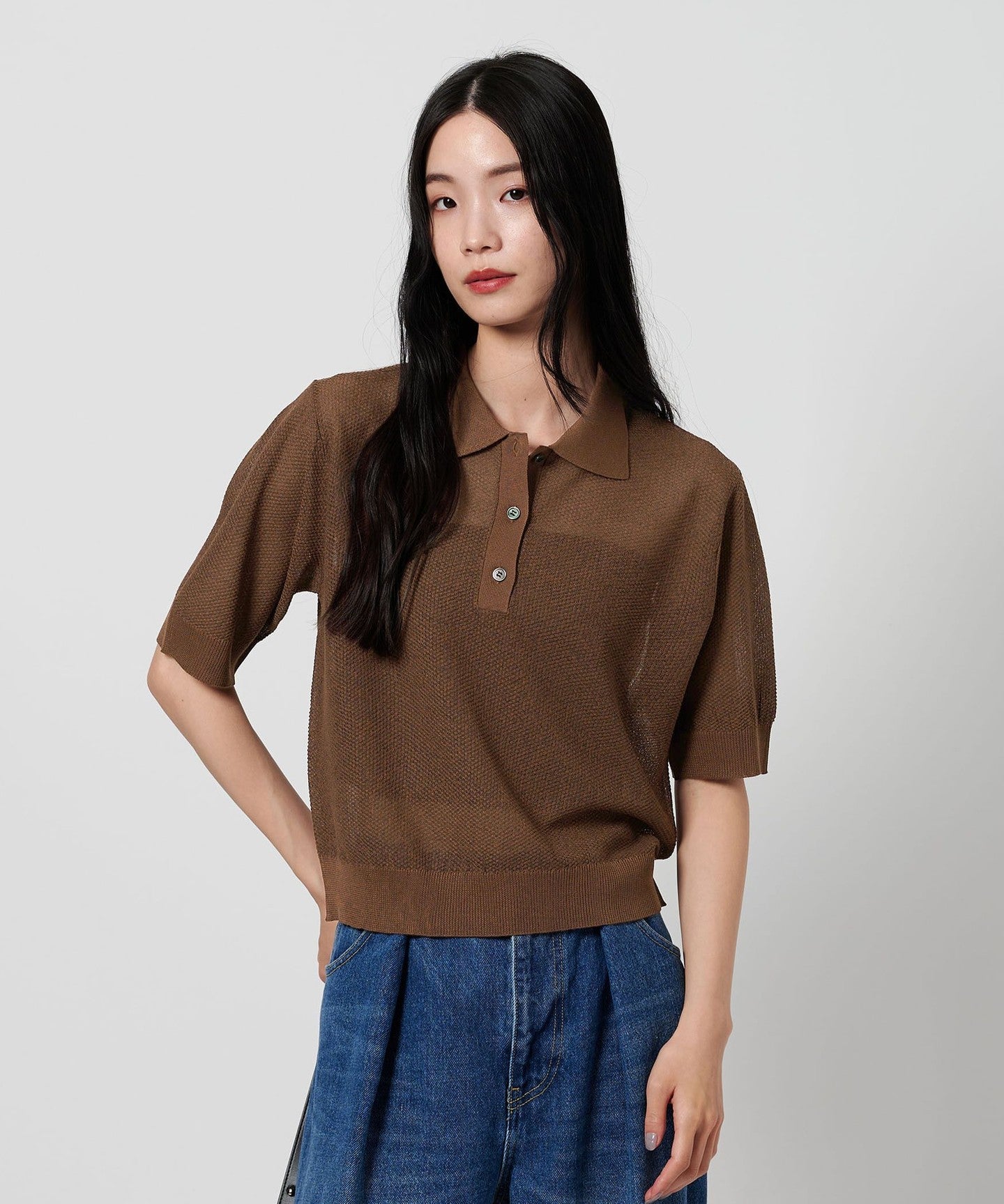 We used a slightly stiff polyester rayon yarn to create a mesh knit that is cool and does not loosen easily.