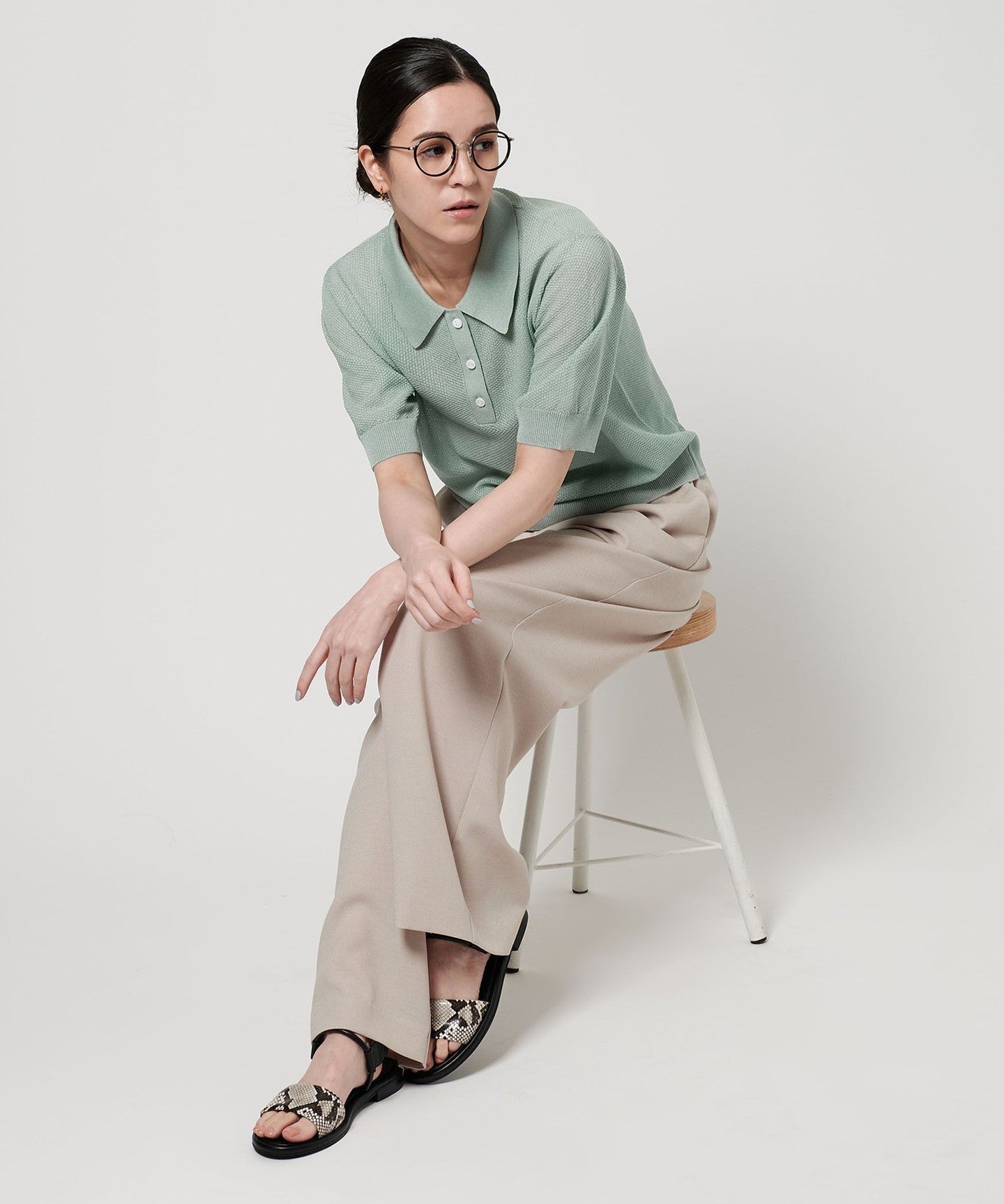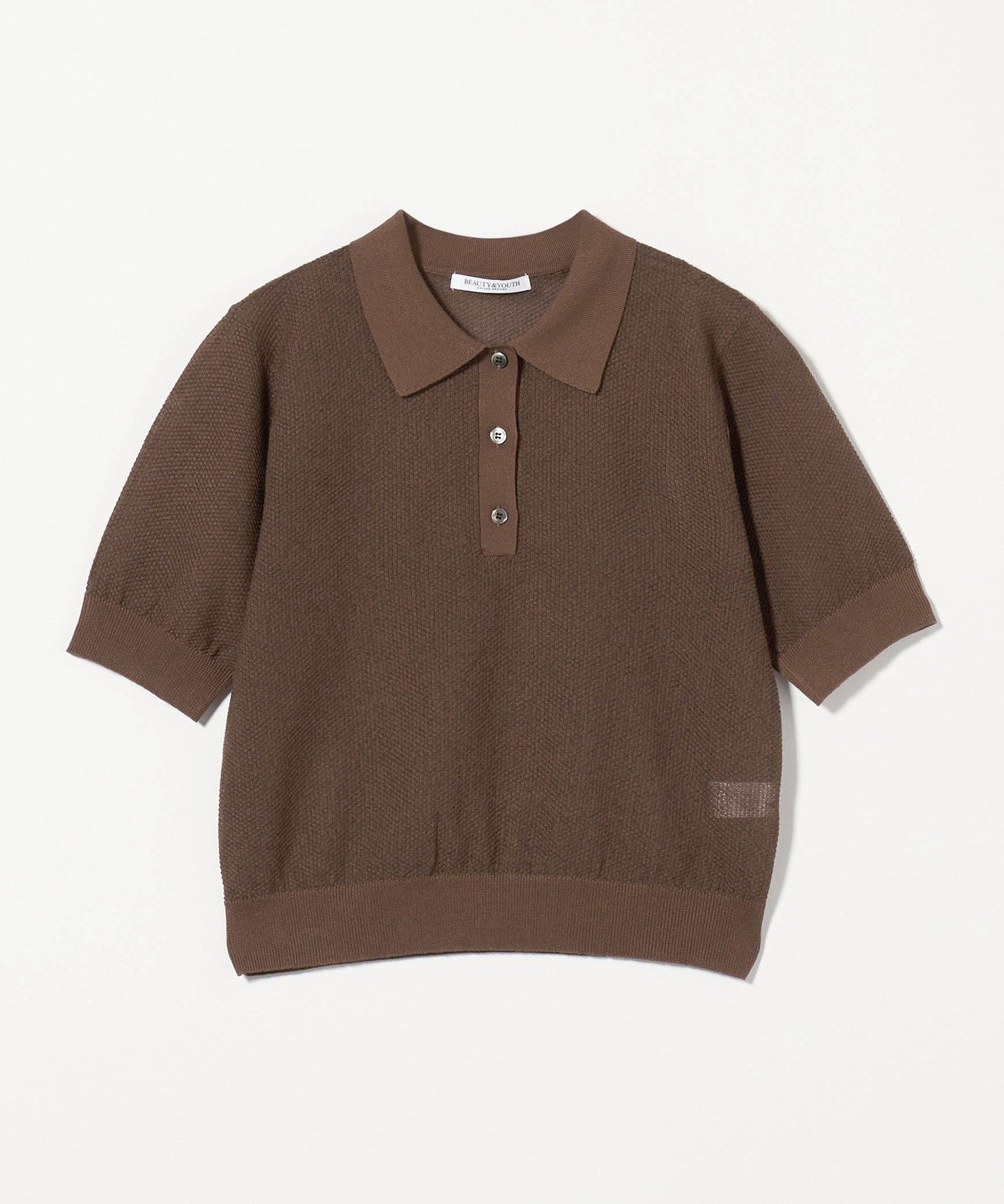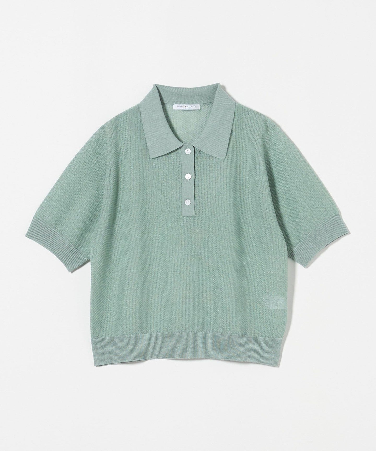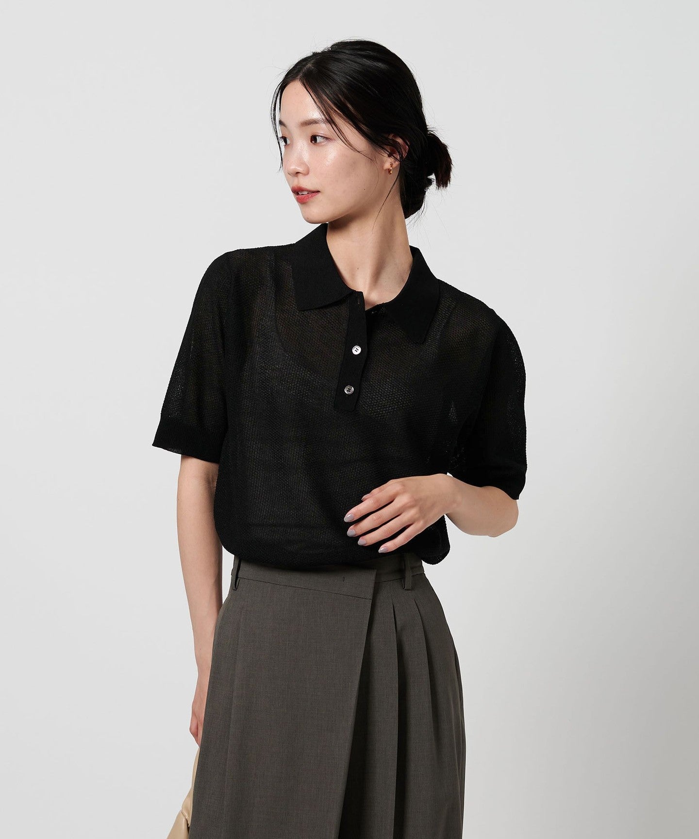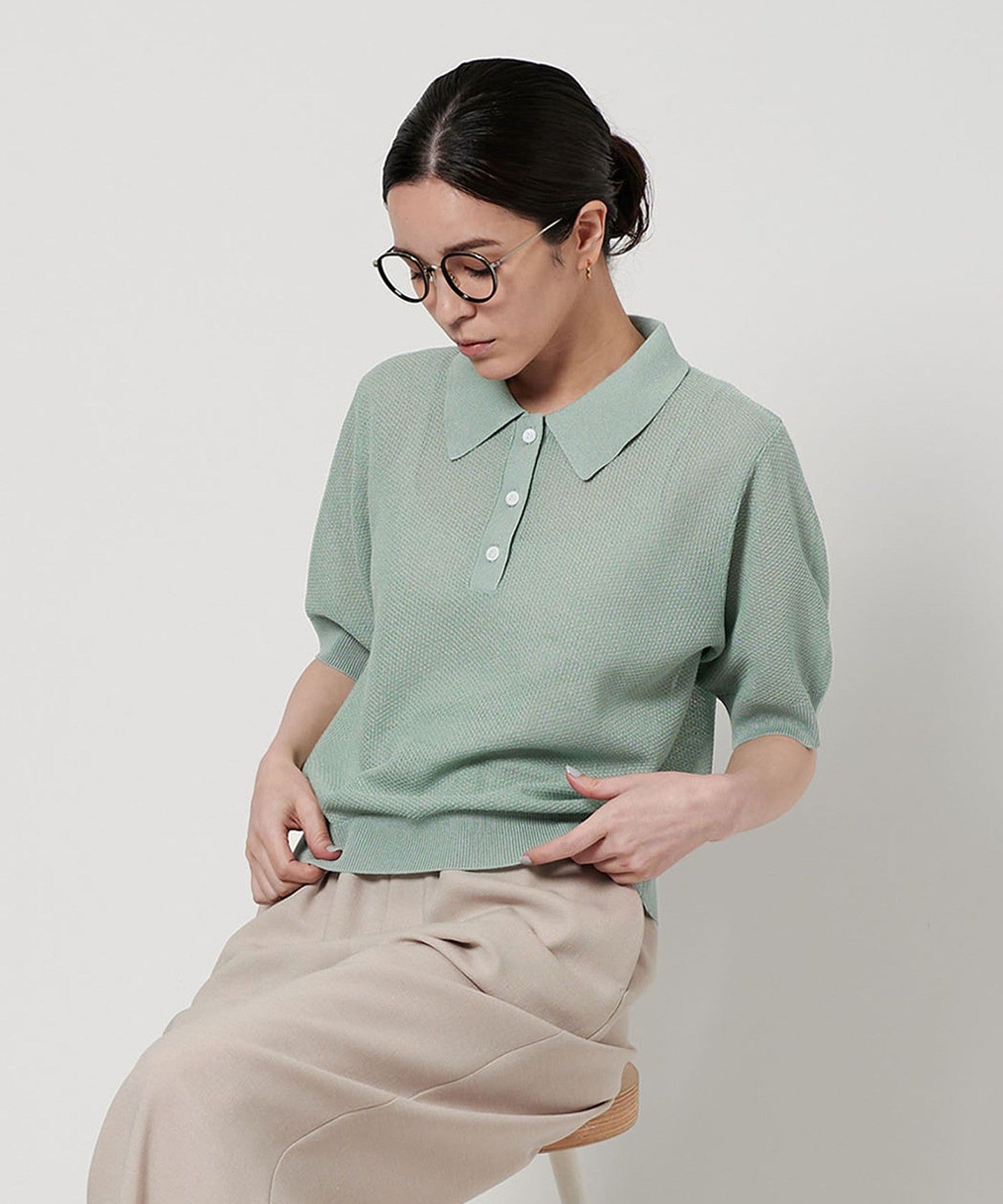 We used a slightly stiff polyester rayon yarn to create a mesh knit that is cool and does not loosen easily.