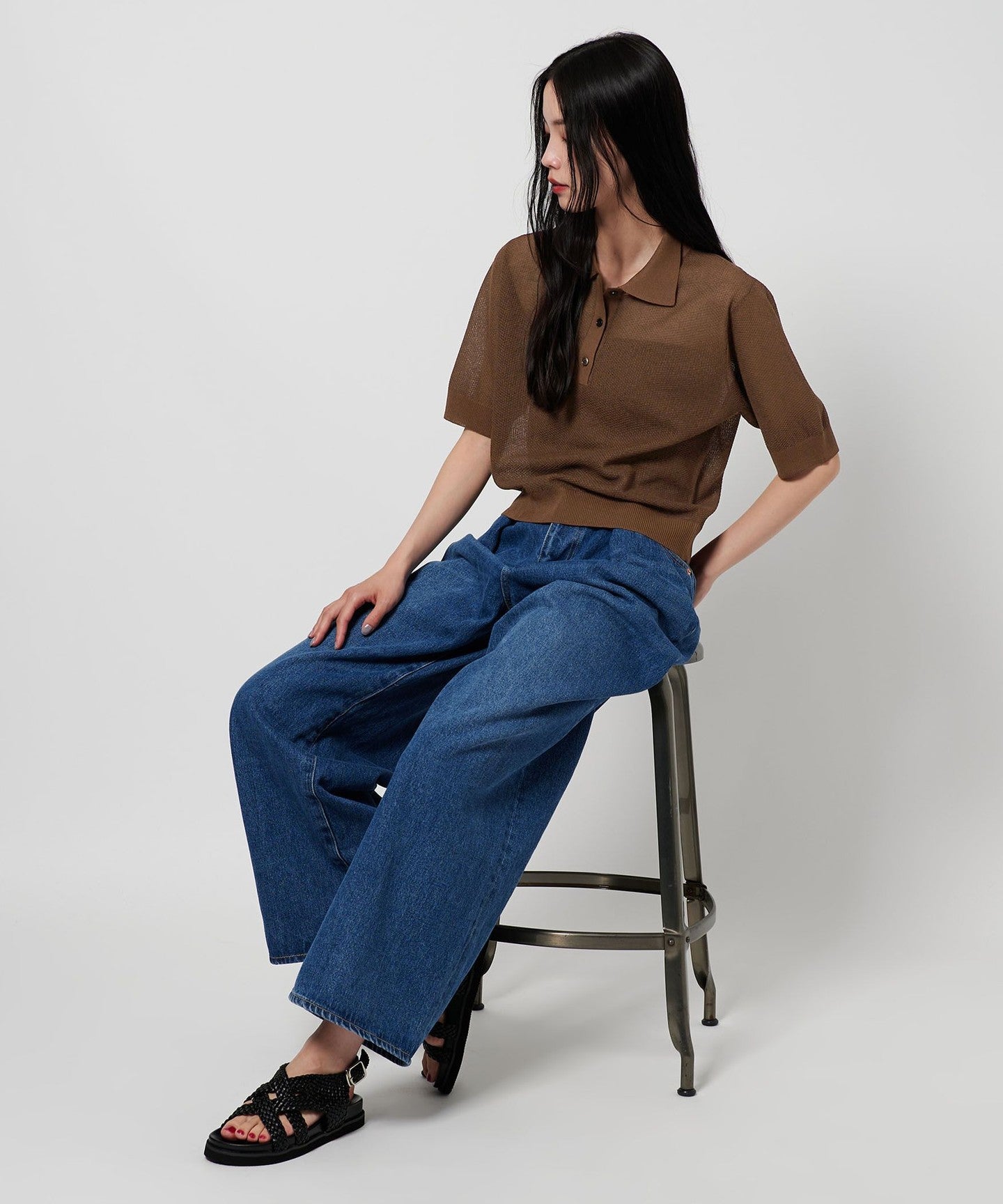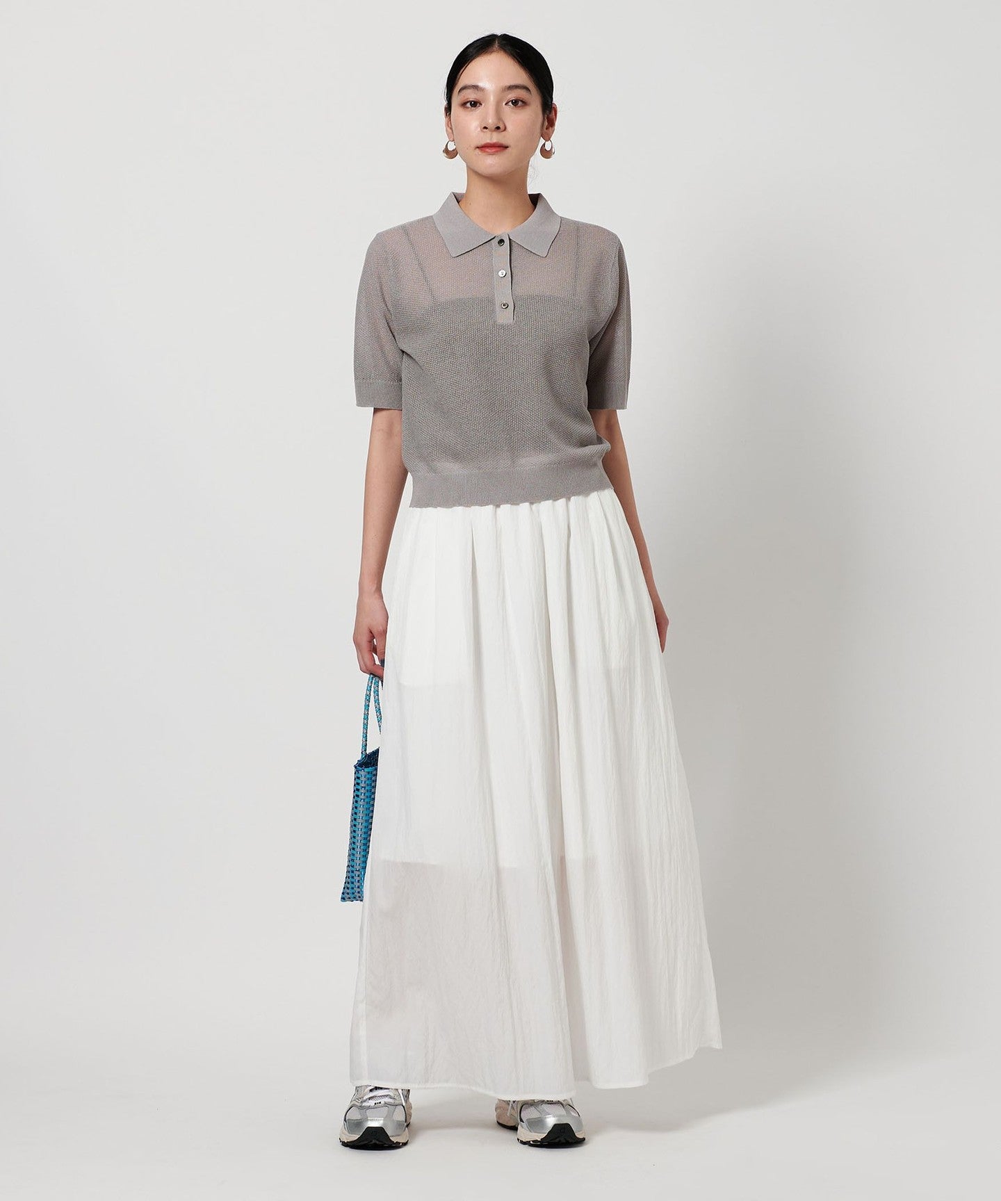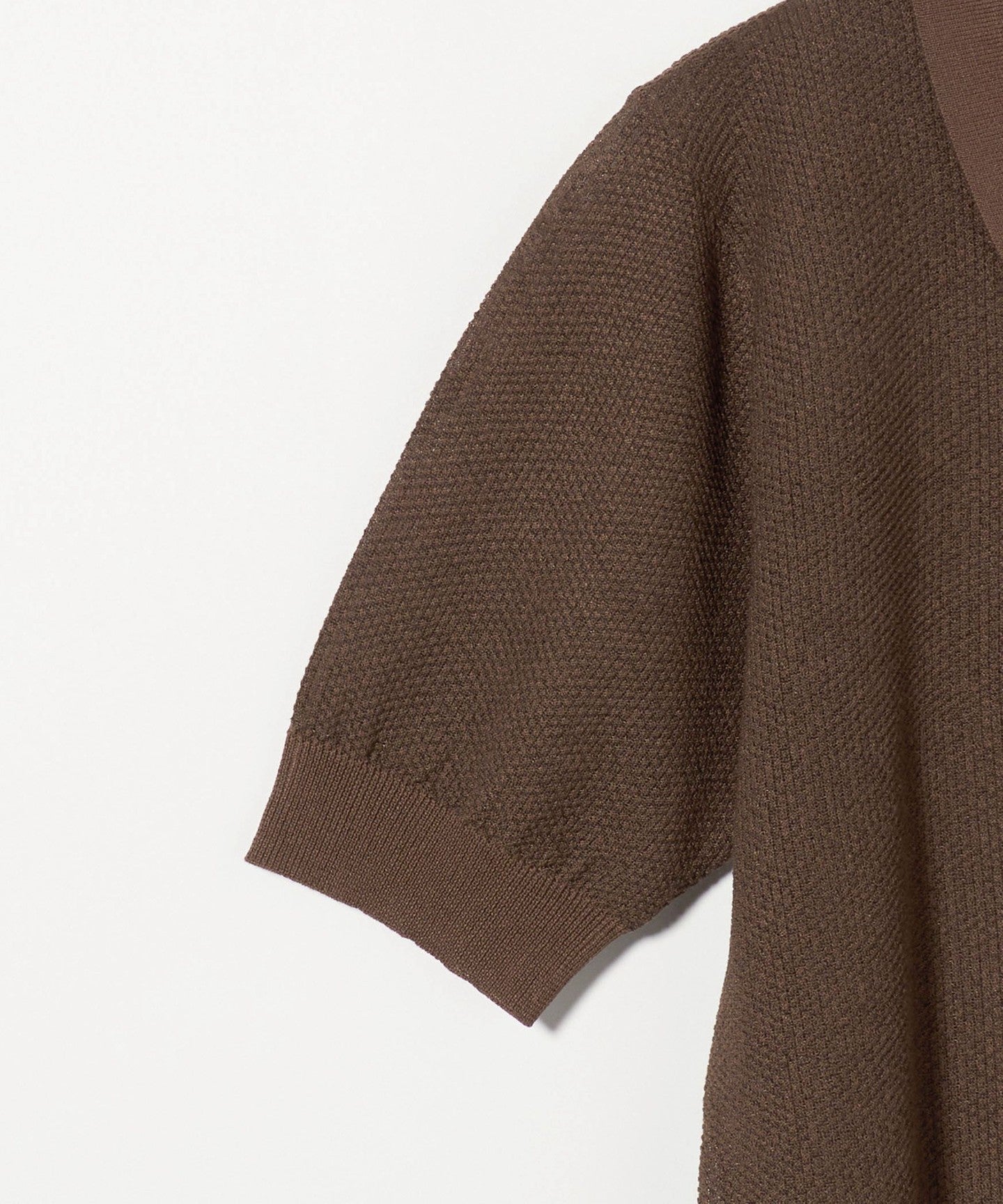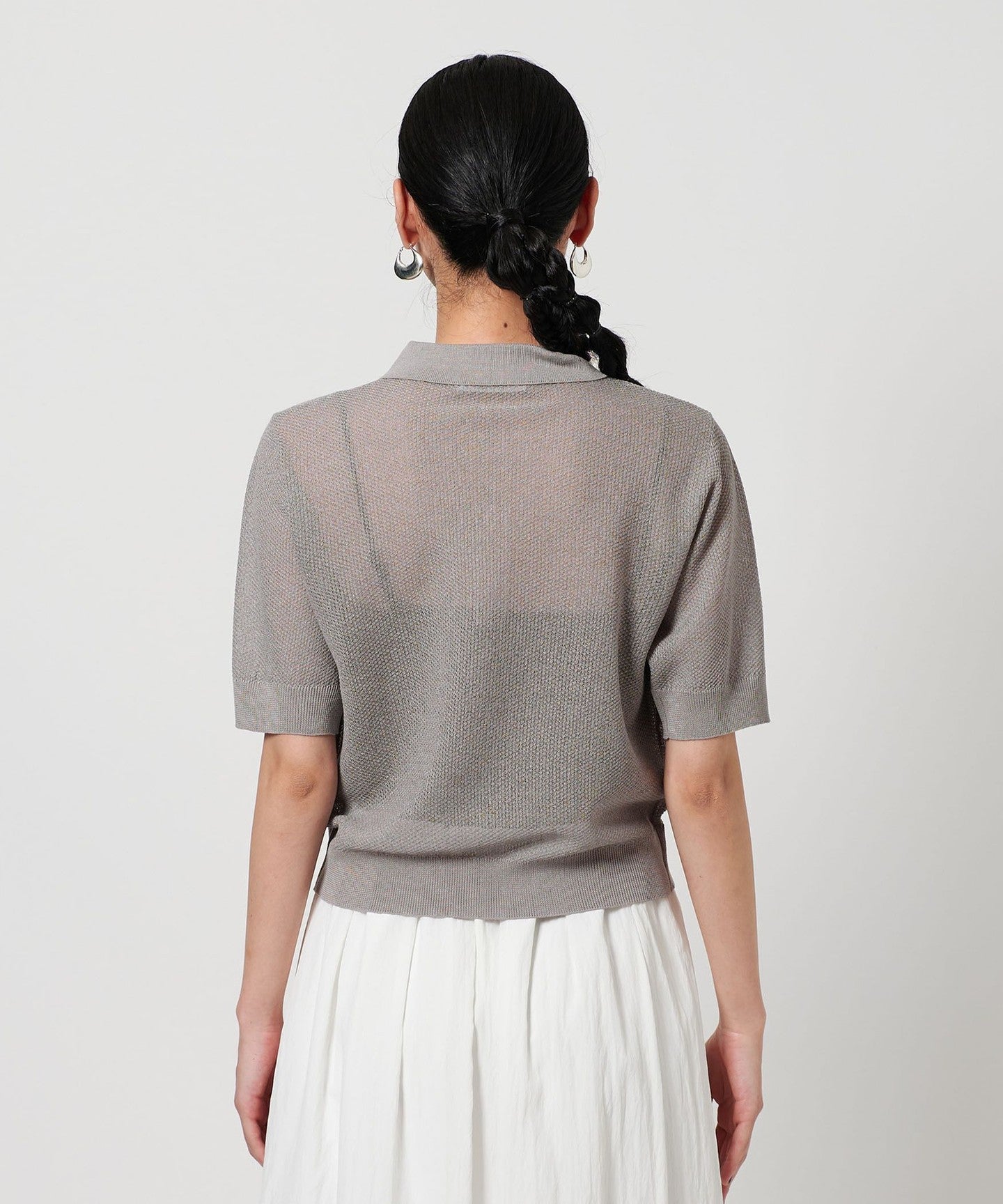 We used a slightly stiff polyester rayon yarn to create a mesh knit that is cool and does not loosen easily.