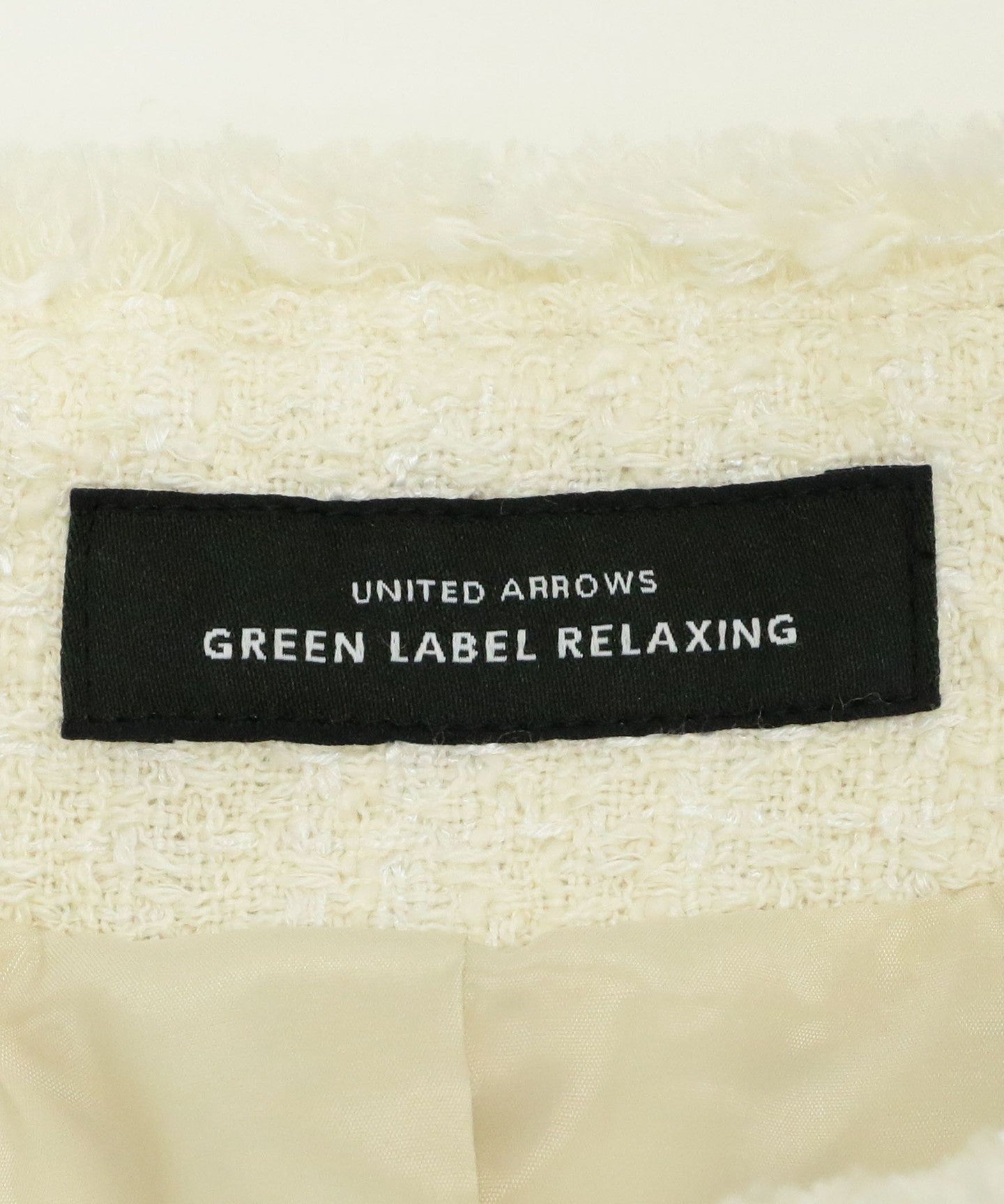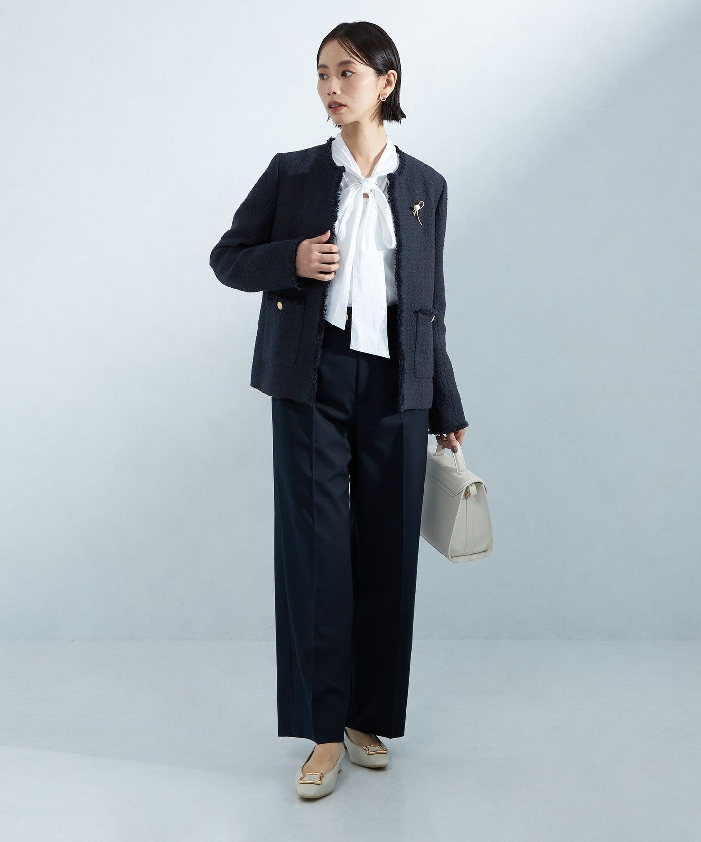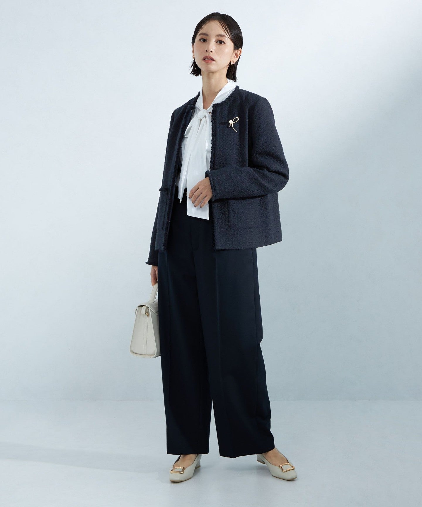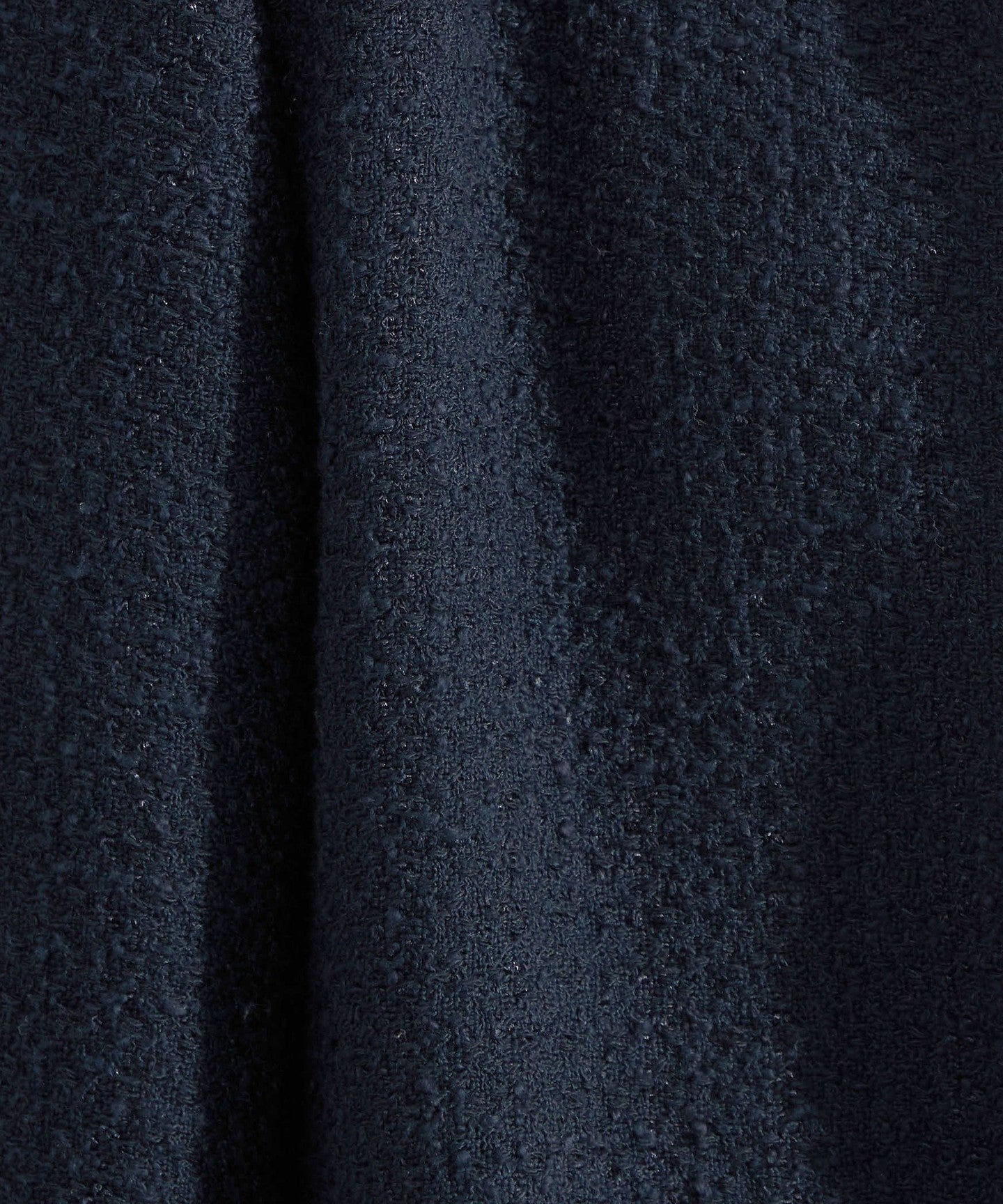 This collarless jacket has an attractive, elegant tweed-like texture.