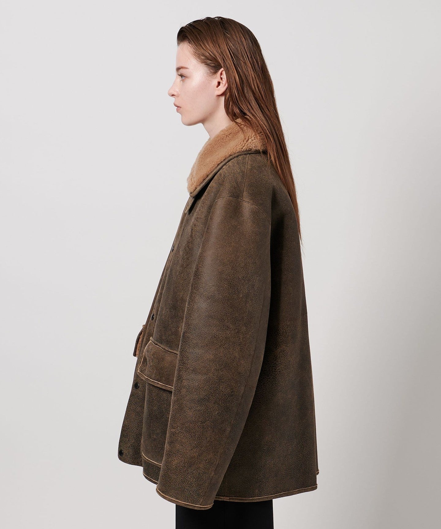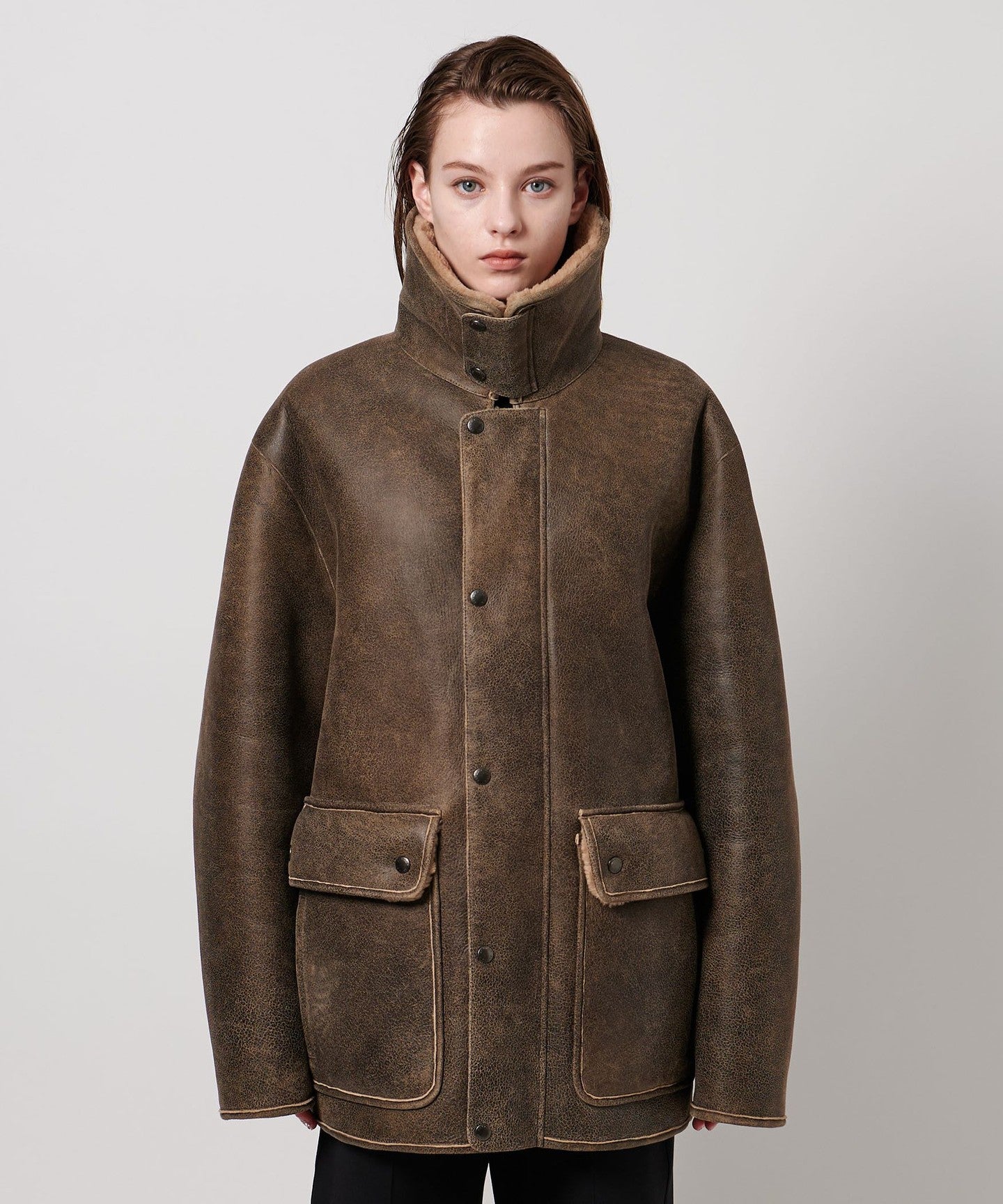 A mouton blouson with a masculine feel that is perfect for a modern look.
