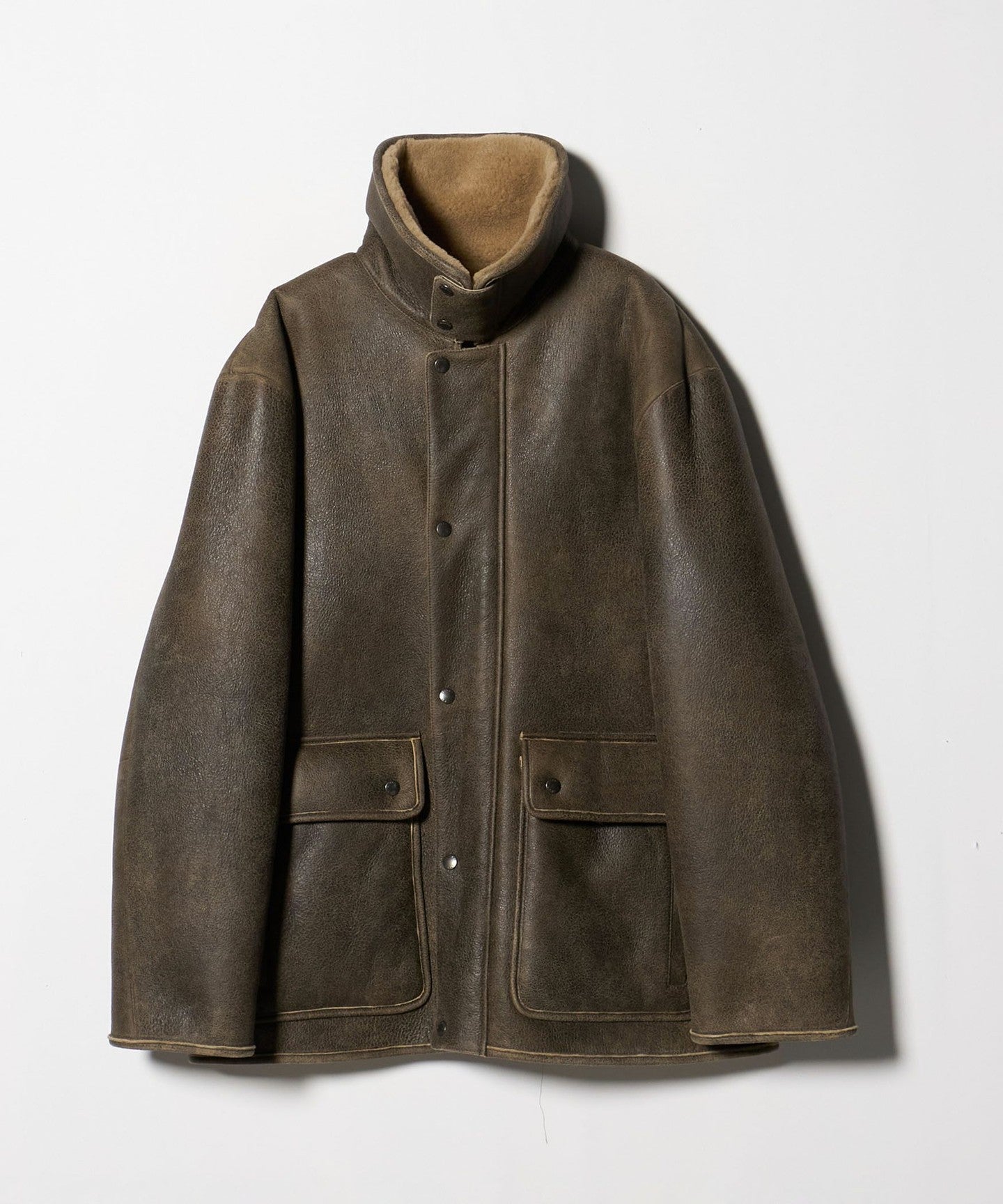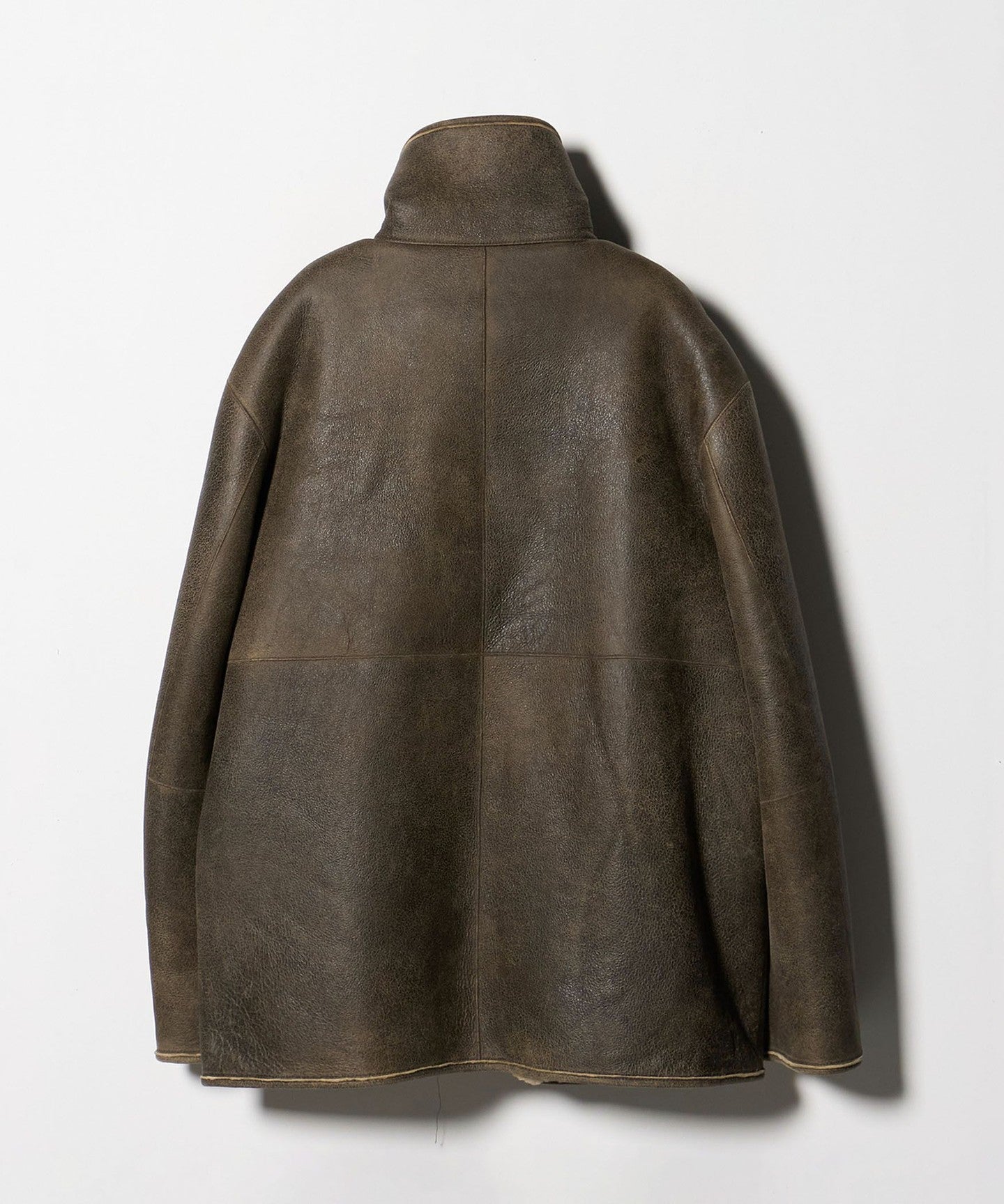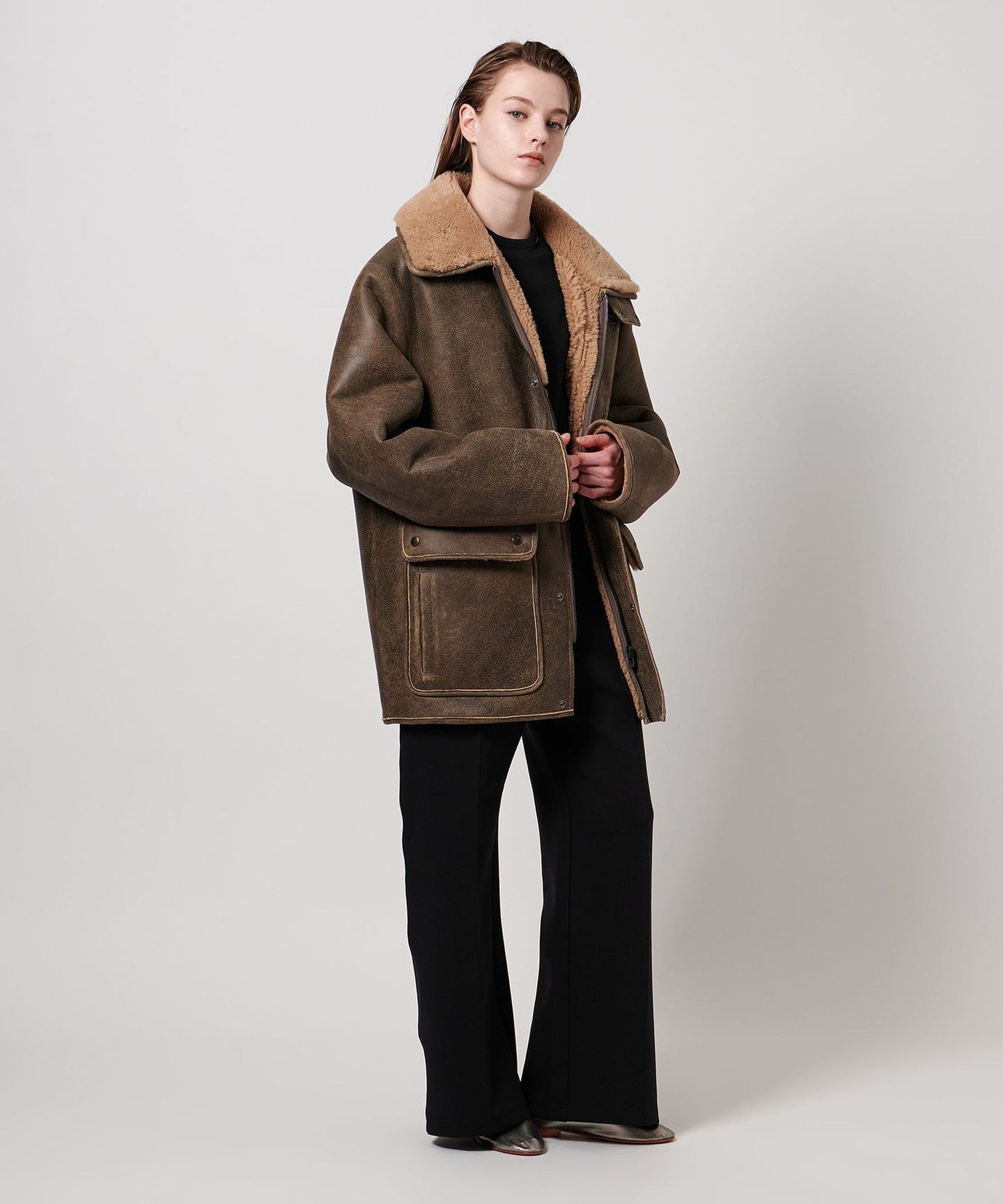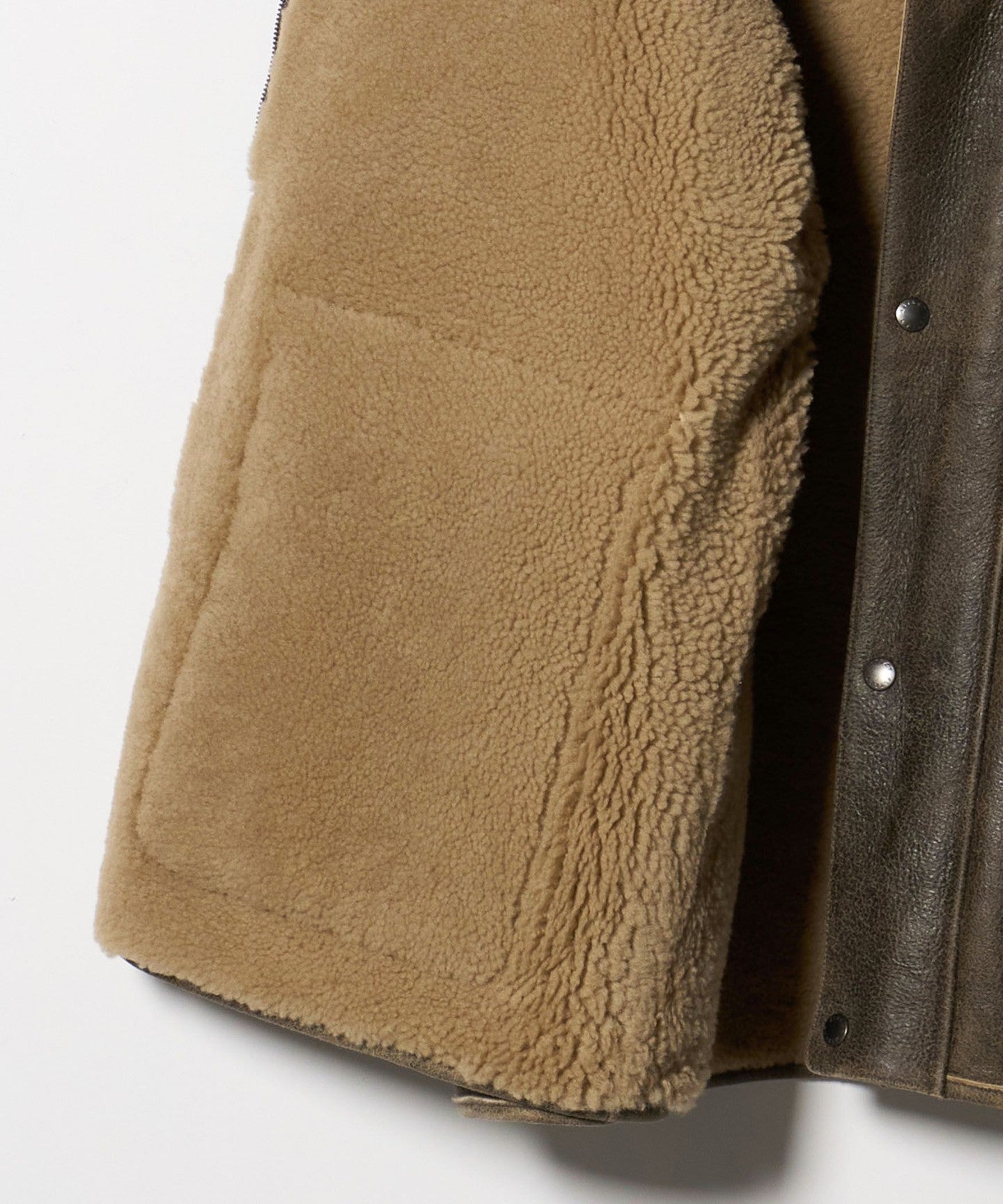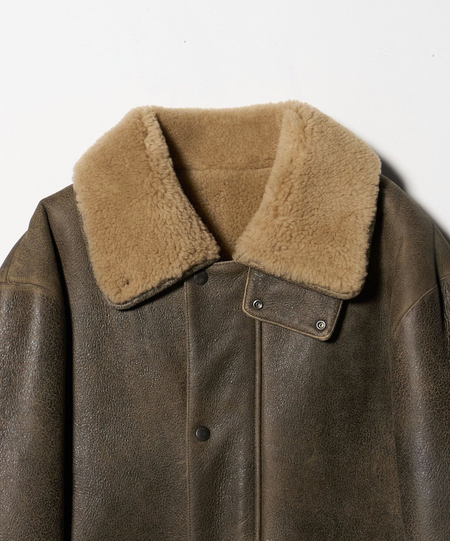 A mouton blouson with a design that combines an aviator jacket and a coverall.