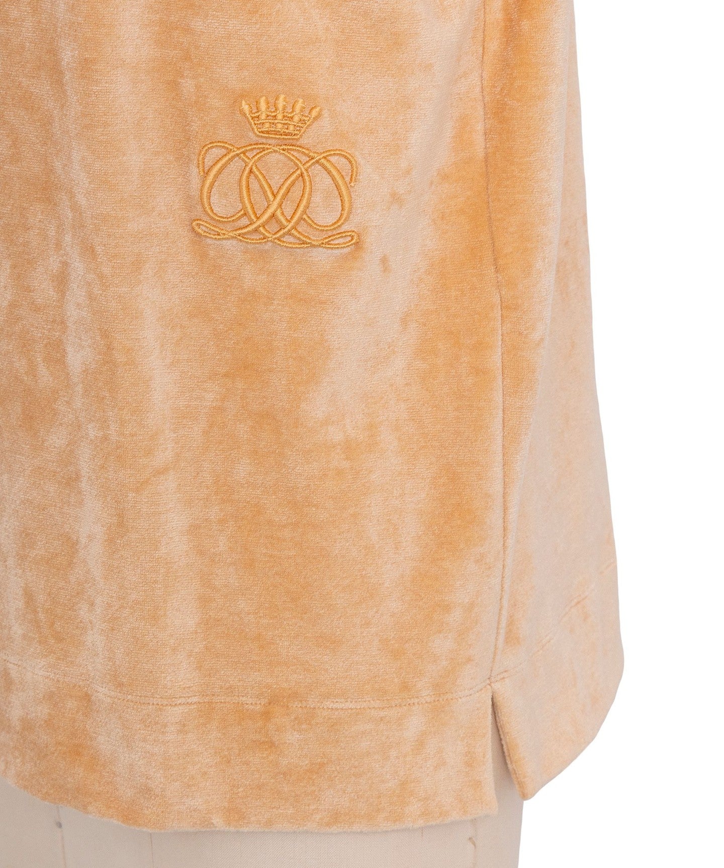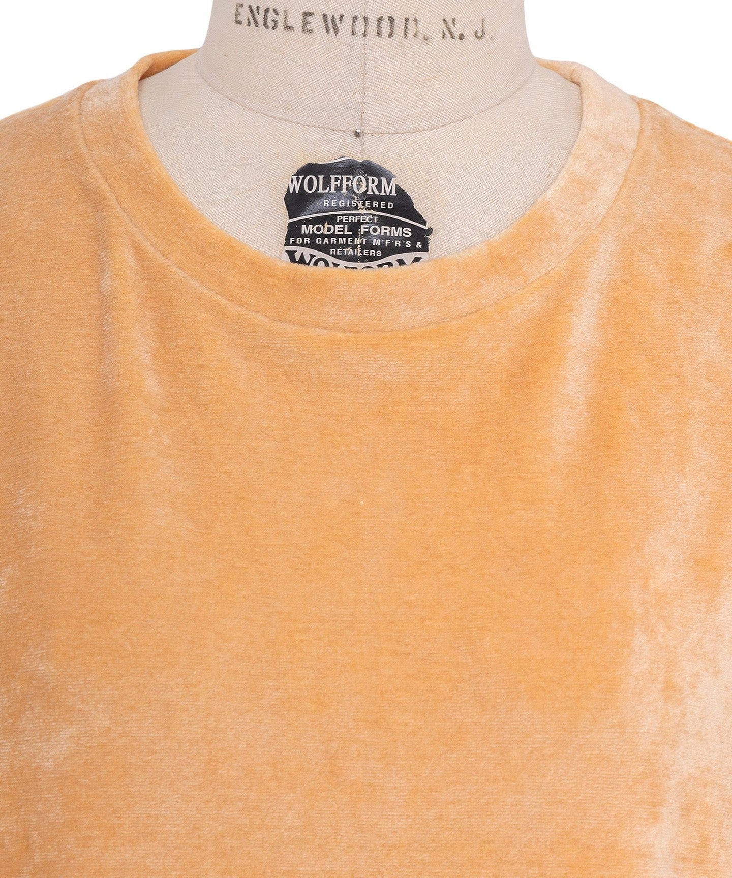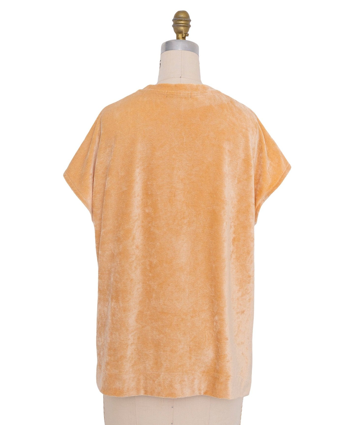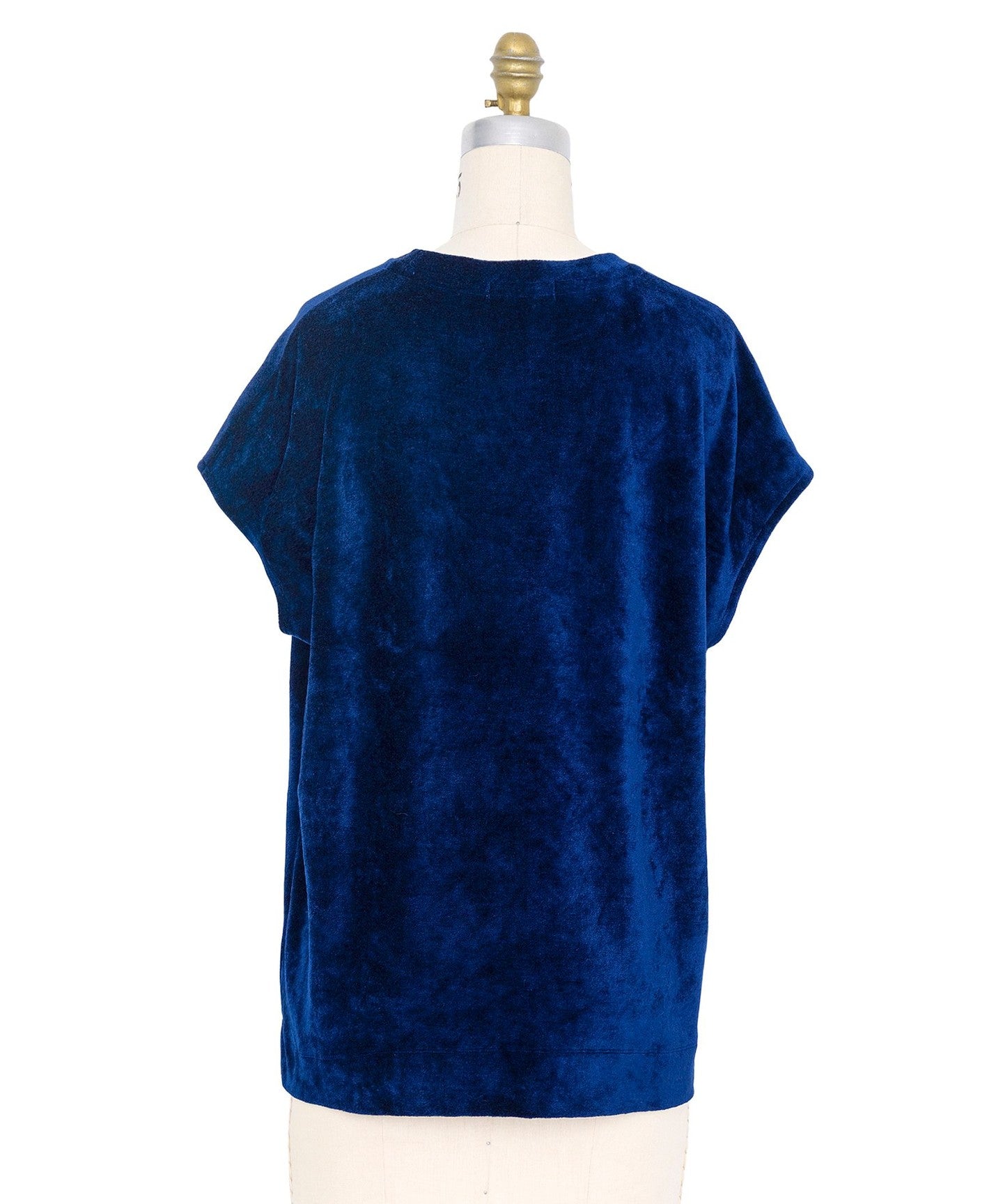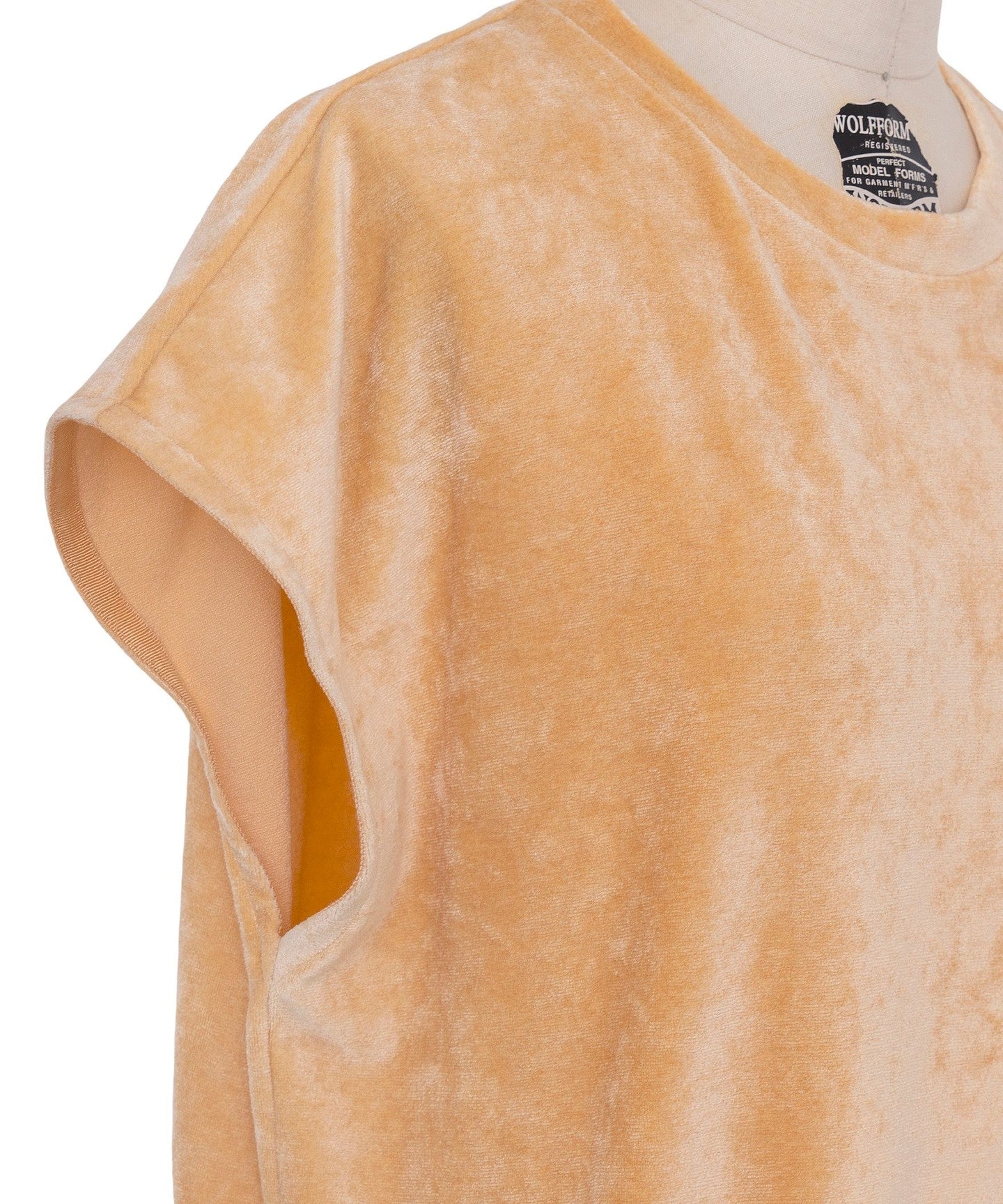 A sleeveless top made of elegant, lustrous velour material that stands out with elegance