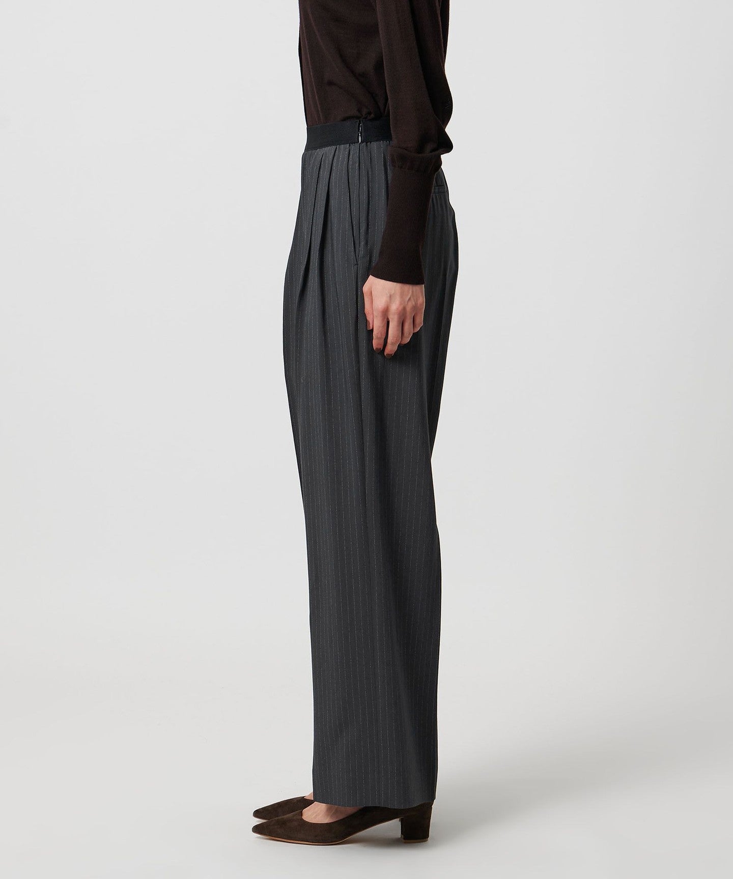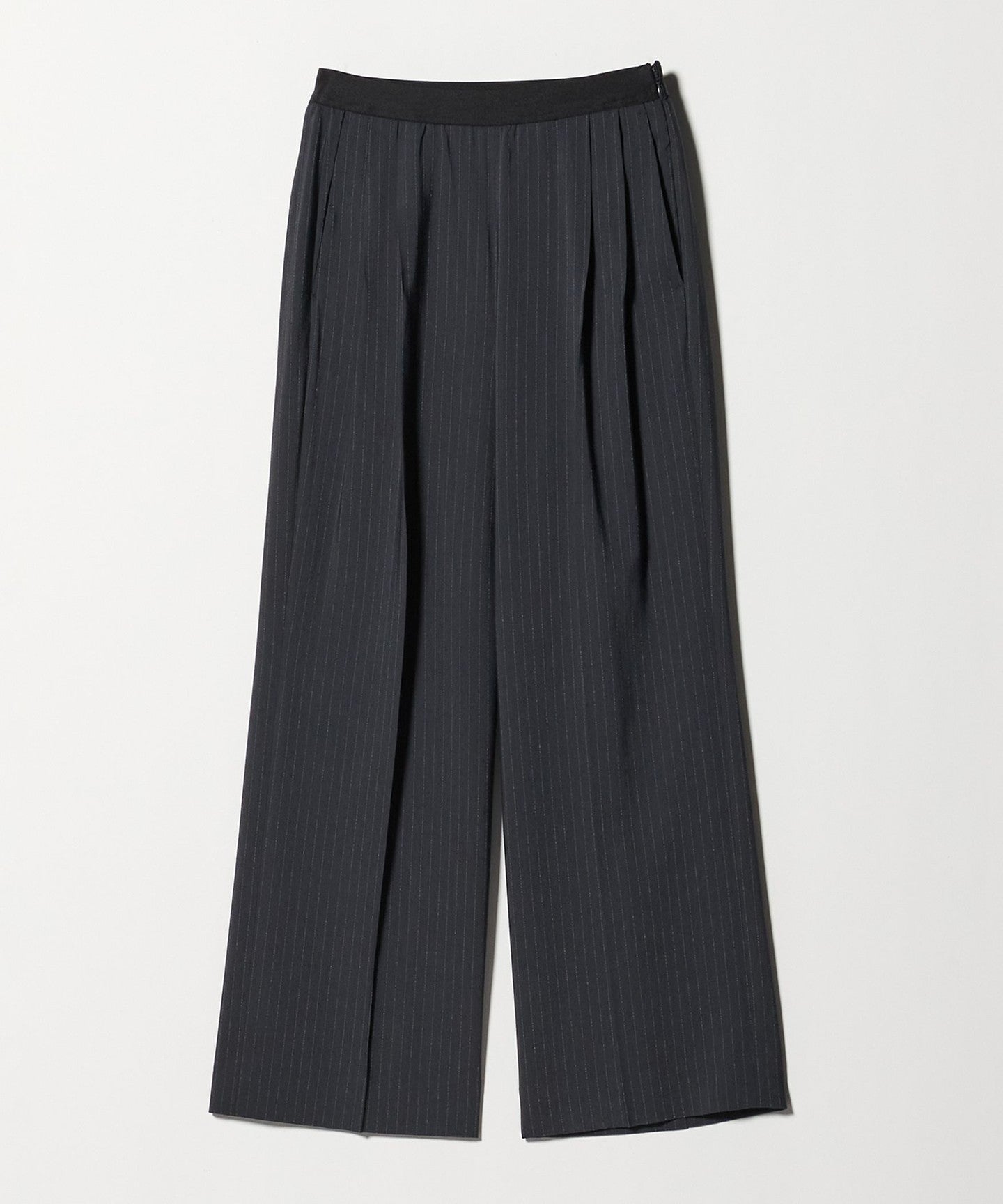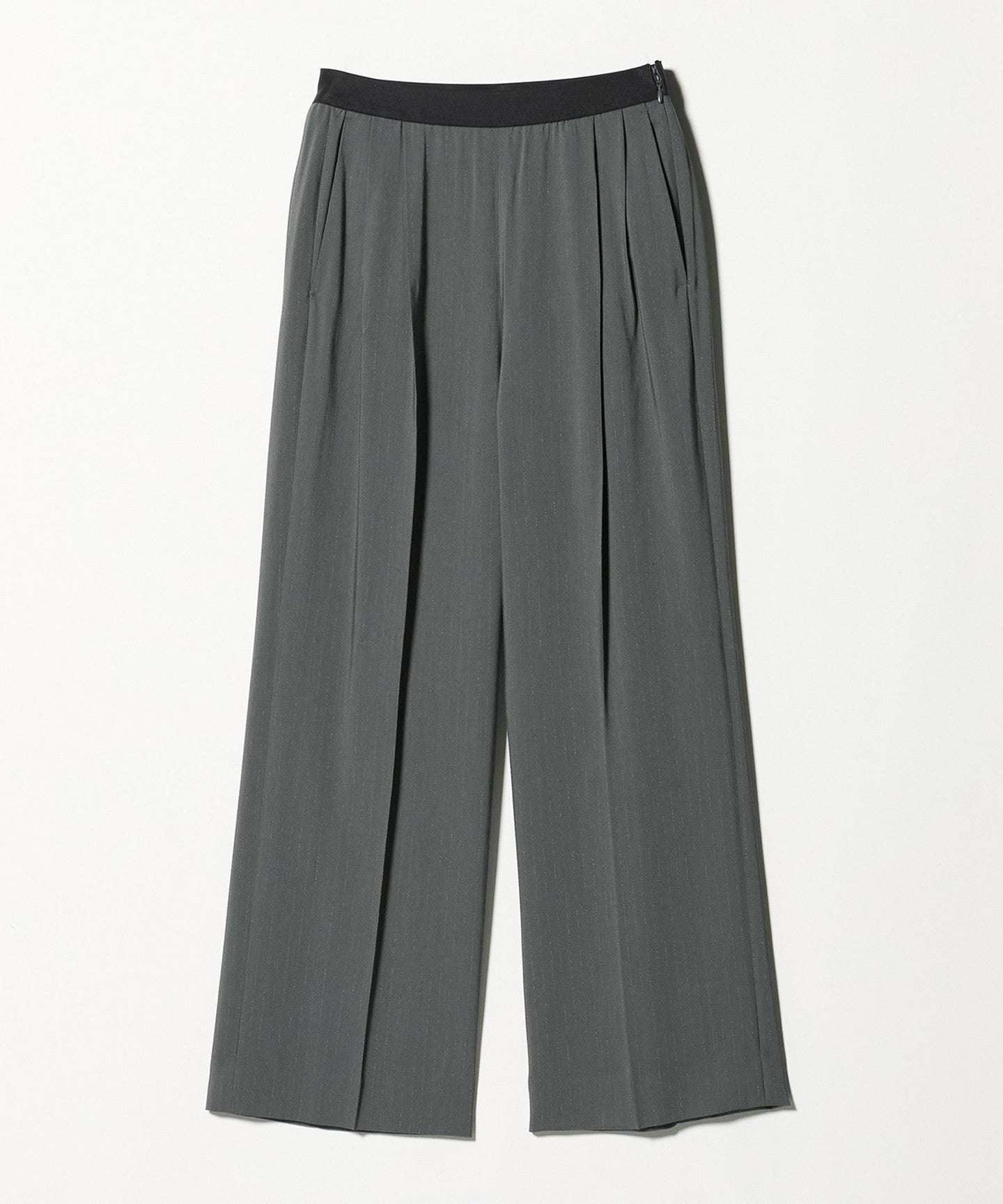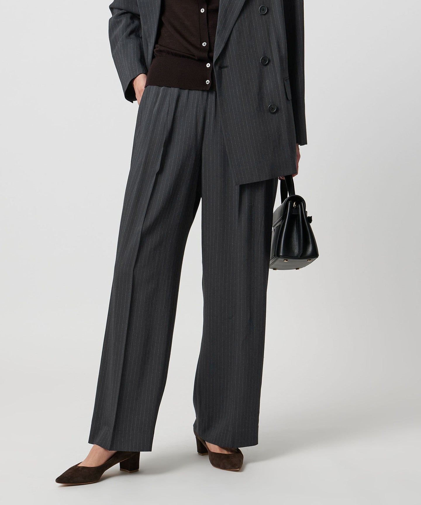 These pants have a relaxed, straight, wide silhouette with two pleats.