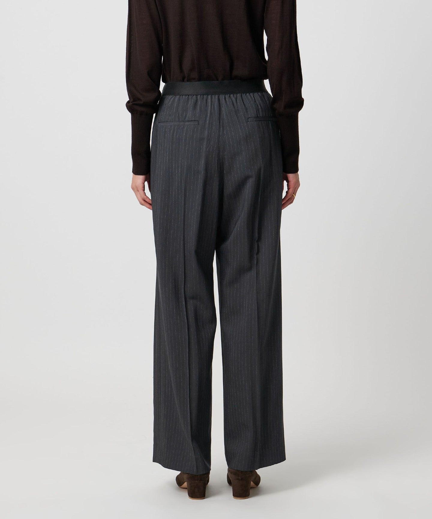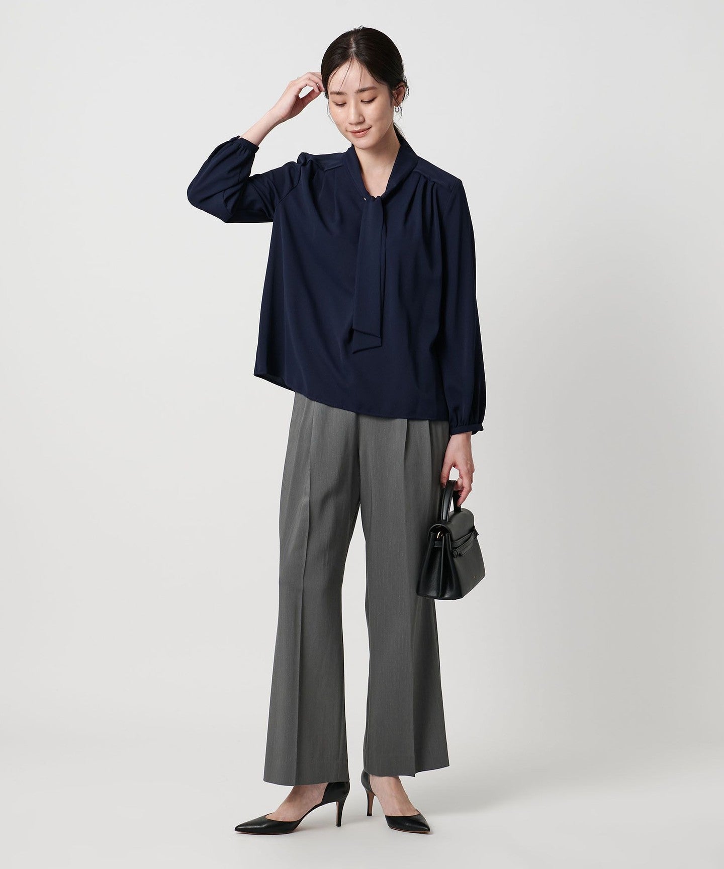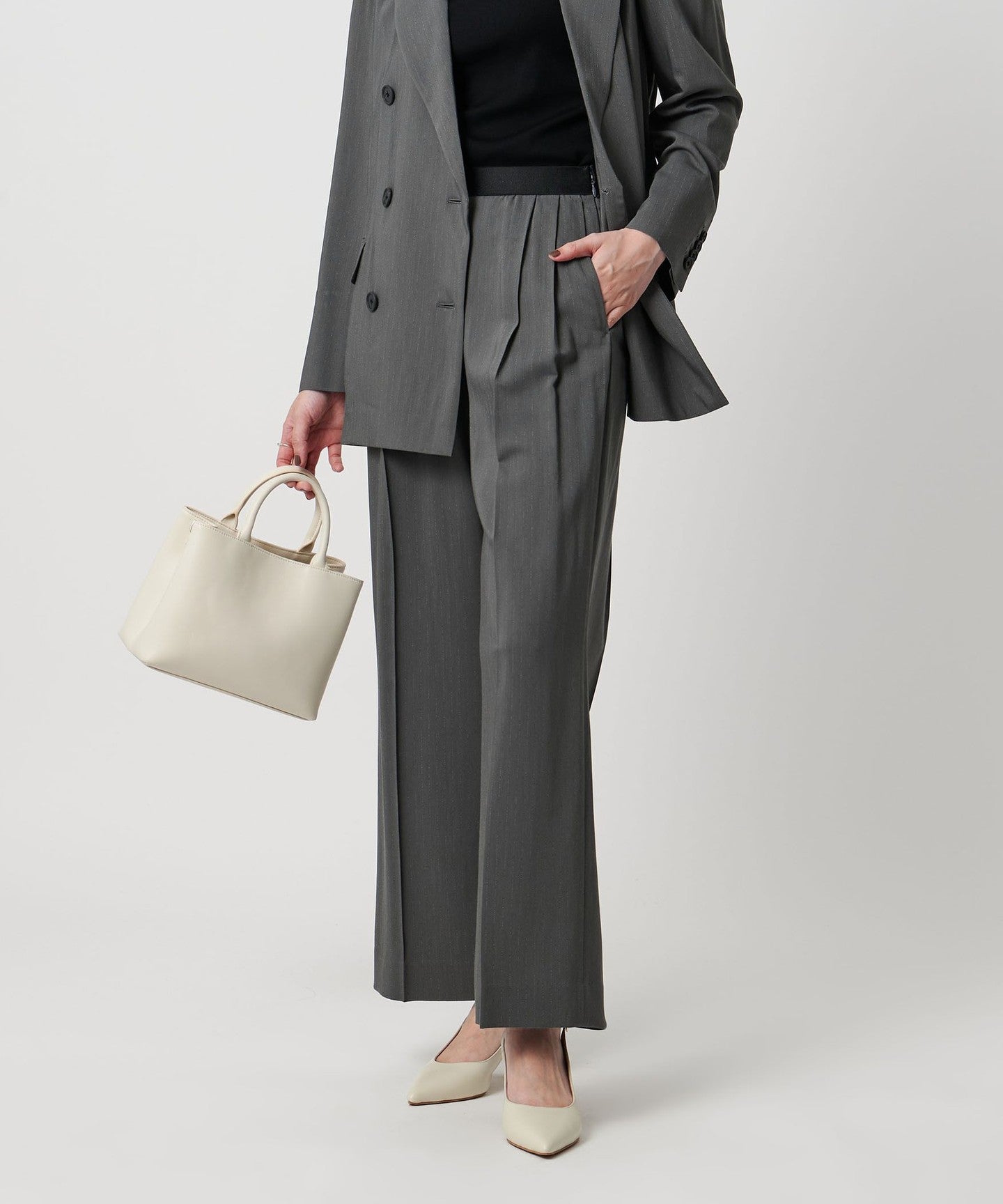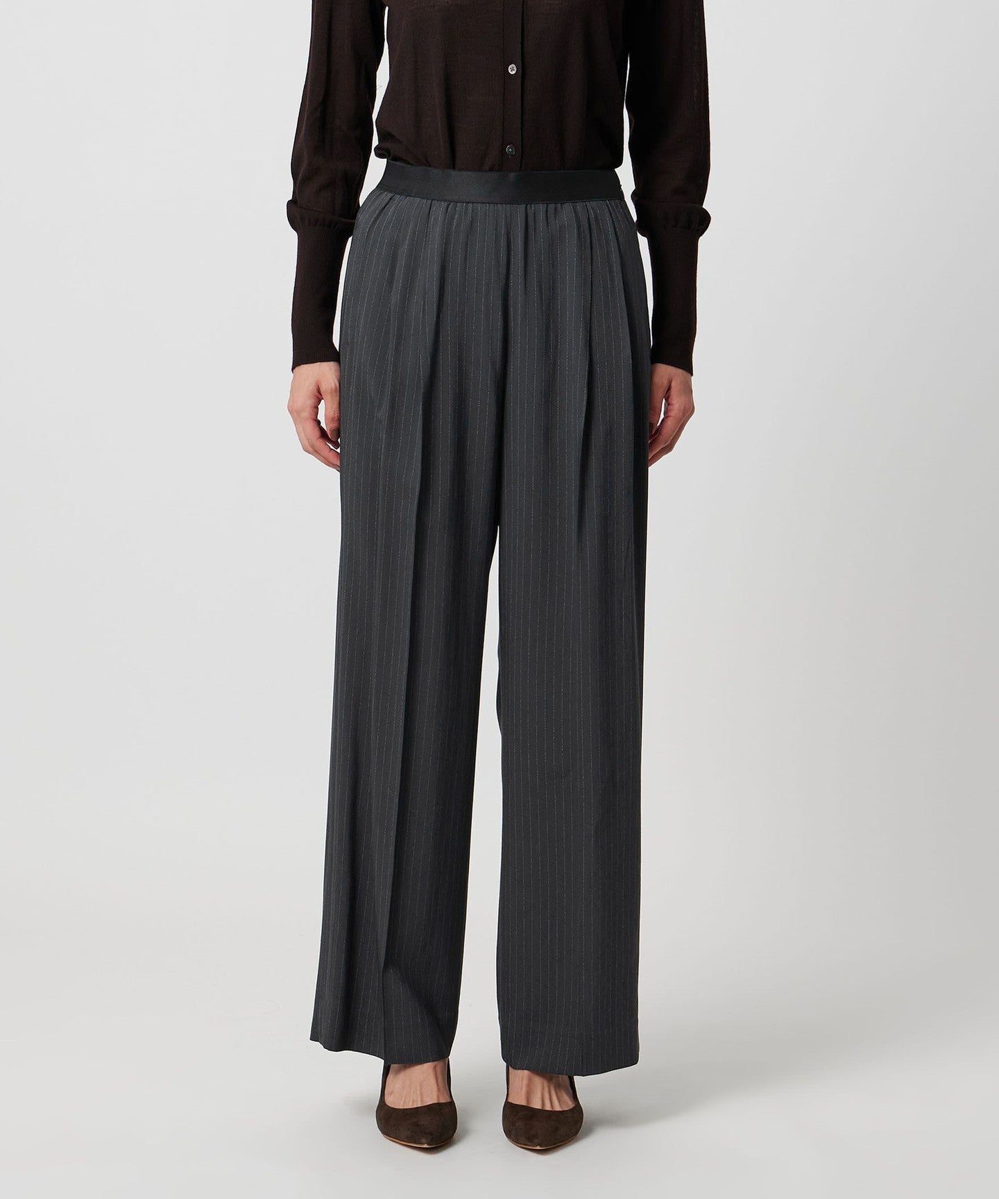 These pants have a relaxed, straight, wide silhouette with two pleats.
