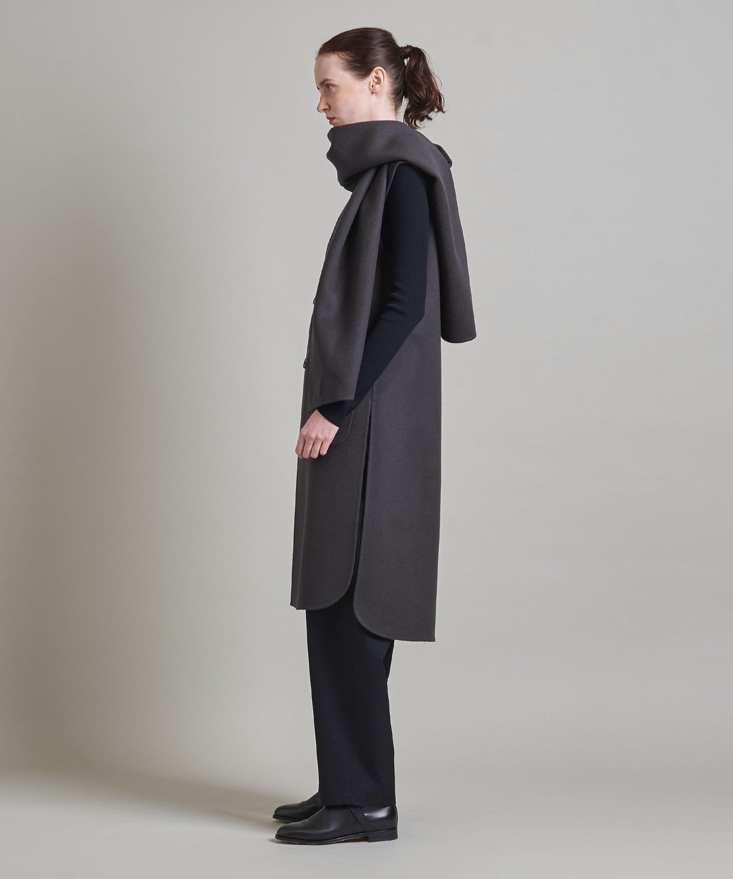 The convenient patch pockets and large scarf made from the same fabric allow you to customize your look.