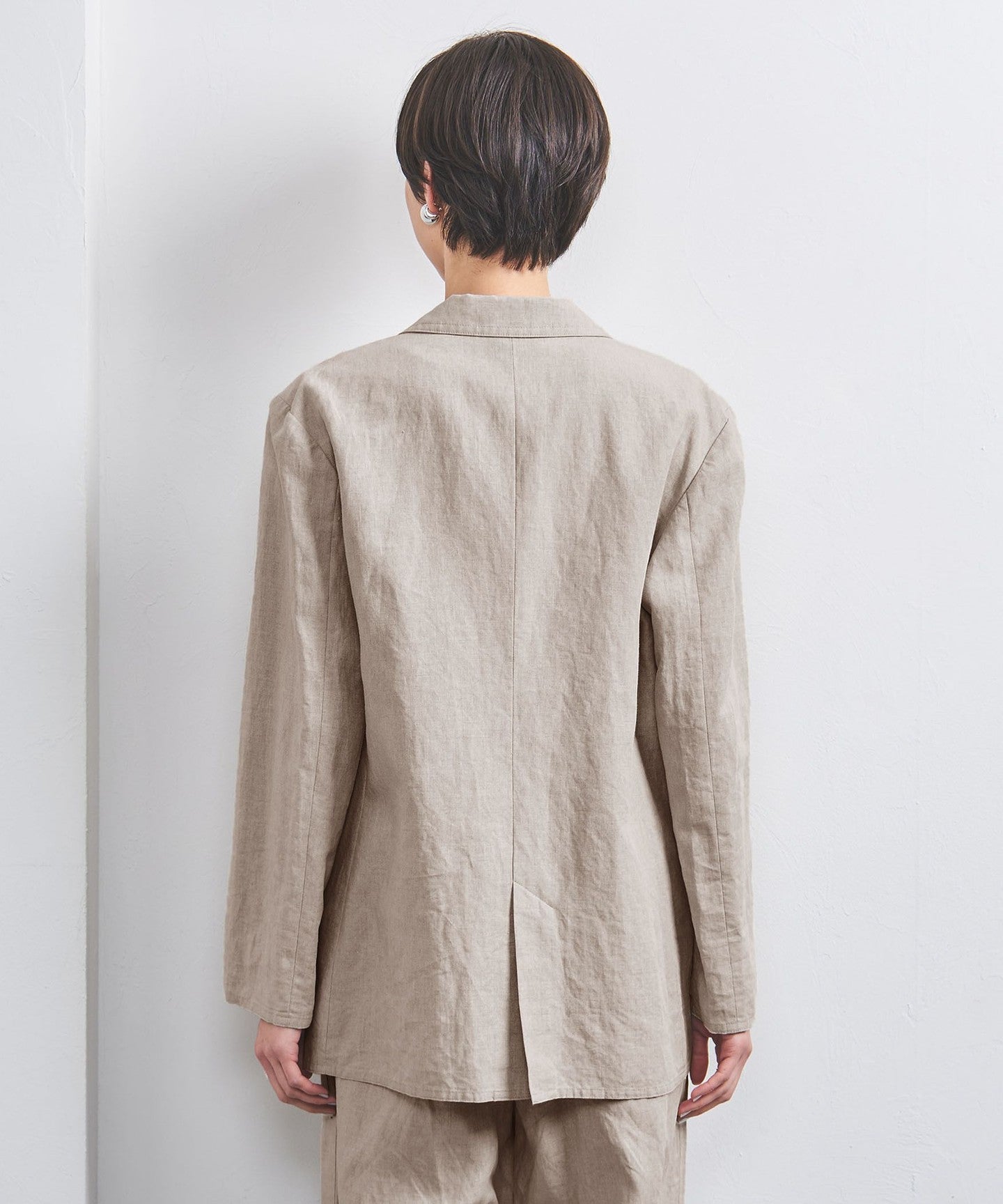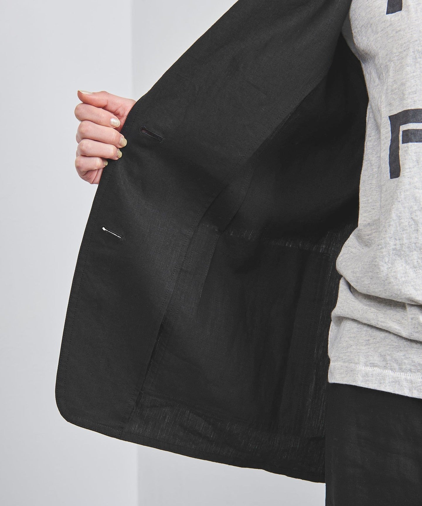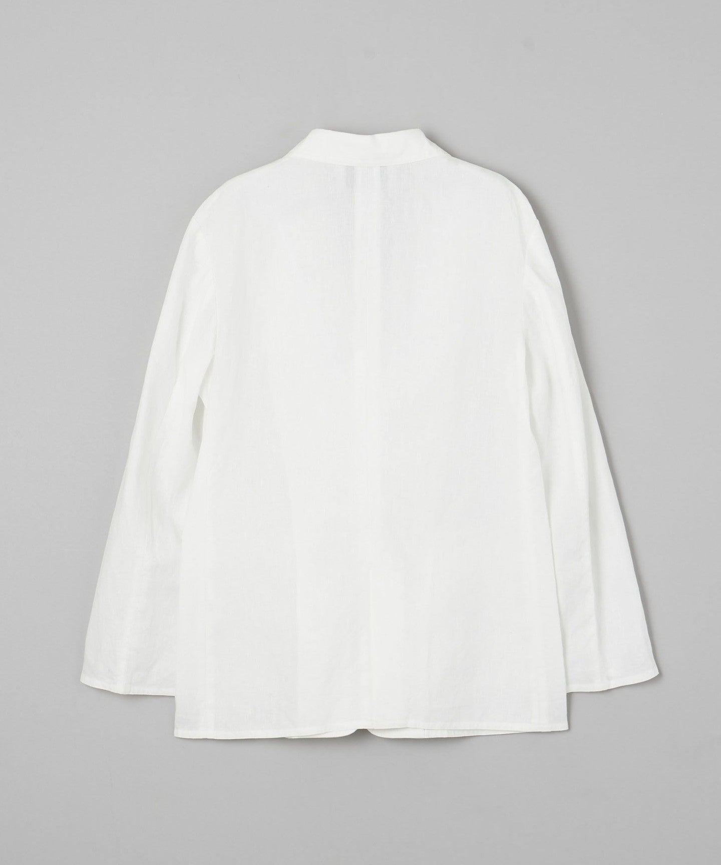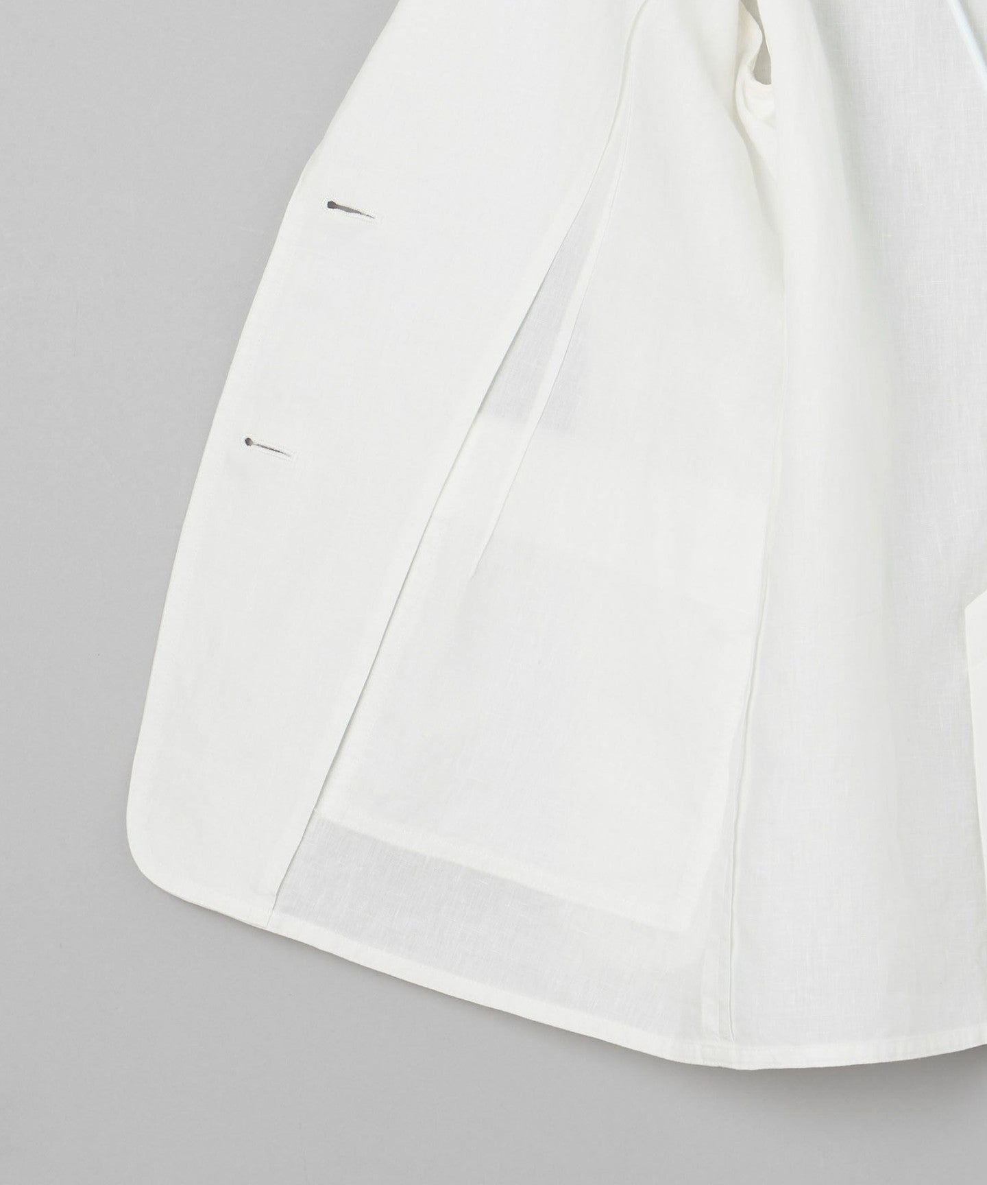 A linen jacket that can be worn in a relaxed, adult style thanks to its single-piece construction.
