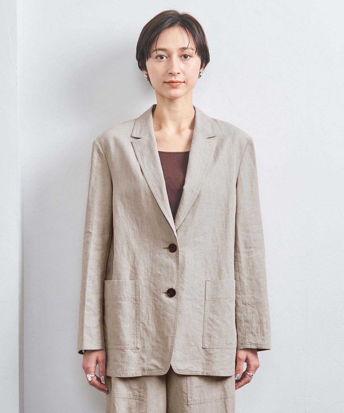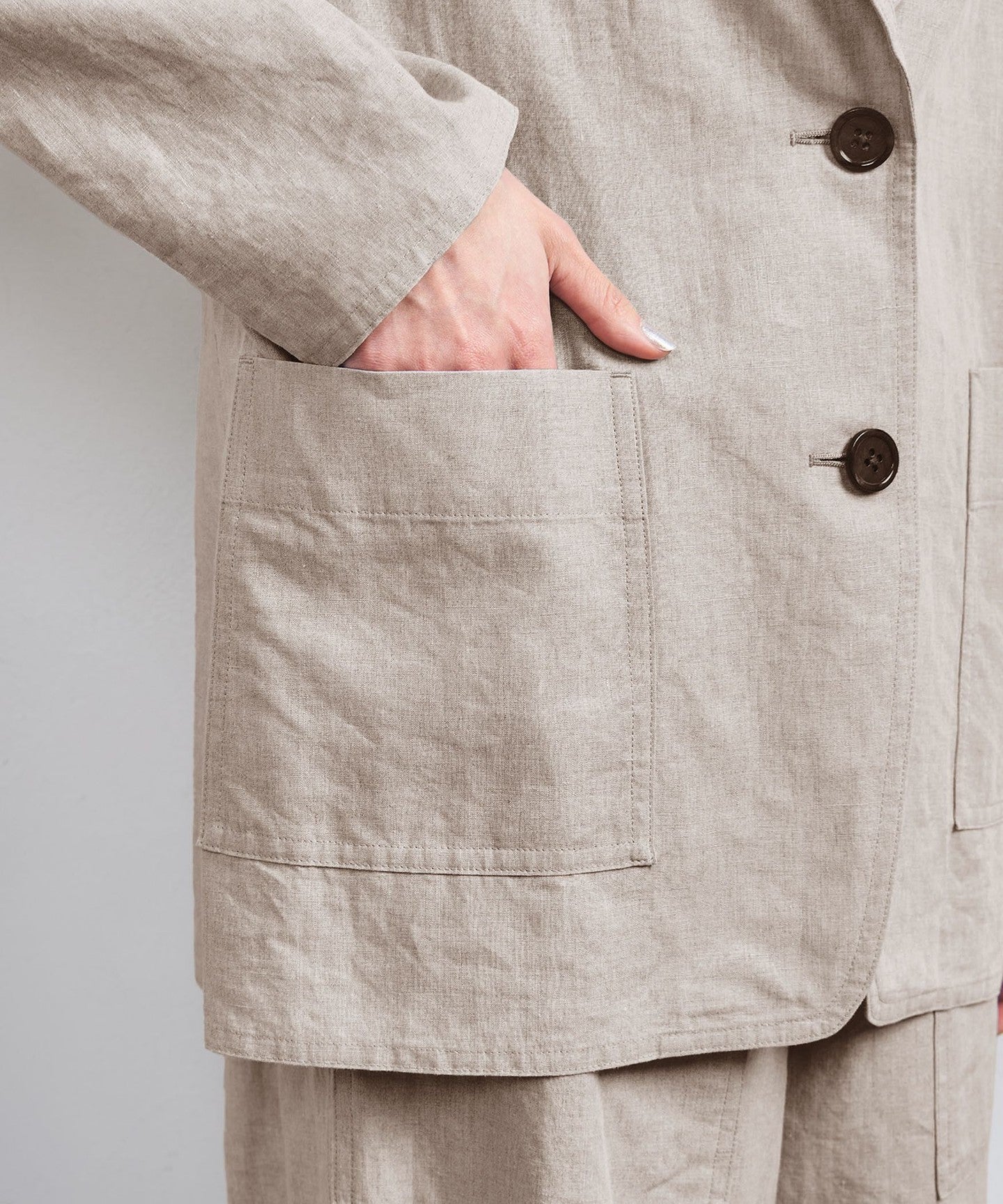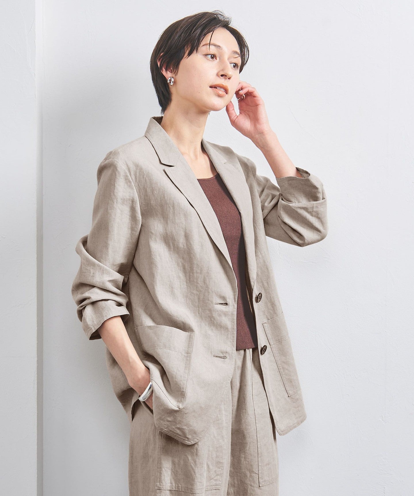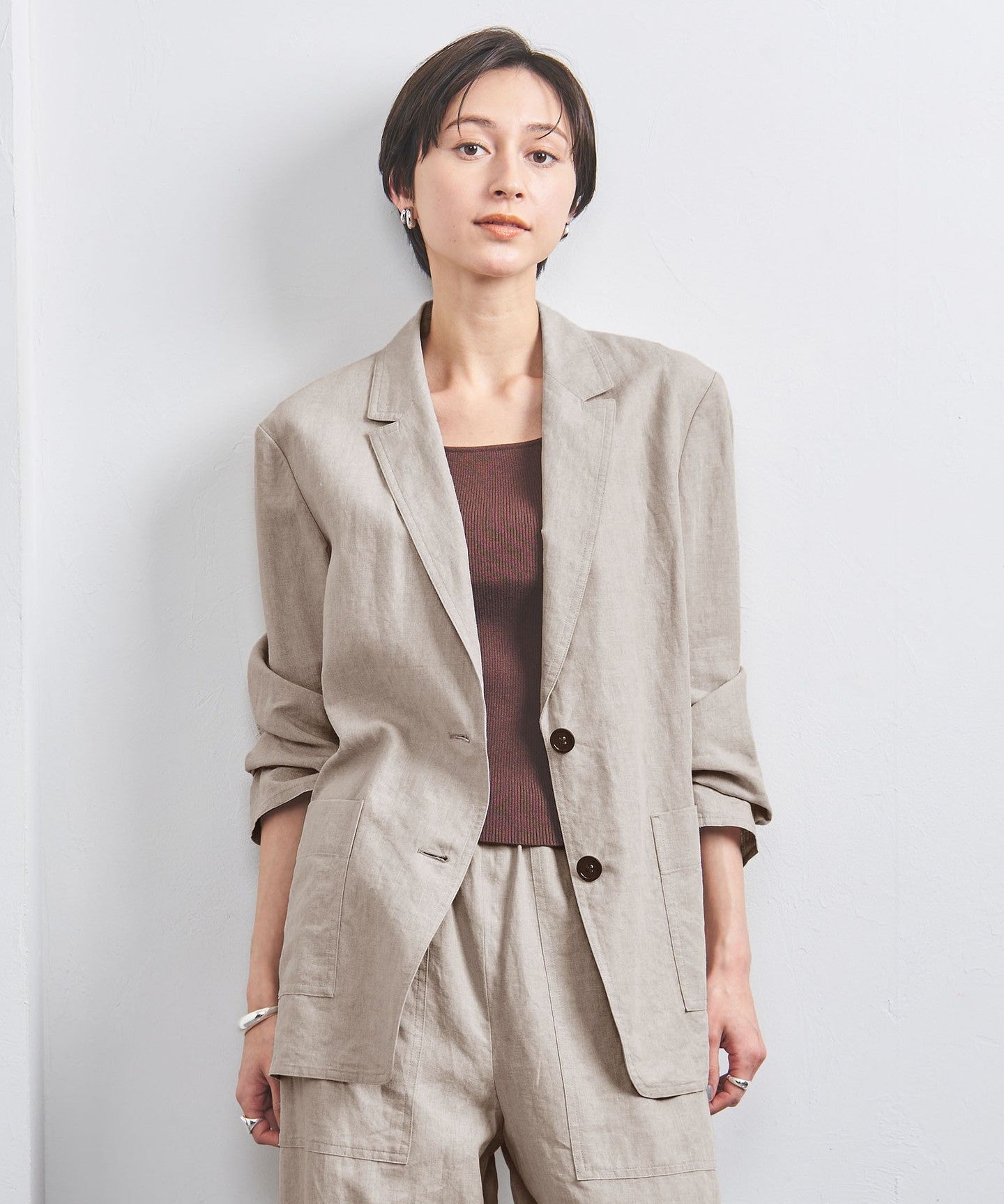 A linen jacket that can be worn in a relaxed, adult style thanks to its single-piece construction.