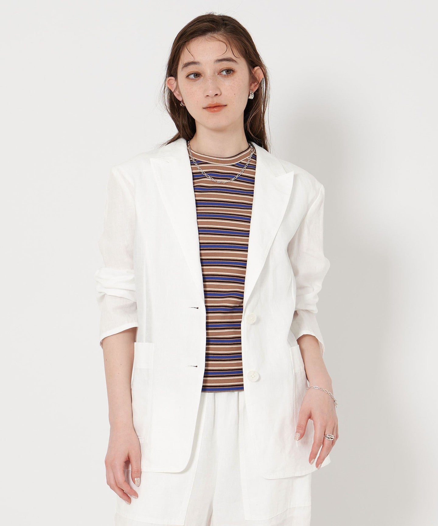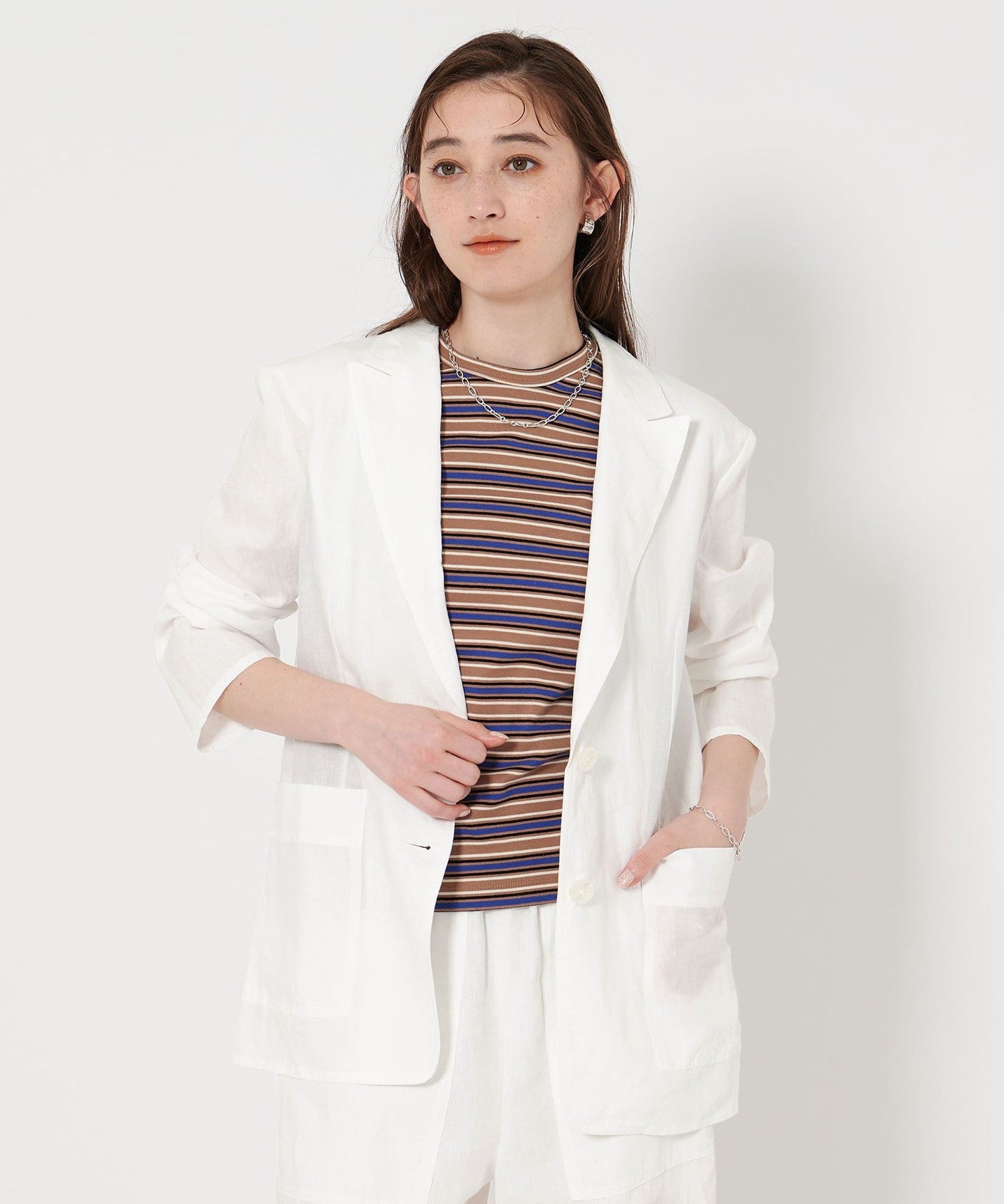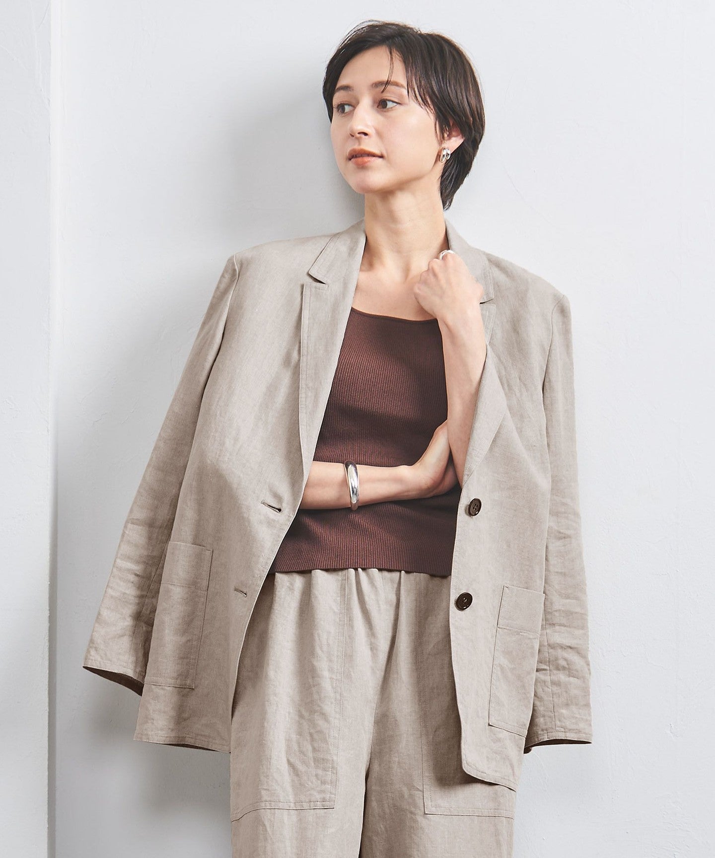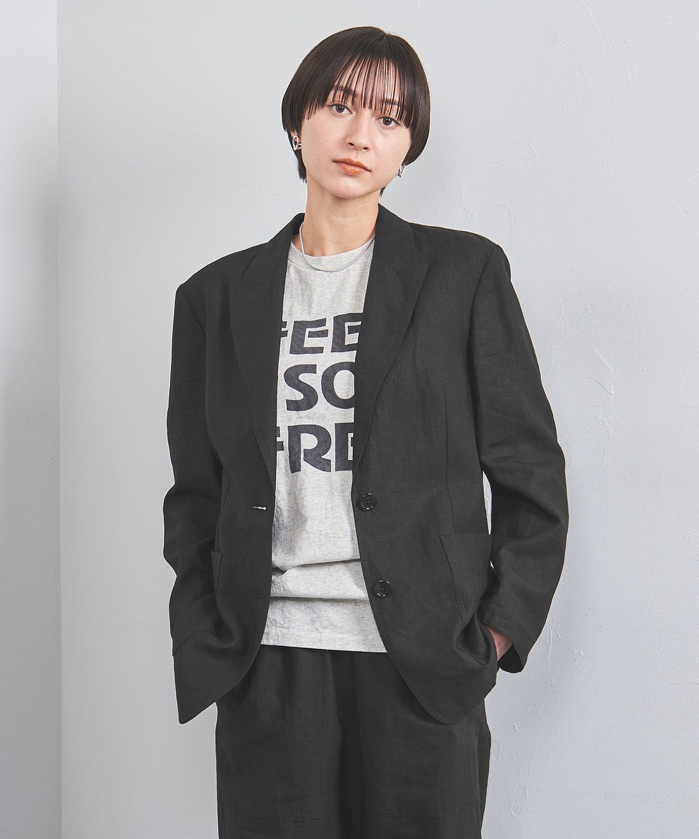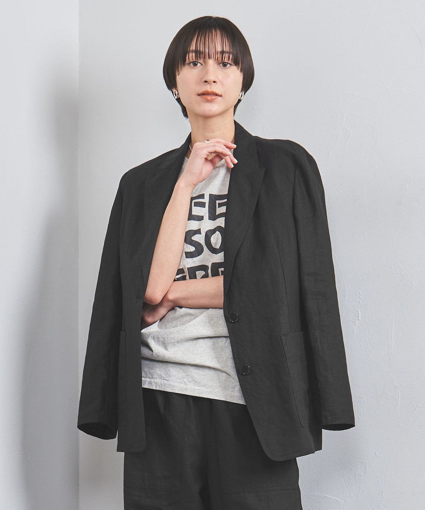 A linen jacket that can be worn in a relaxed, adult style thanks to its single-piece construction.