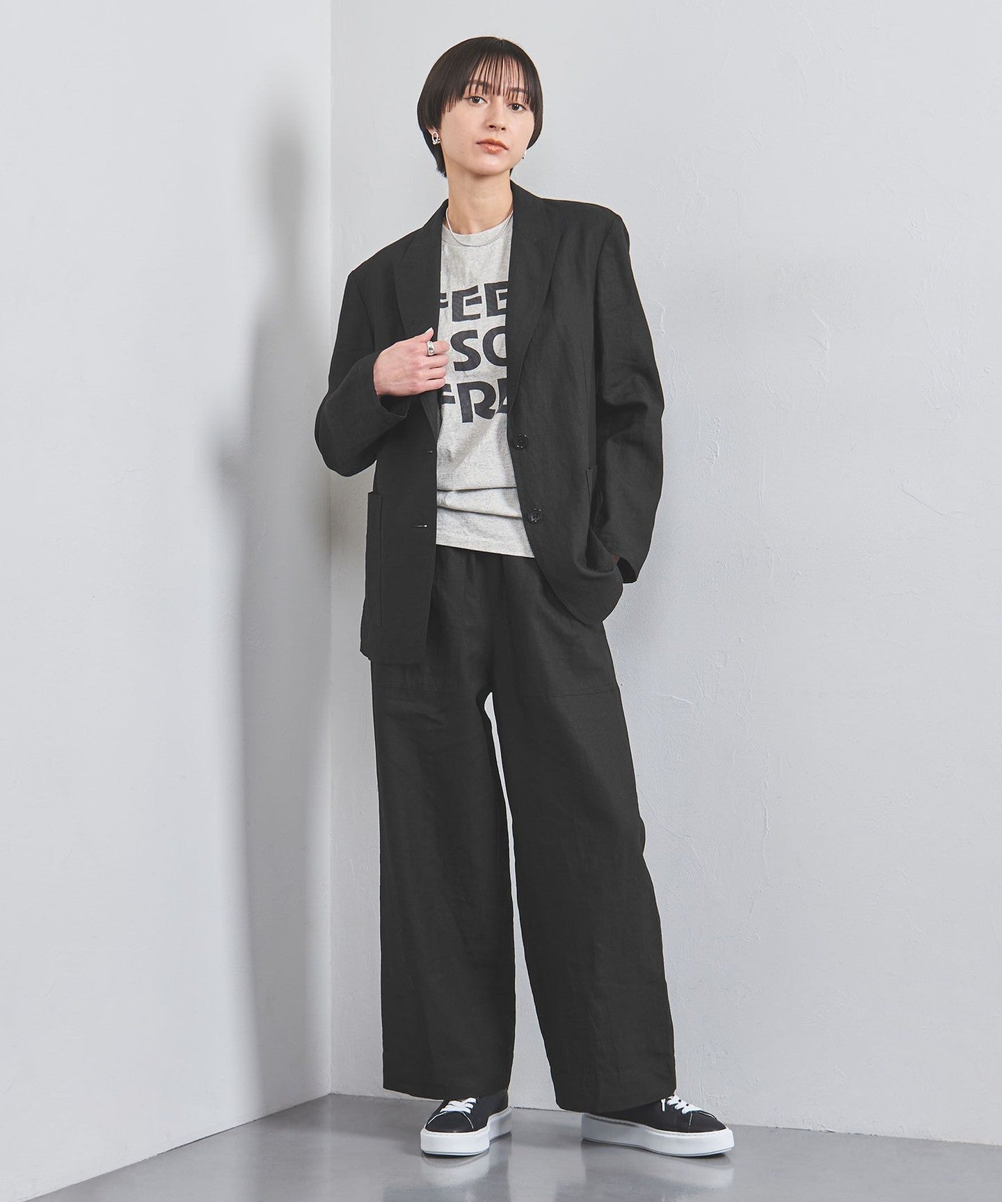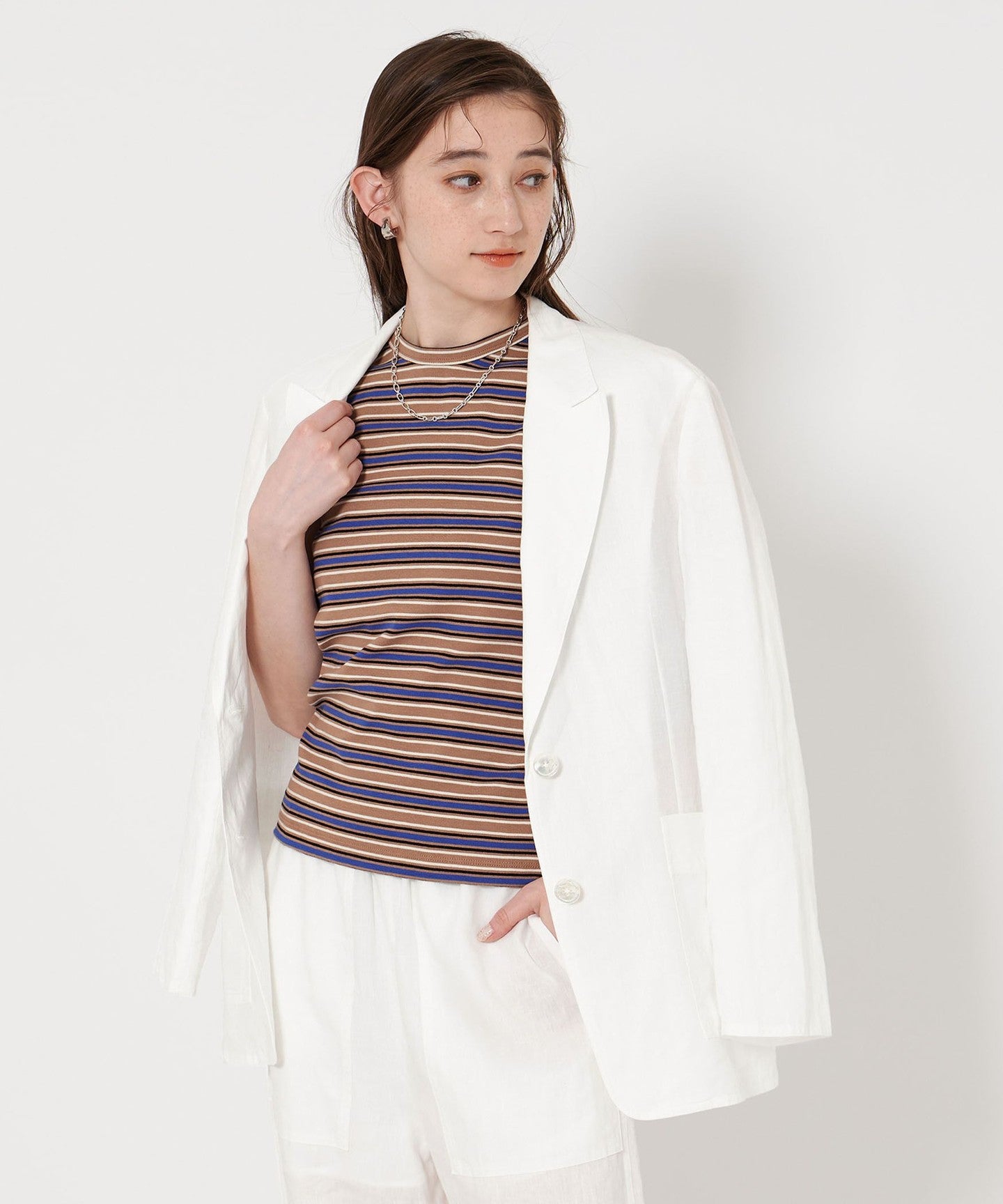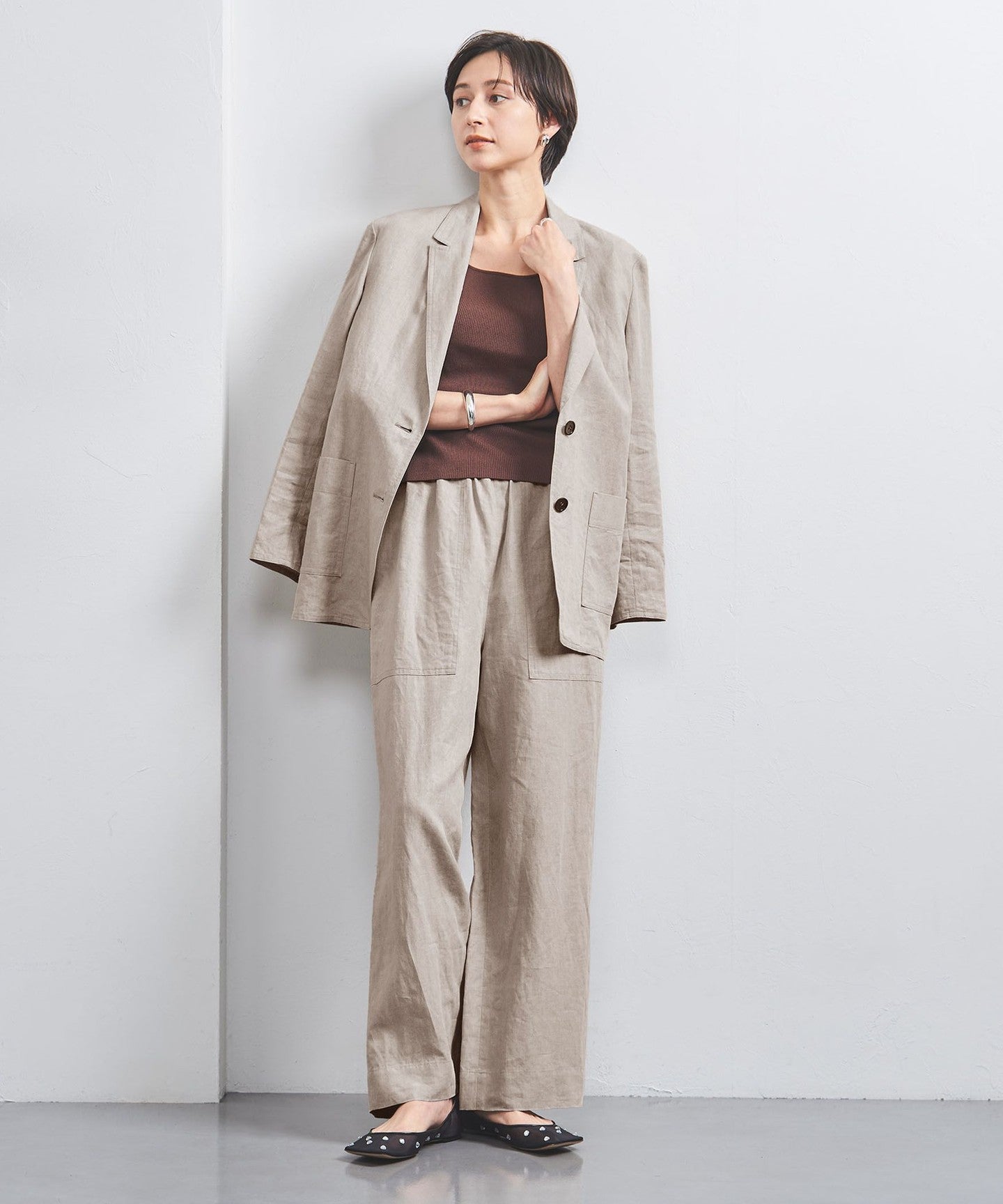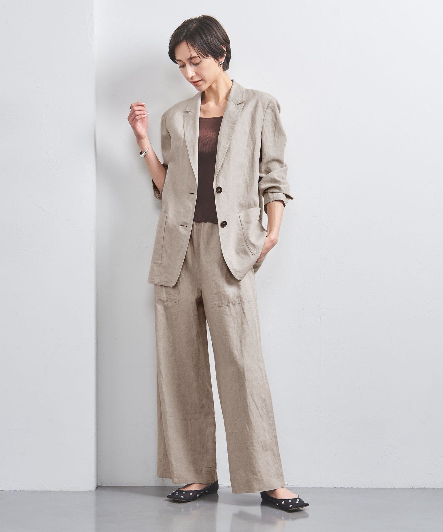 A linen jacket that can be worn in a relaxed, adult style thanks to its single-piece construction.