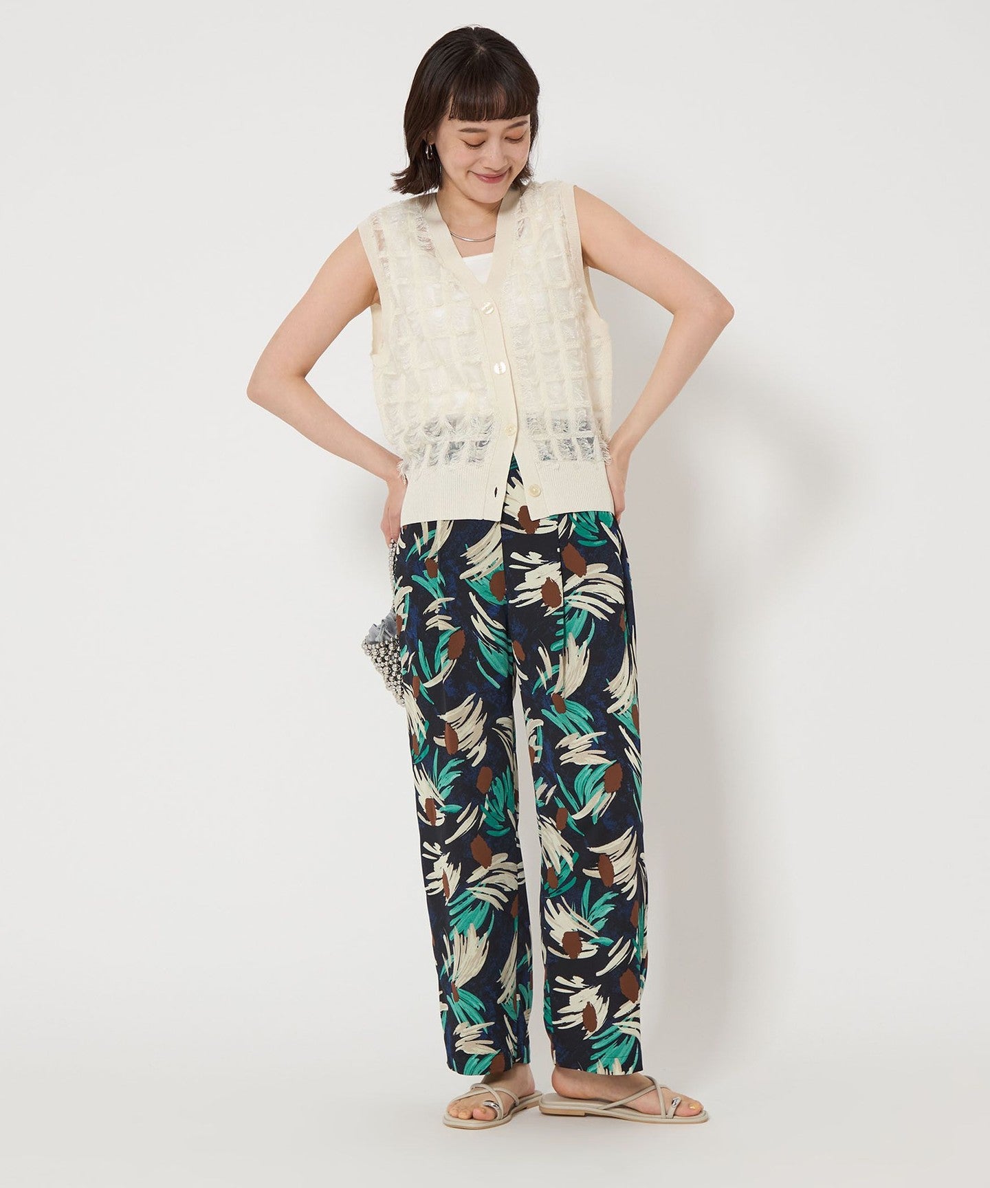 You can enjoy layering it with camisoles and T-shirts in hot weather, and with long-sleeved tops in autumn.