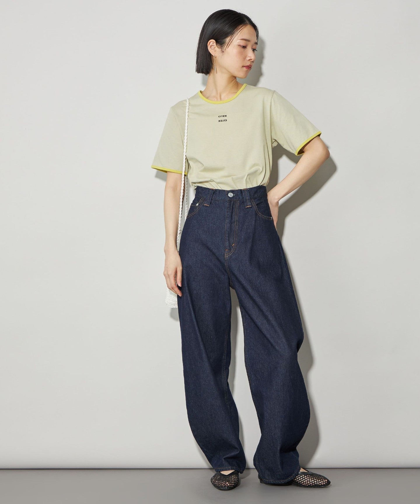 A trim T-shirt with an eye-catching original narrow border that stands out on its own.