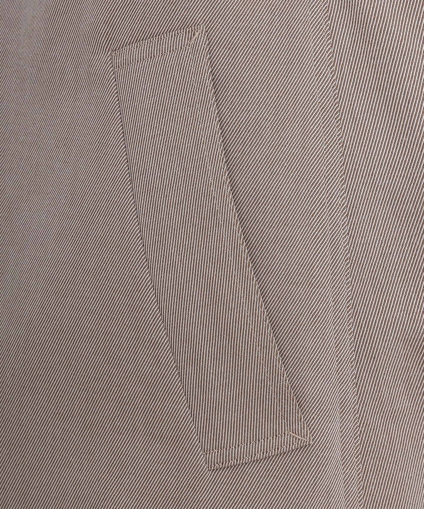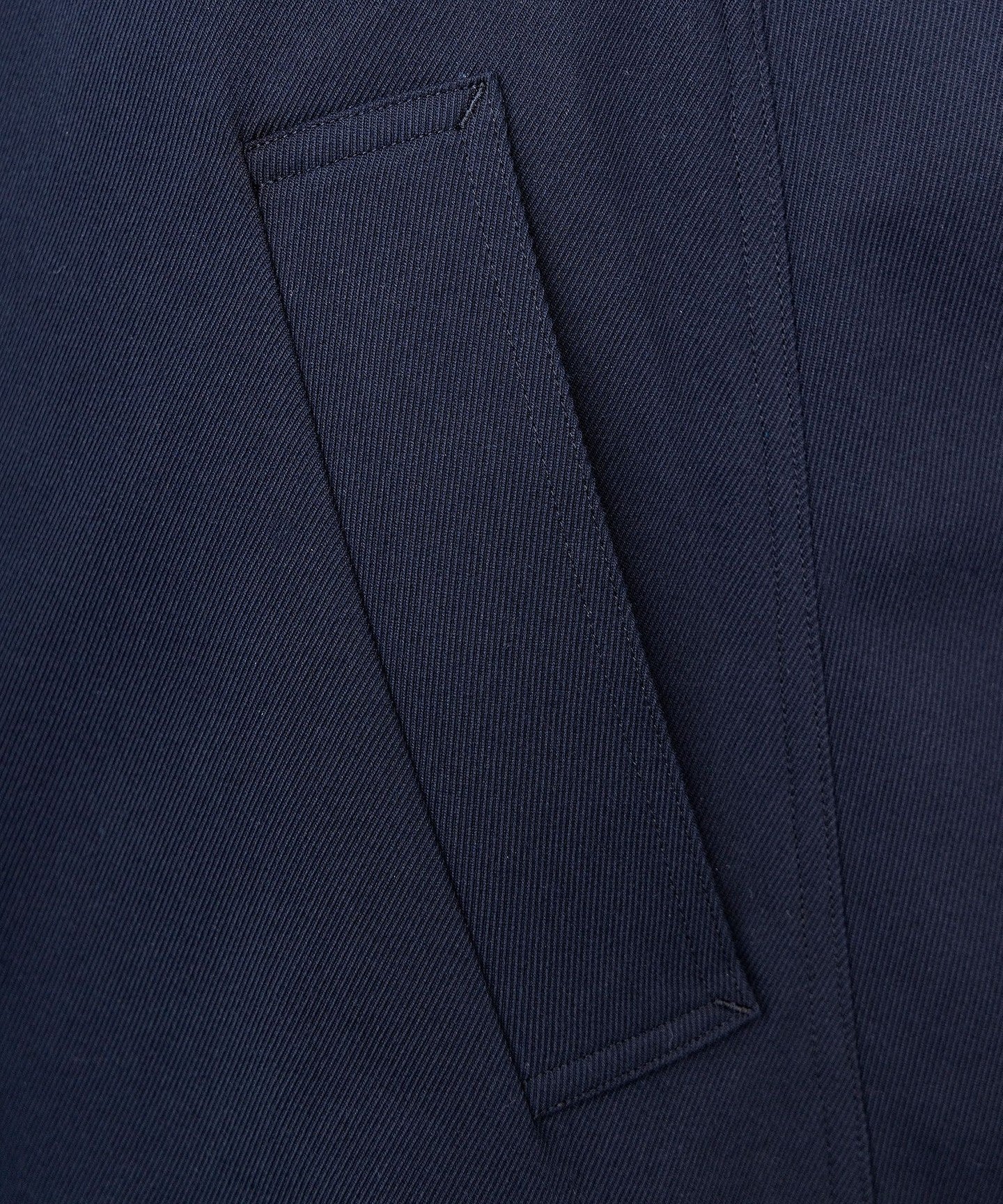 Made from yarn-dyed, moderately textured twill material.
