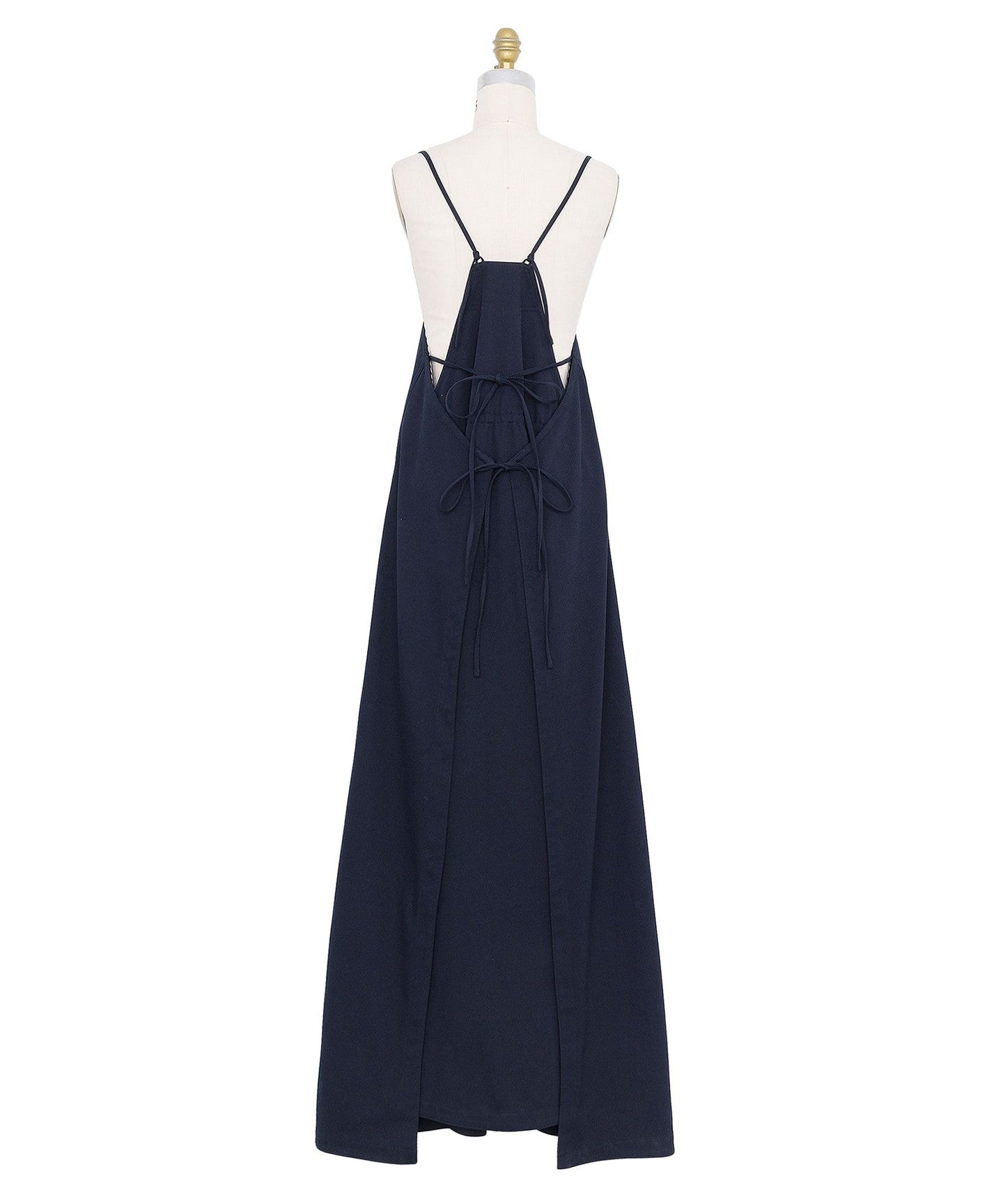 The back design is tied with a ribbon and finished in a wrap style, adding an accent to the back view.