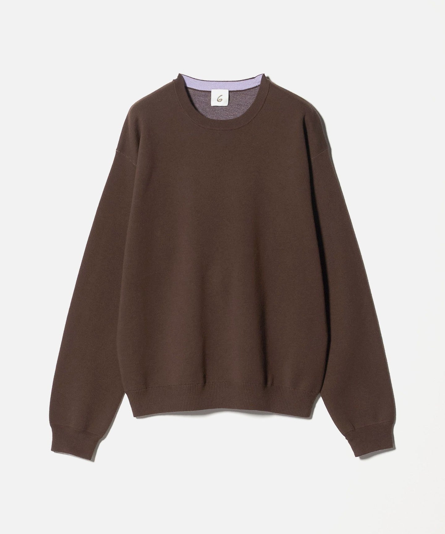 <6(ROKU)>コットンウール ミラノリブ クルーネック プルオーバーニット