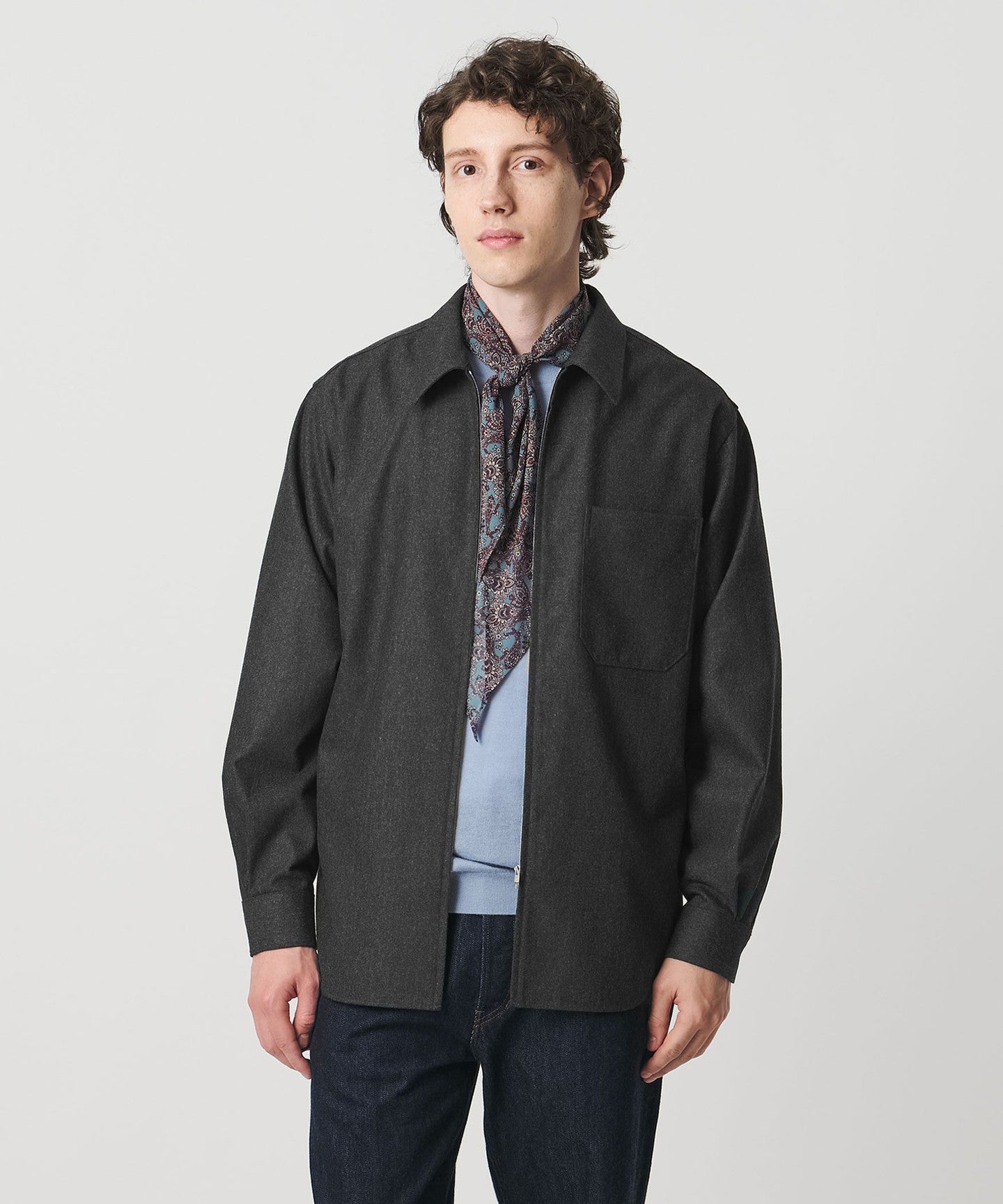 Light melton zip-up overshirt