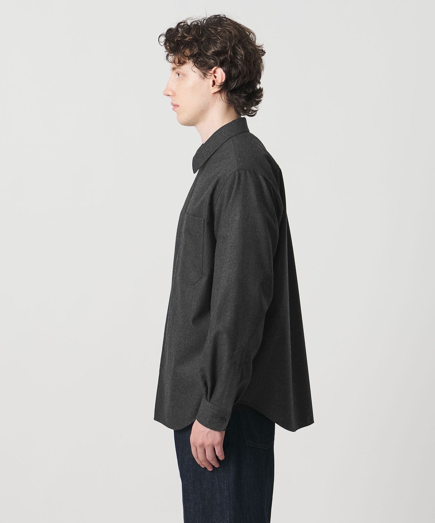 A light melton shirt that stands out for its high-quality material and structured form.