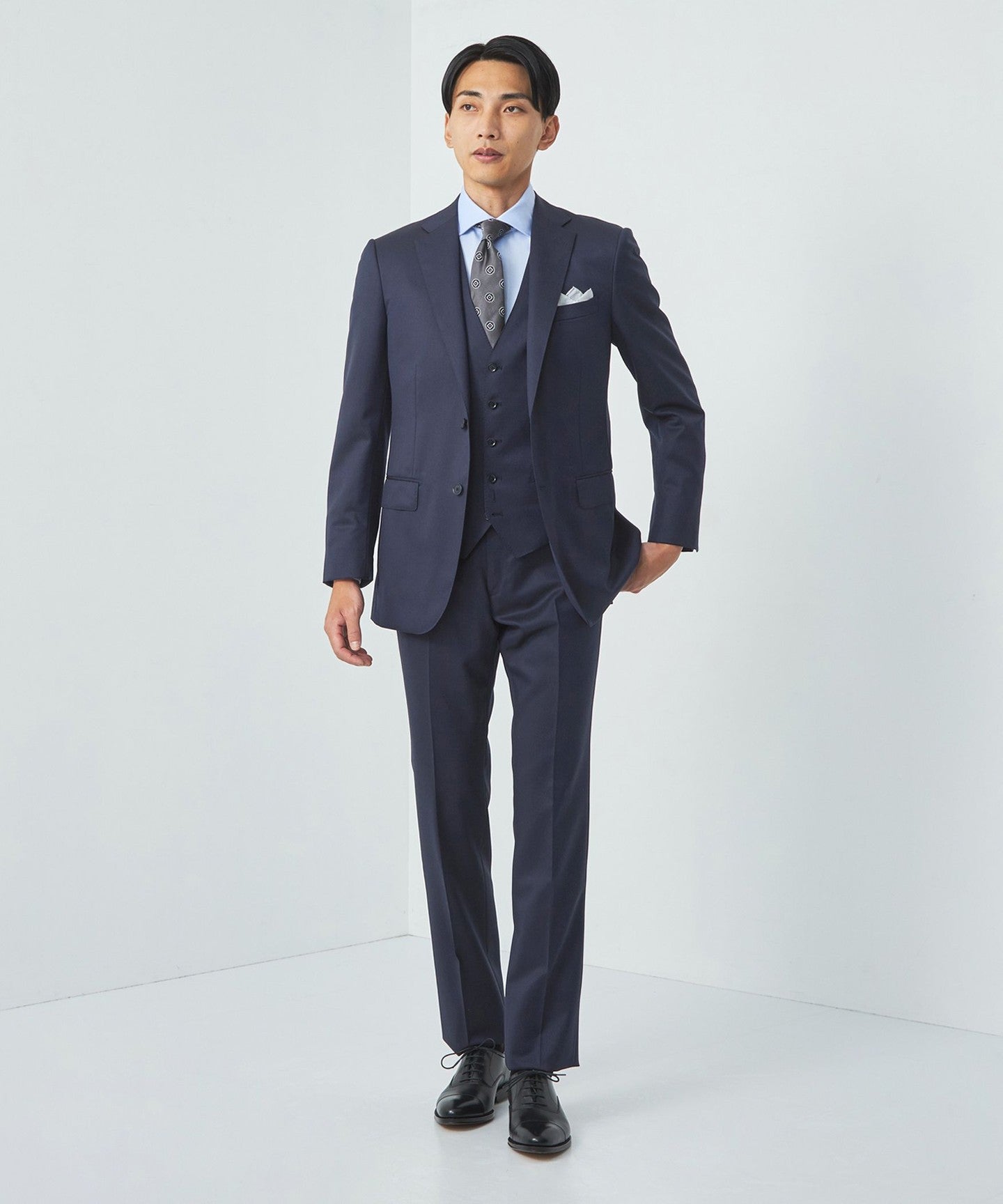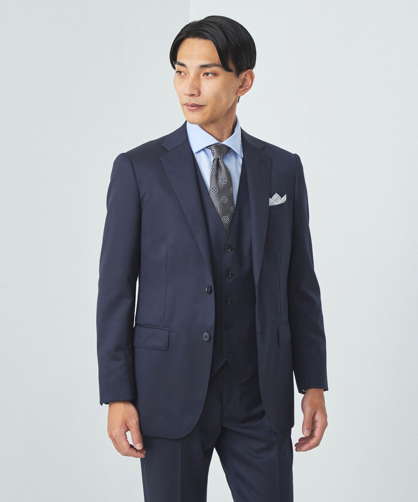 This is a versatile suit that can be used in a wide range of situations, from business to formal, and can be enjoyed with a variety of outfits.