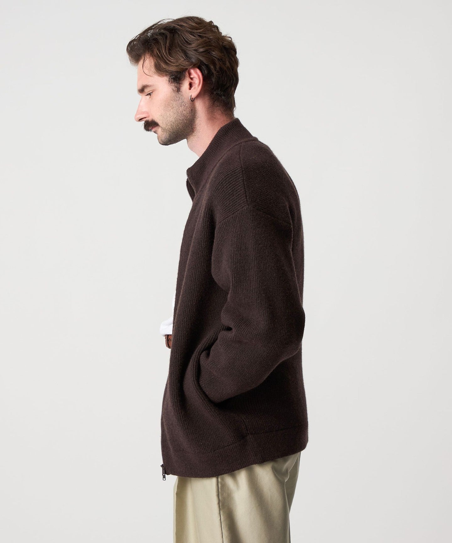 ミニマルなデザインにフラットな編地でモダンに仕上げたドライバーズニット。