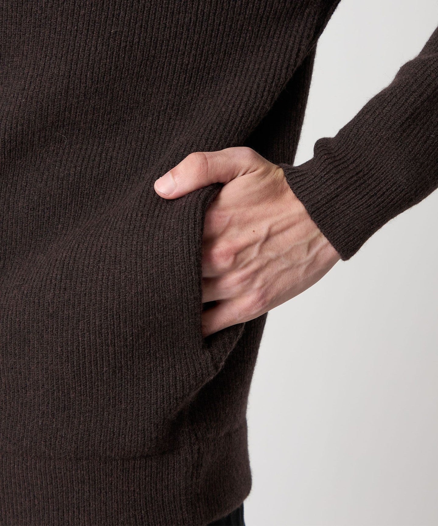 上質なハミルトンラムズウール原料を用いて、ボリュームを抑えたミドルゲージの両畔編みで編み立てています。