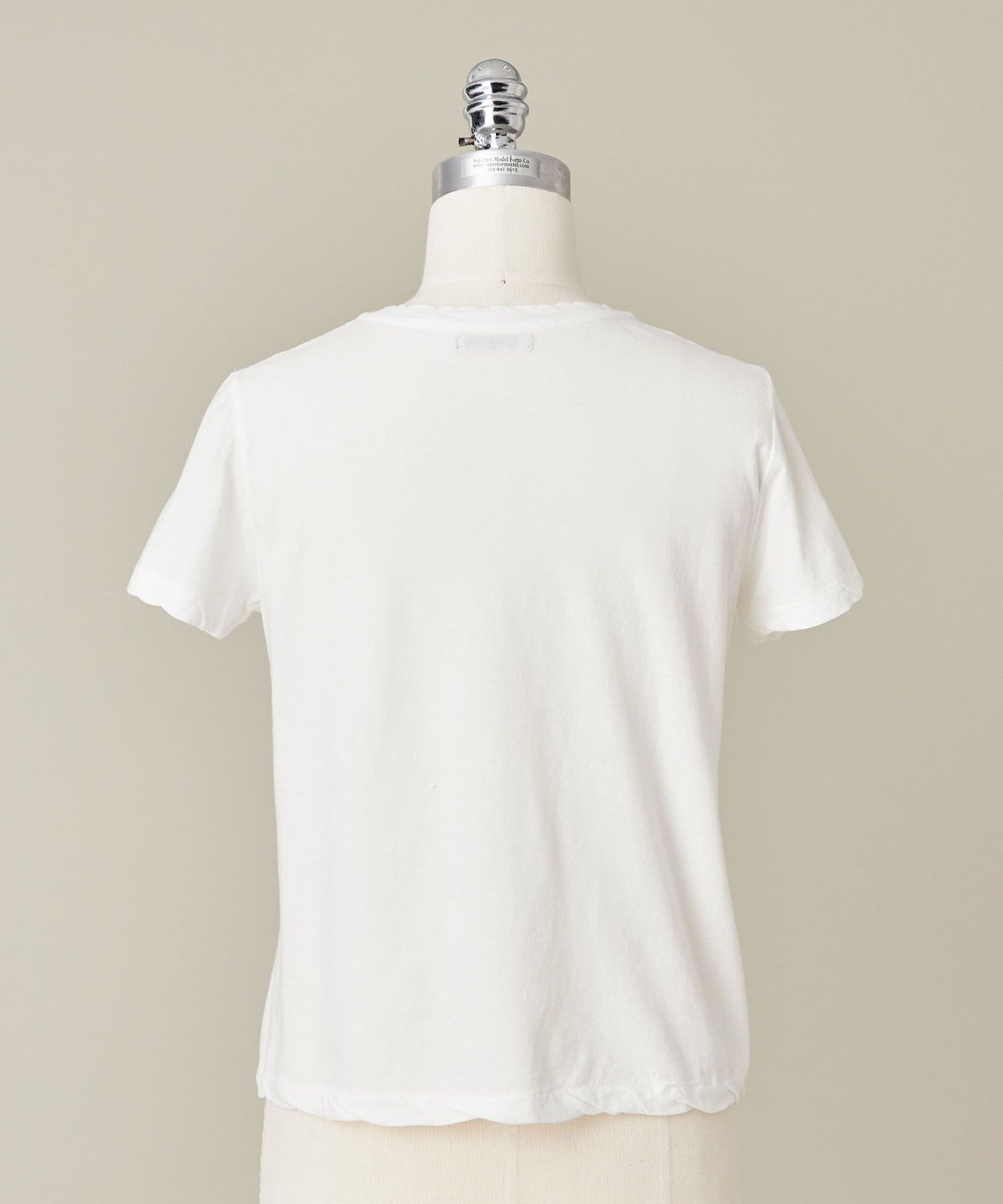 A special order crew neck T-shirt with the brand logo embroidered on the cuffs.