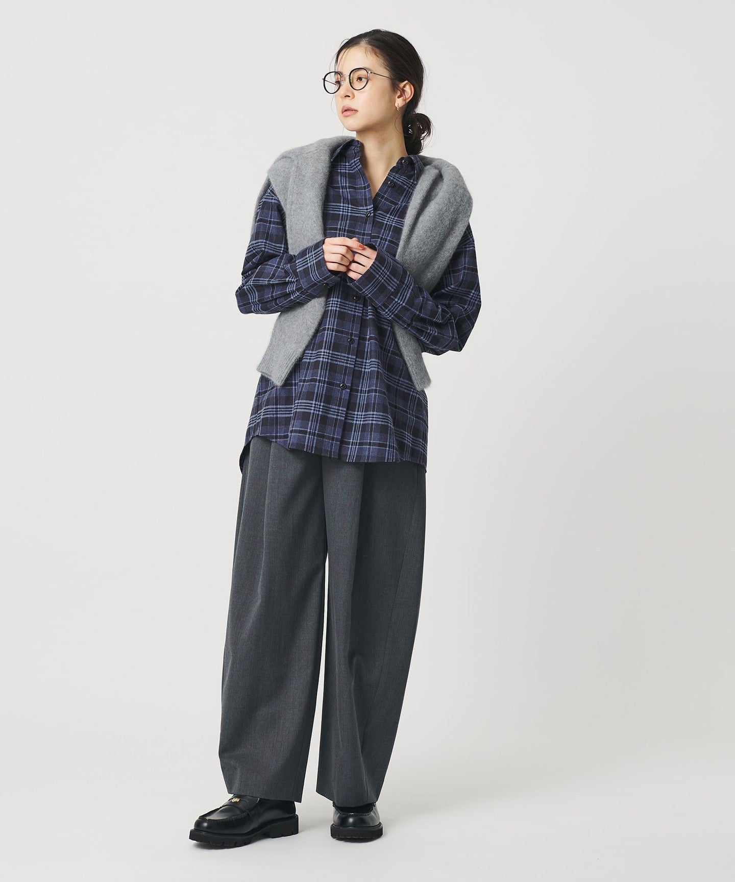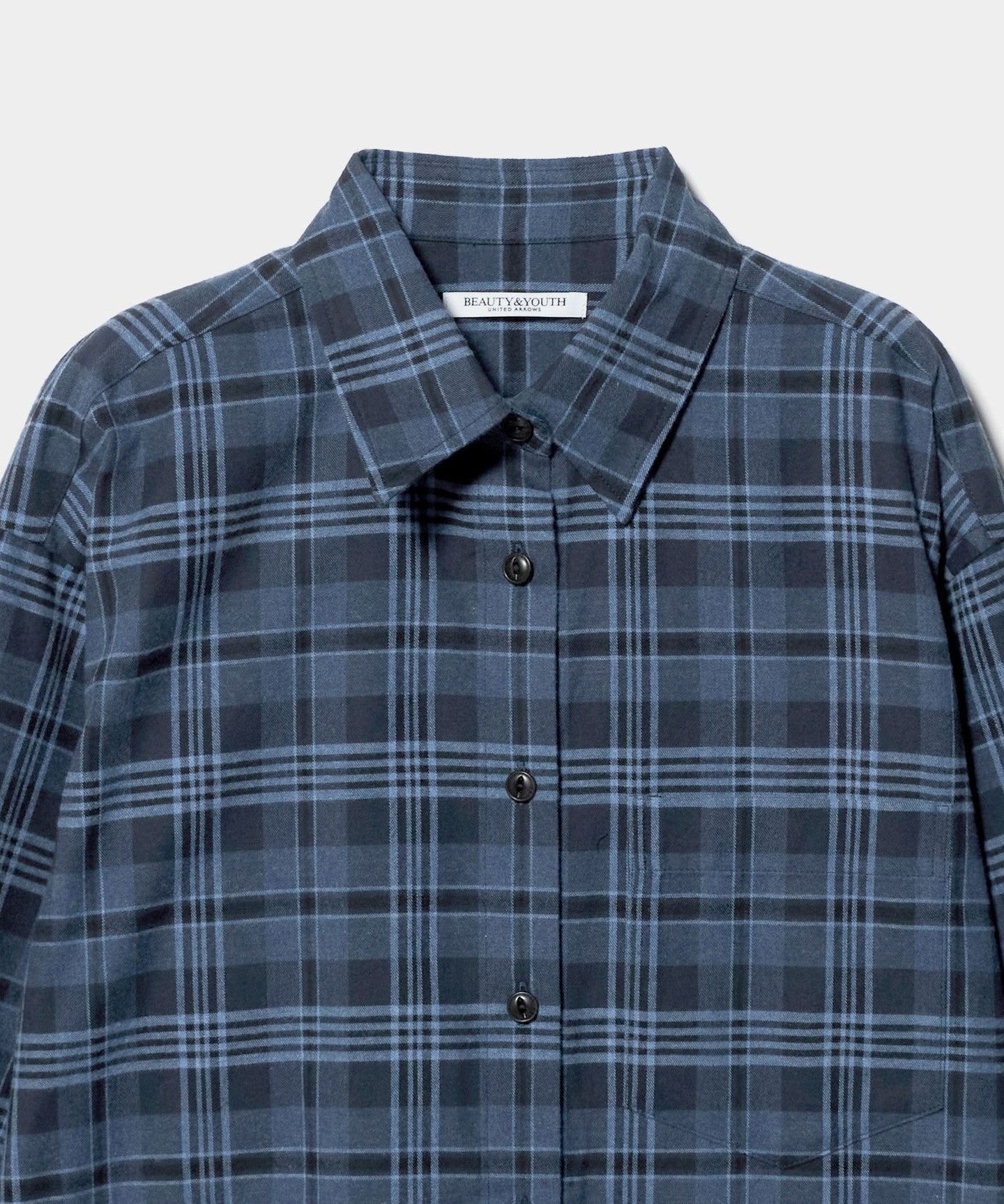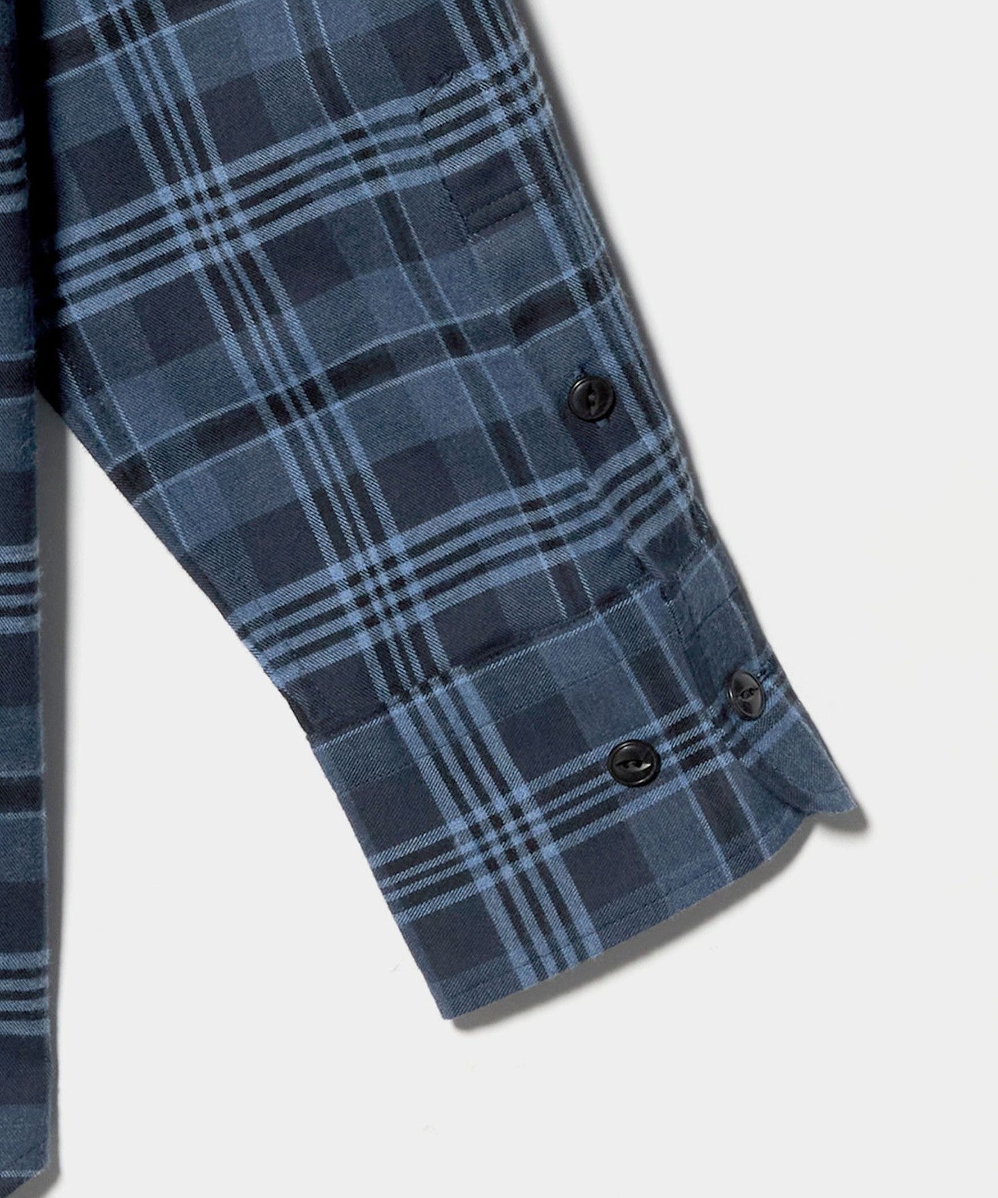 A flannel check shirt featuring an original pattern and a brushed texture.