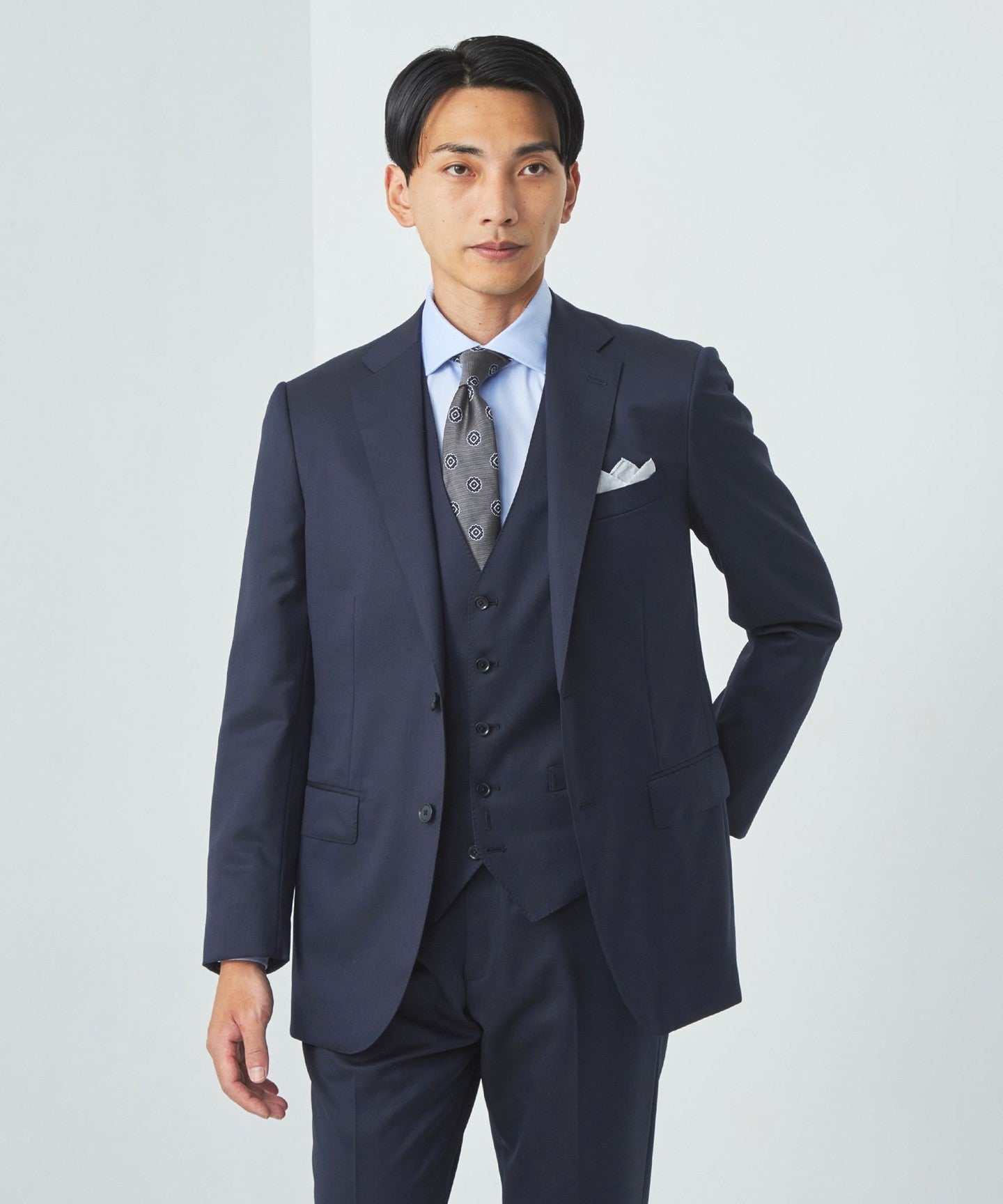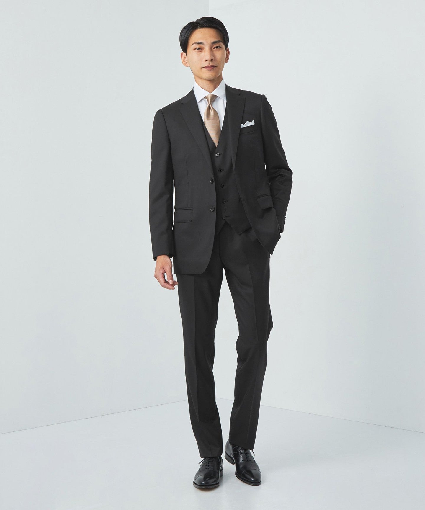 A three-piece suit paired with a set made of the same material TIE I recommend Lu.
