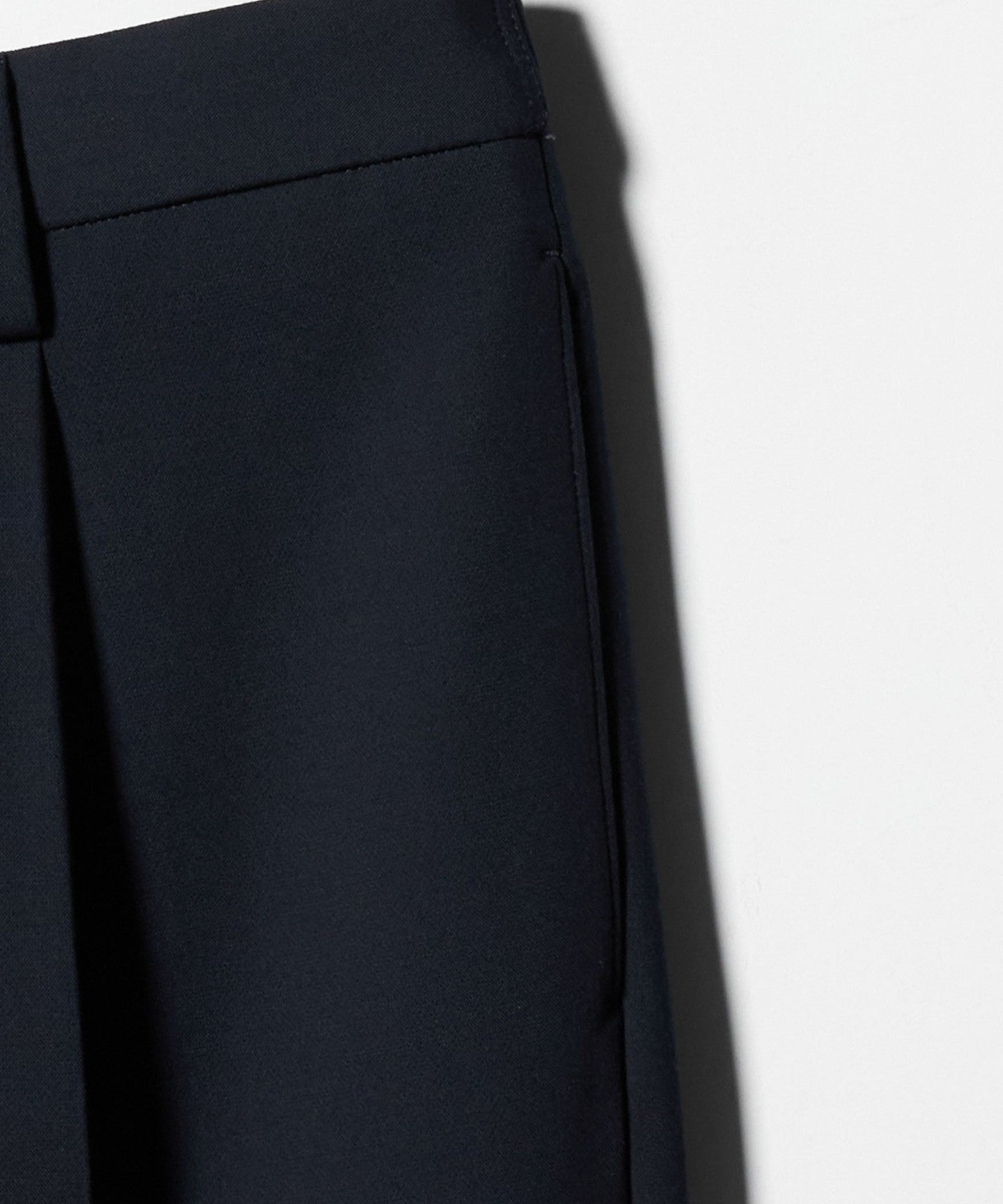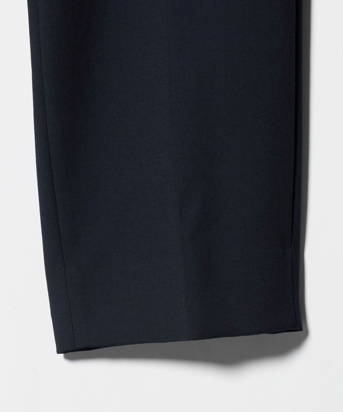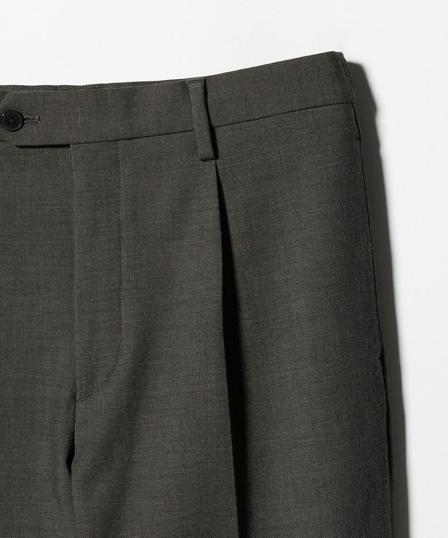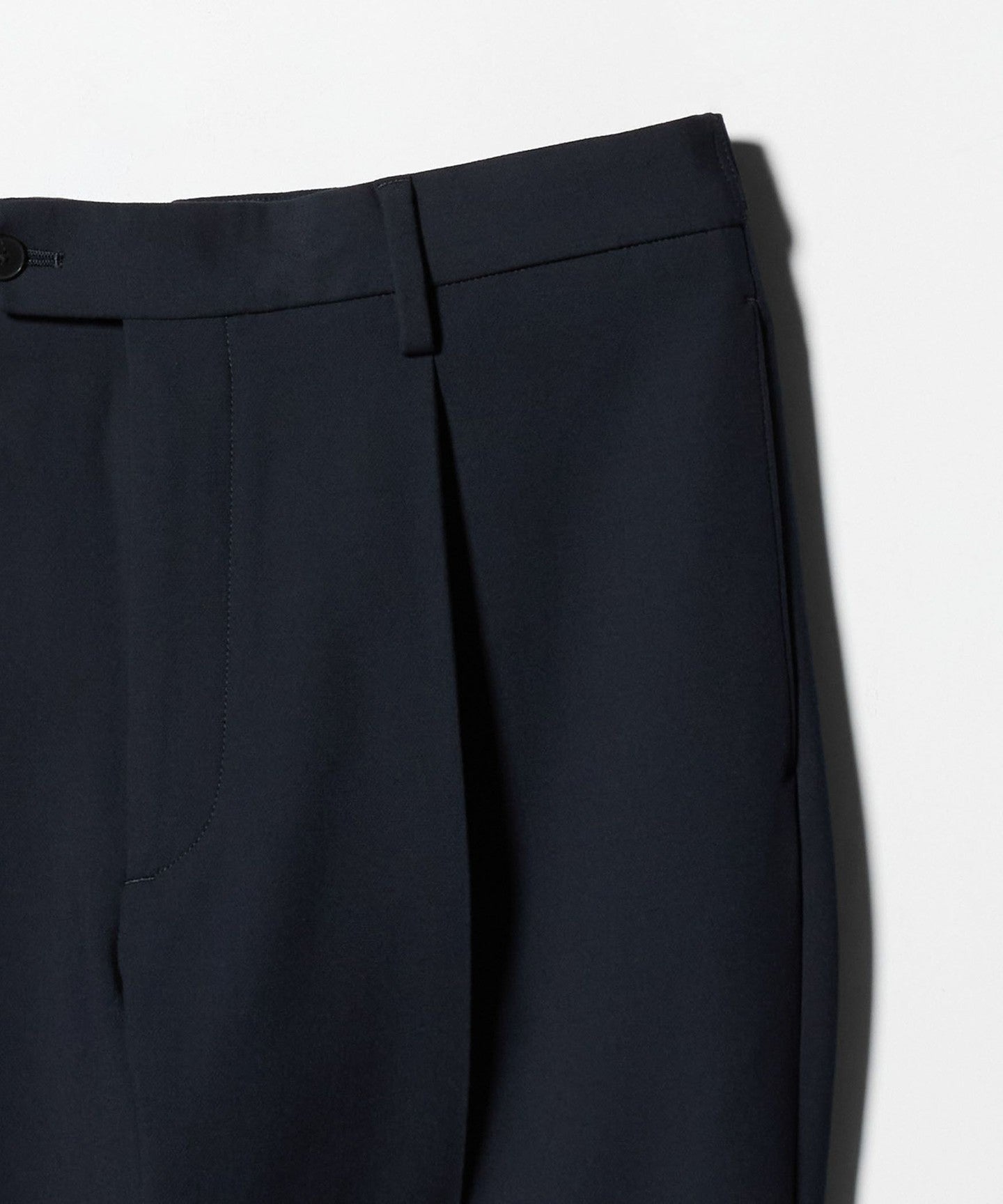 テーパードシルエットにワンクッションレングスを採用し、足元までスマートにまとまる設計。