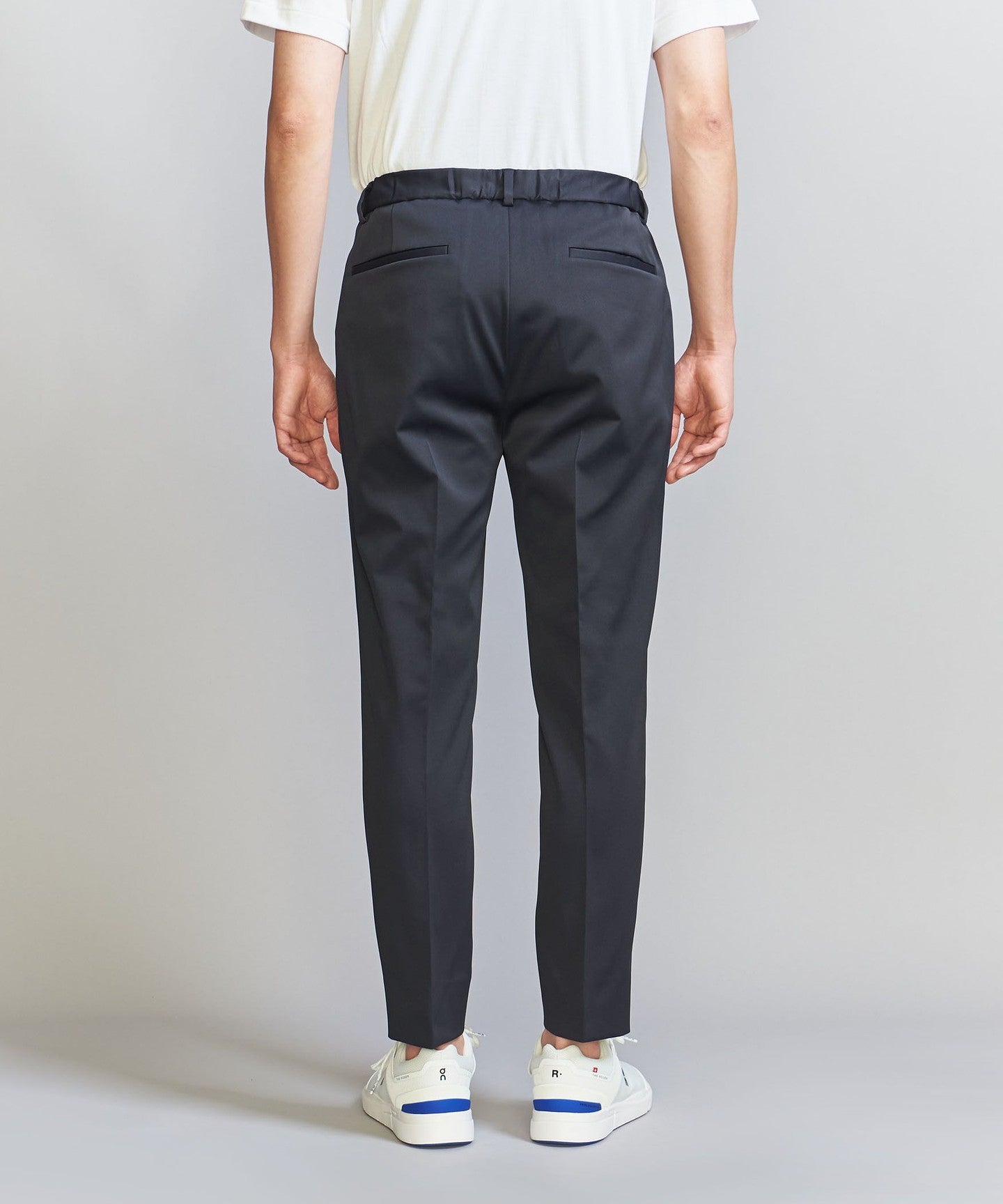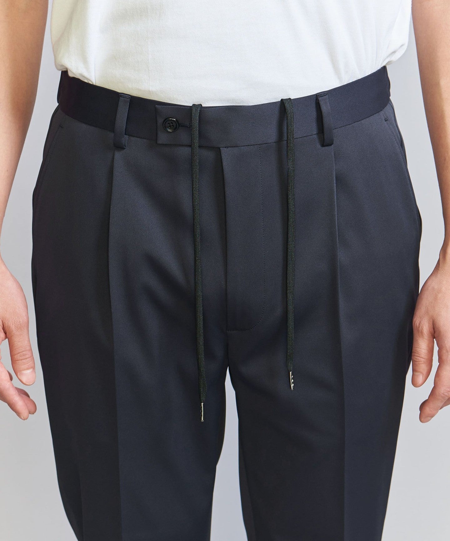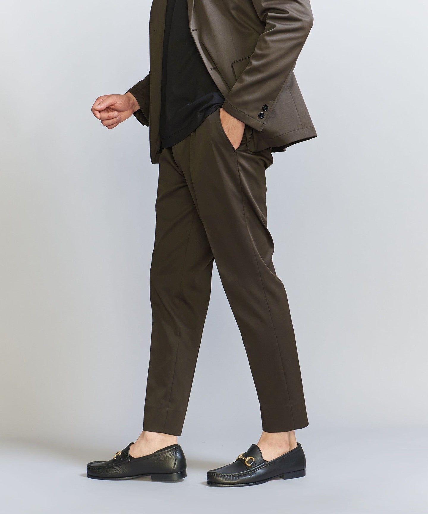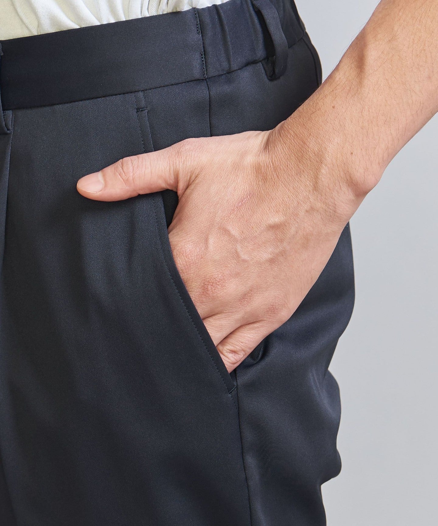 The pants have a single pleat that provides a moderate amount of room around the hips, while the slim tapered silhouette narrows towards the hem.