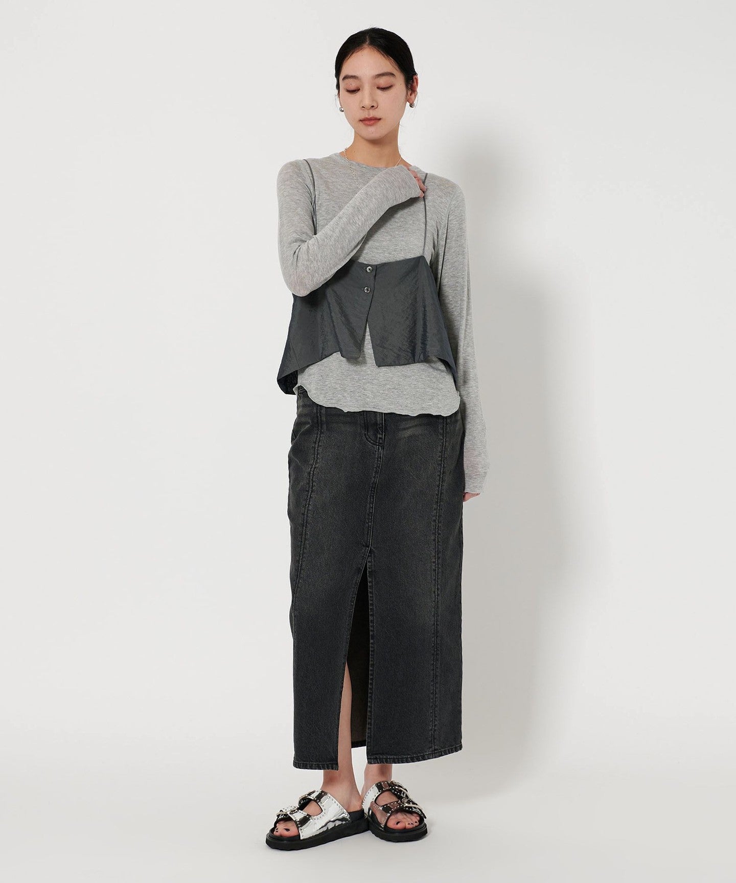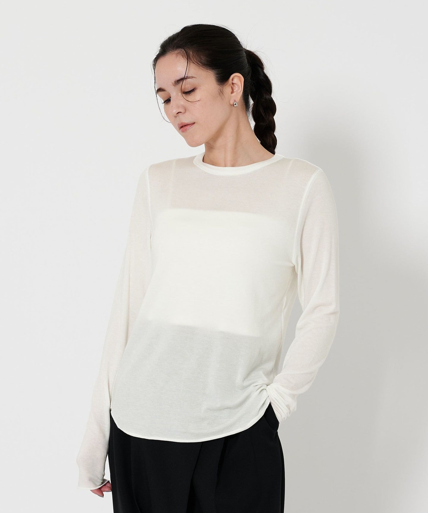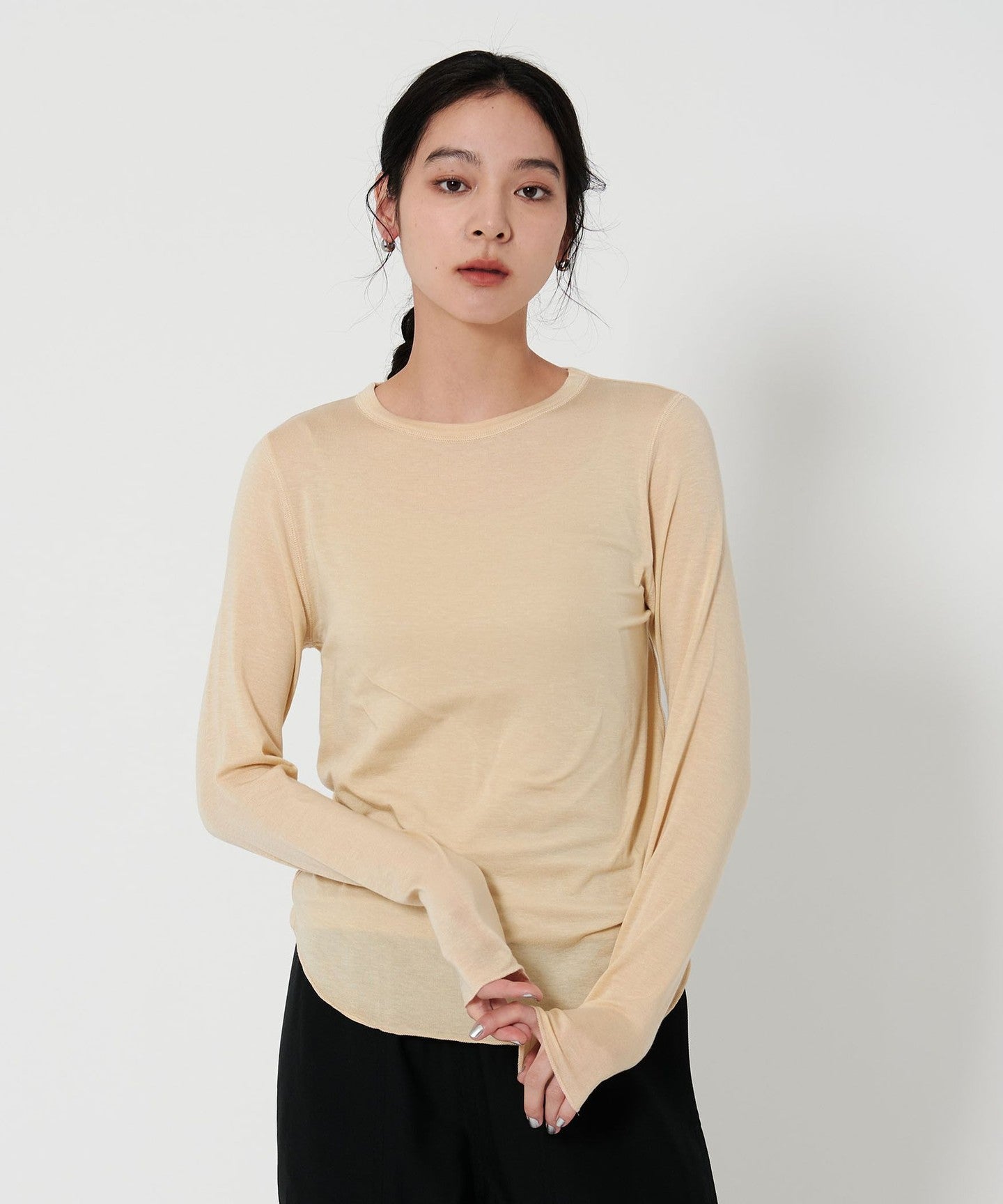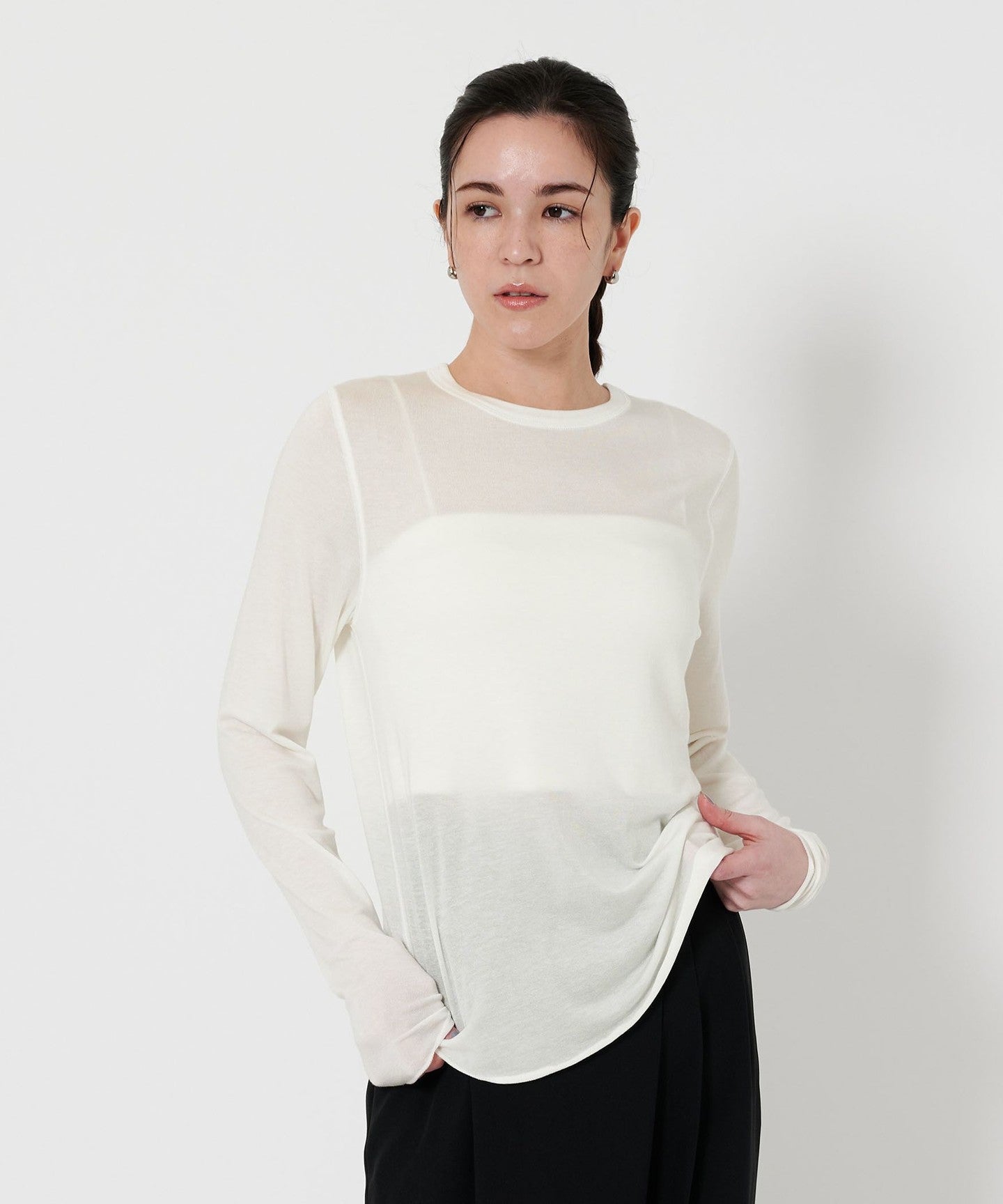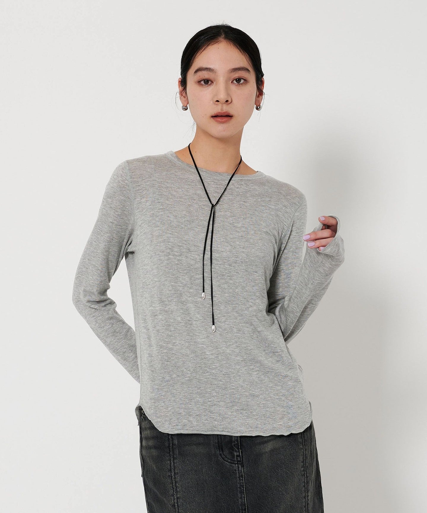 The moderate transparency and round hem give it a subtle presence even when layered.