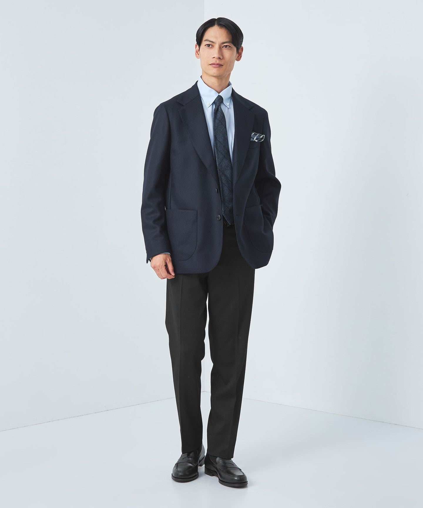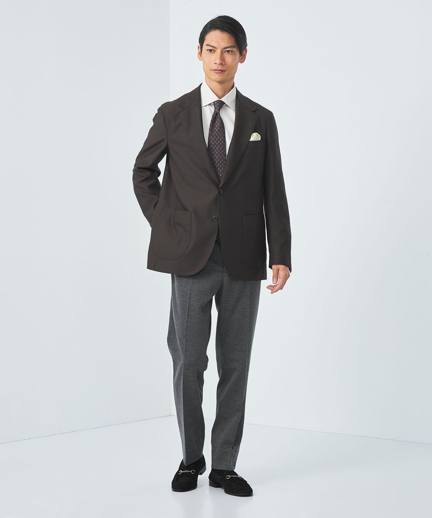 This highly versatile piece pairs well with a variety of jackets, including shiny, smooth worsted fabrics and slightly casual jackets with a textured feel.