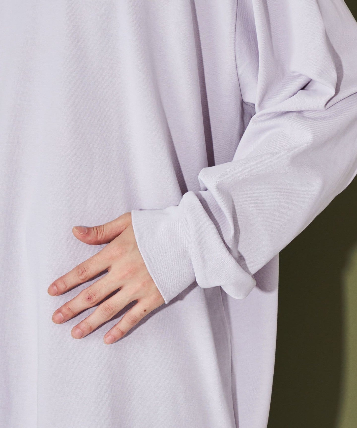Introducing a long-sleeved T-shirt with a balanced mock neck design!