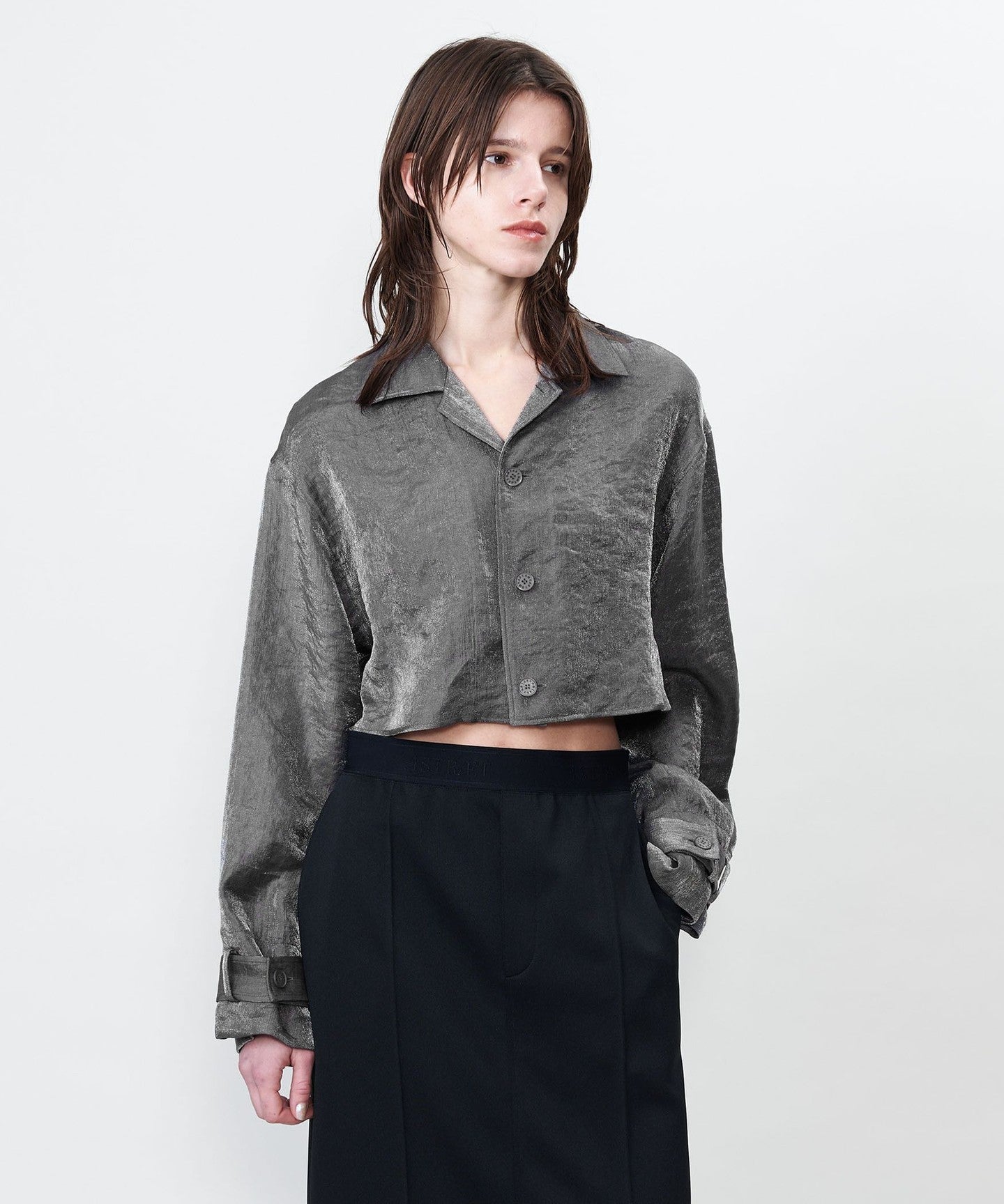 A cropped, open-collar shirt with a relaxed, mature feel.