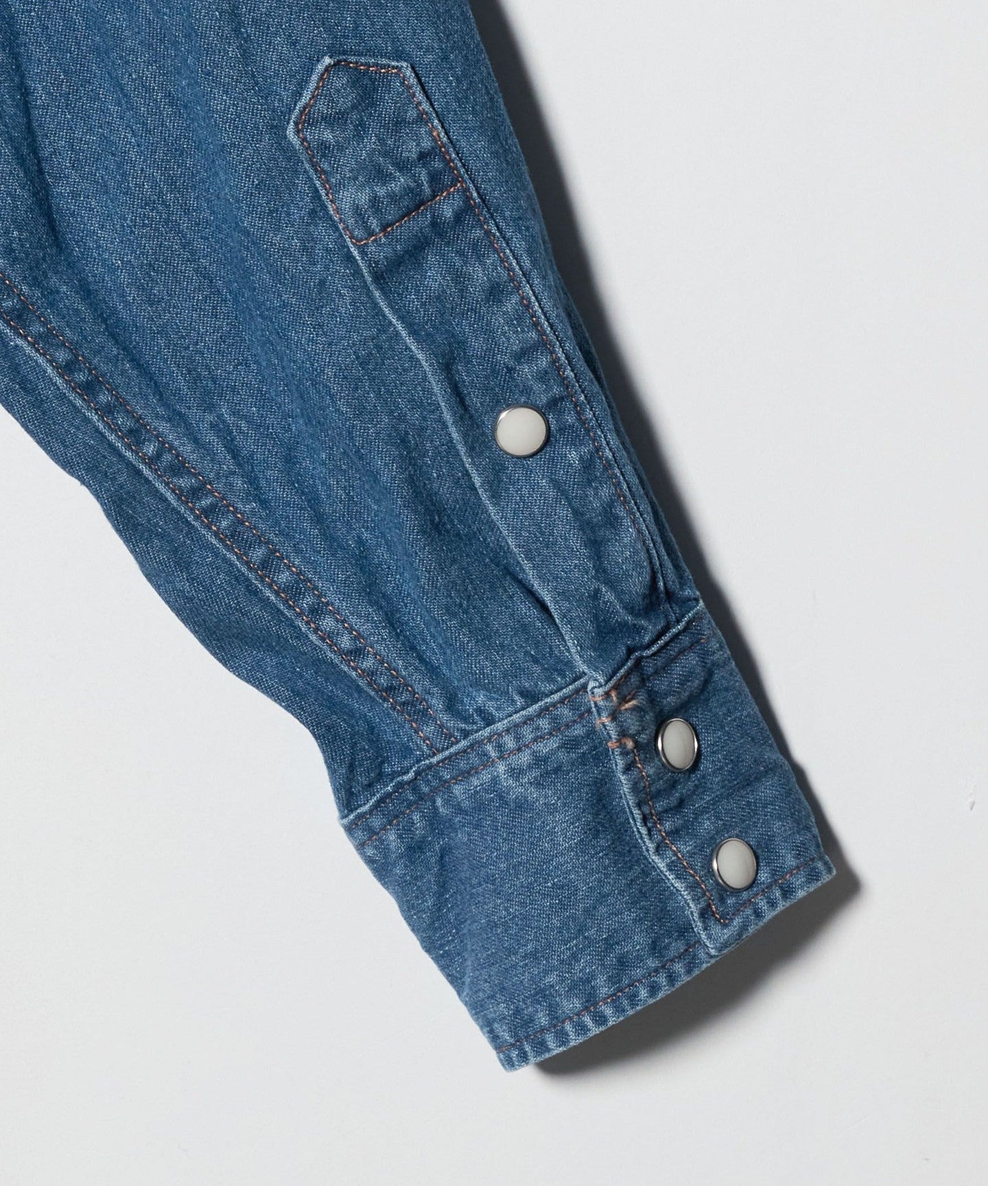 SLOW && The classic western shirt features delicate stitching that is rare in a denim background.