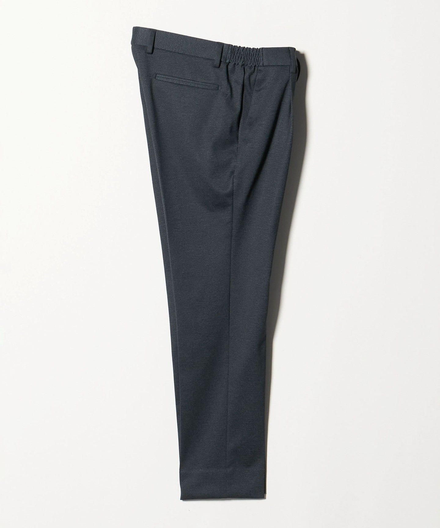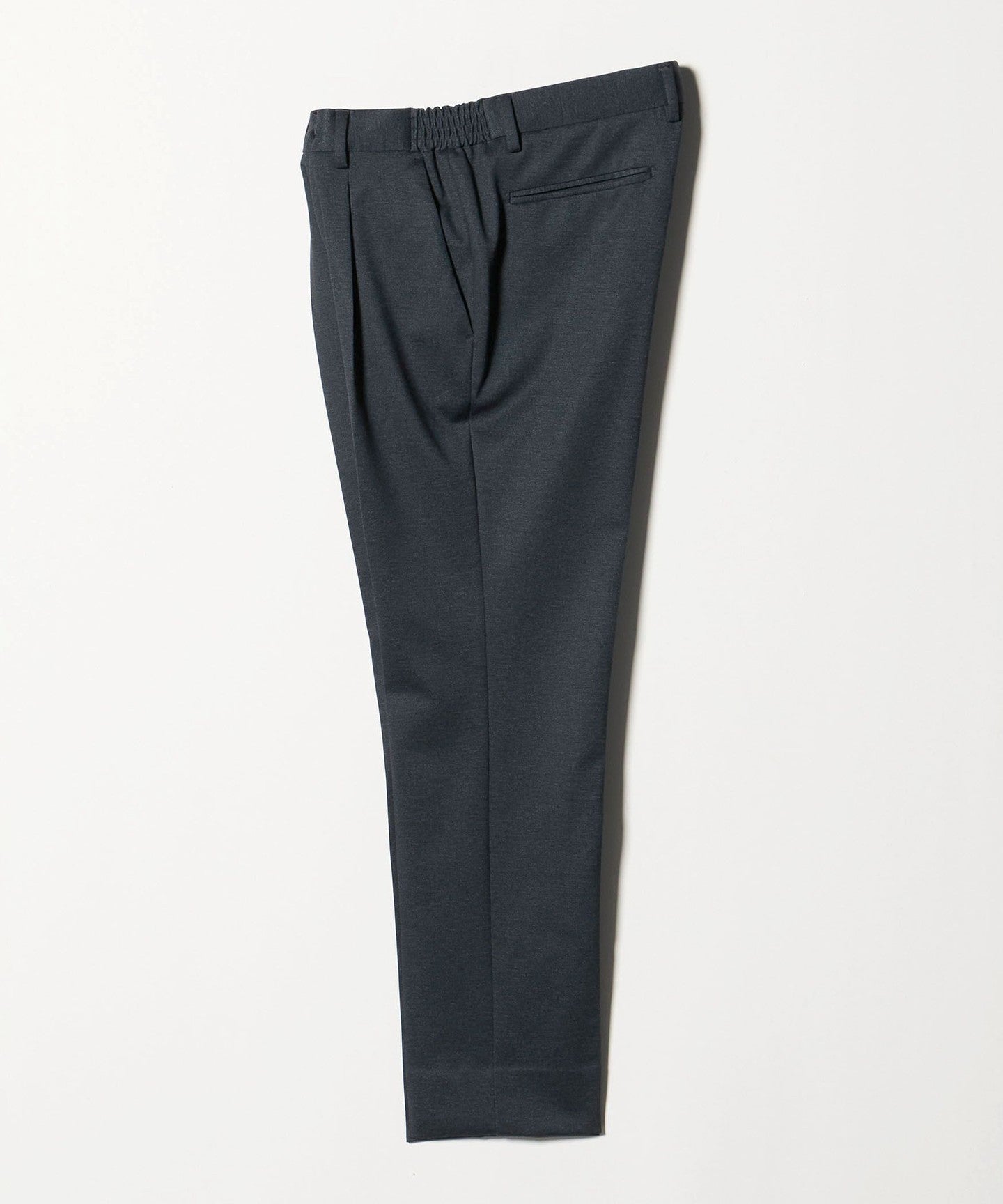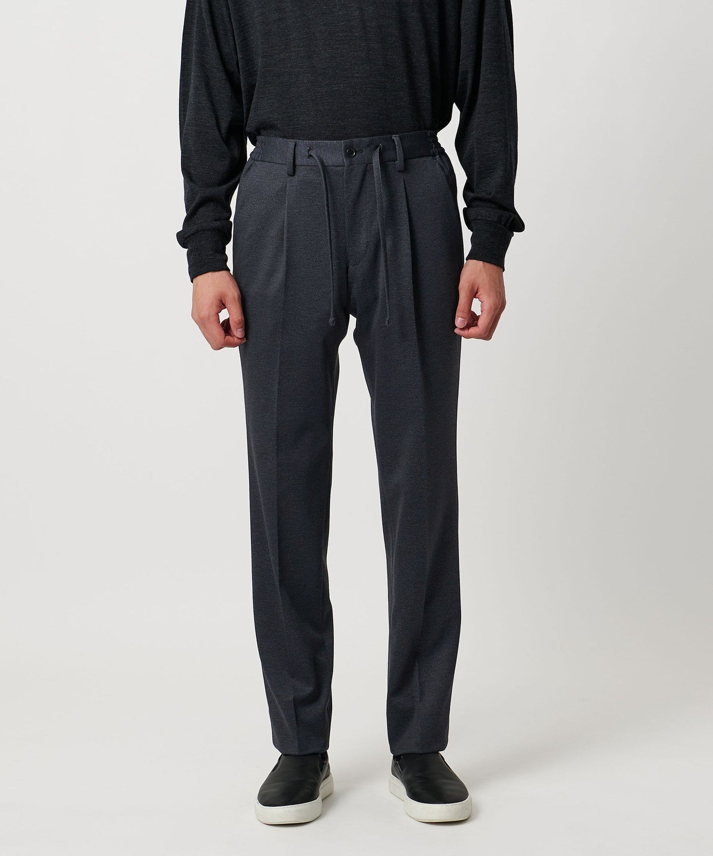 Denim print, slim tapered side shirring, 1 pleat, slacks, COMFORT EASY-MODEL, rocostretch