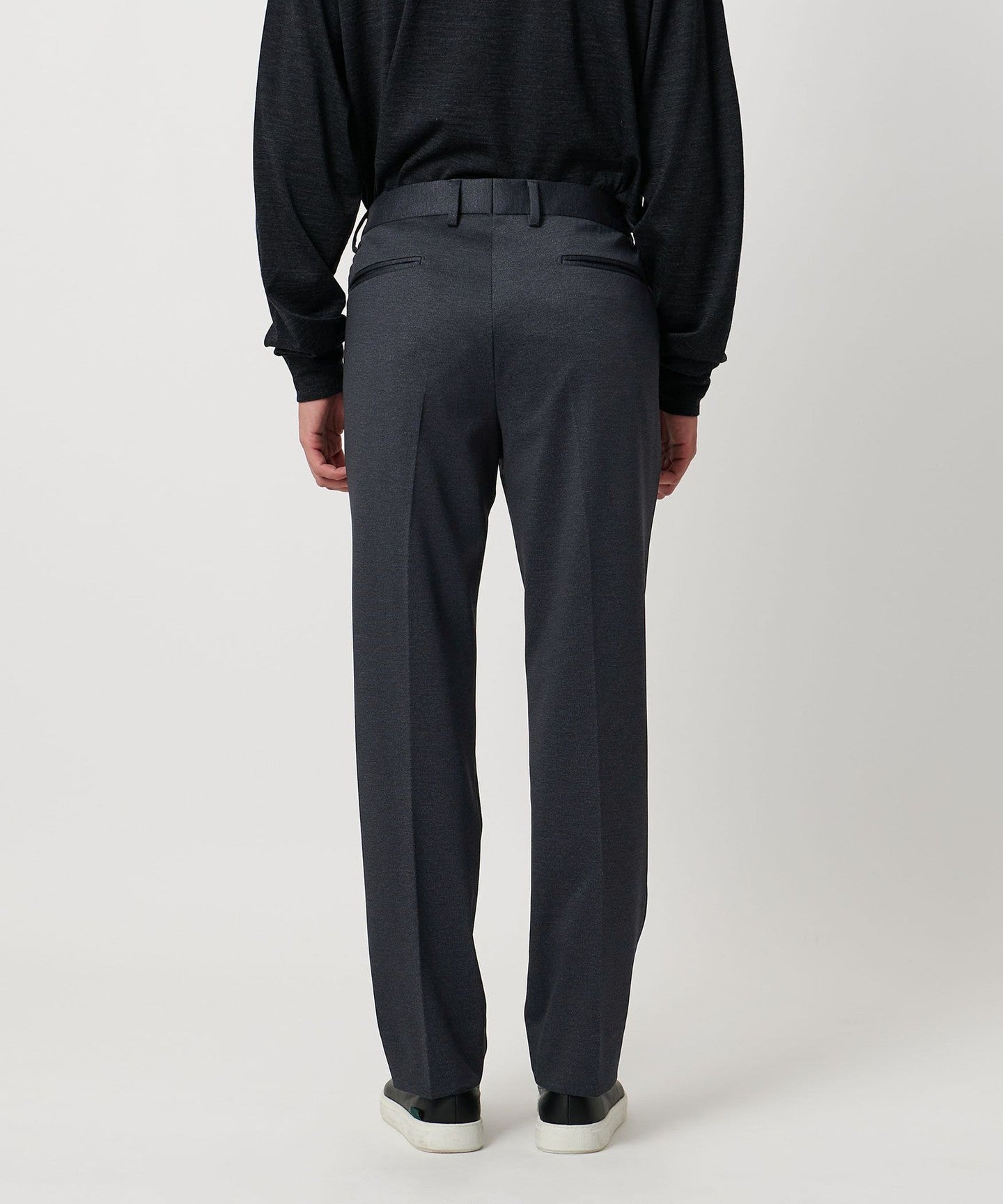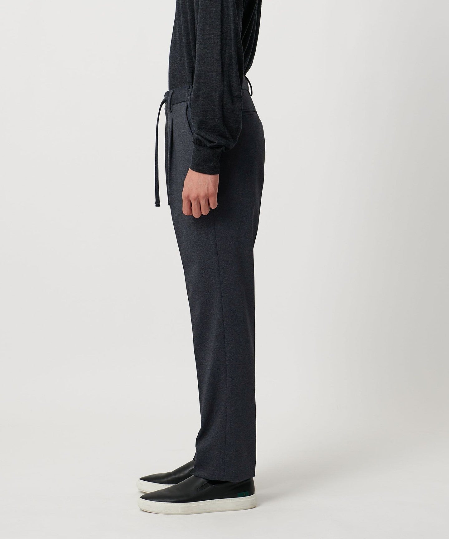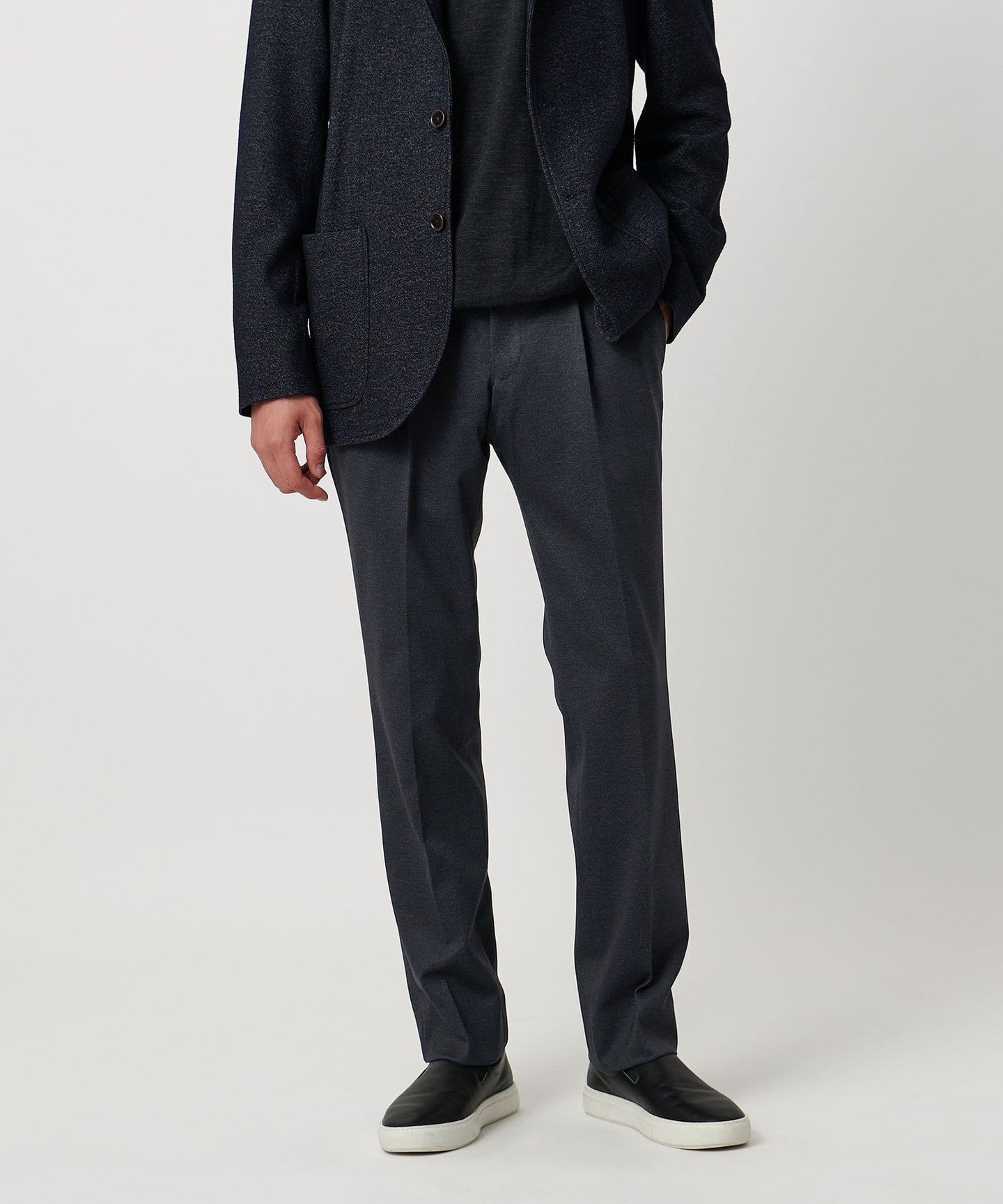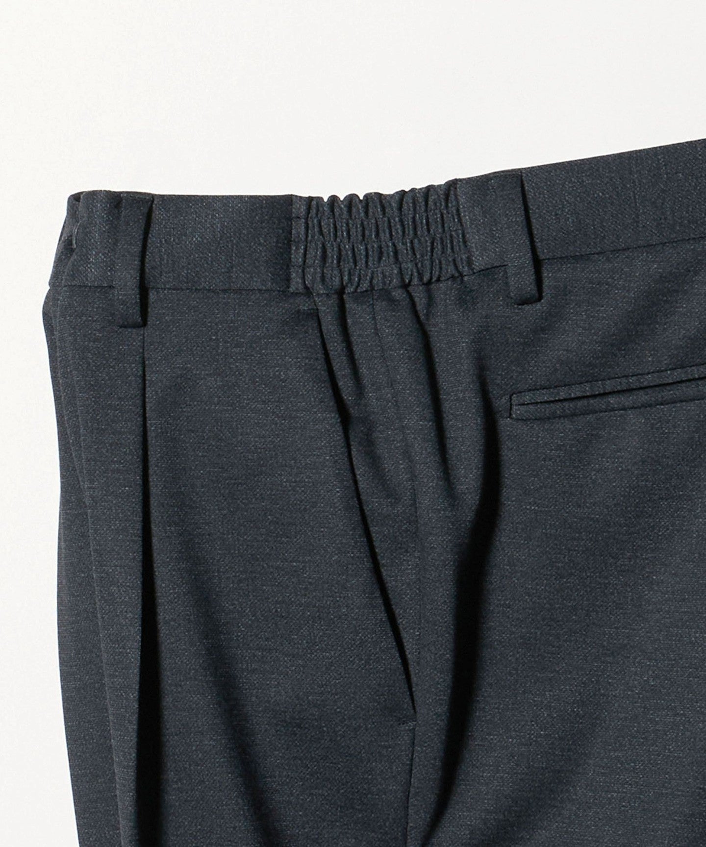 Denim print, slim tapered side shirring, 1 pleat, slacks, COMFORT EASY-MODEL, rocostretch