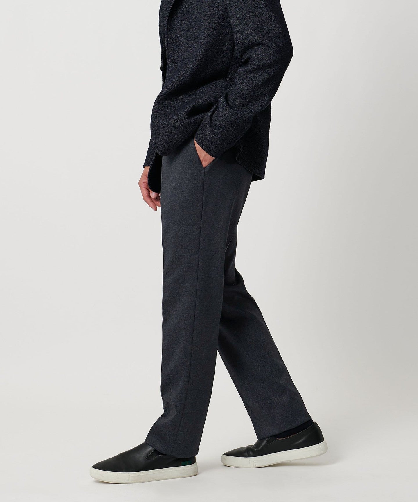 Sewn in a factory that specializes in slacks, they have a clean, slim line, but are designed to take into account the amount of movement you make when lifting your legs, making them easy to move in and comfortable to wear.
